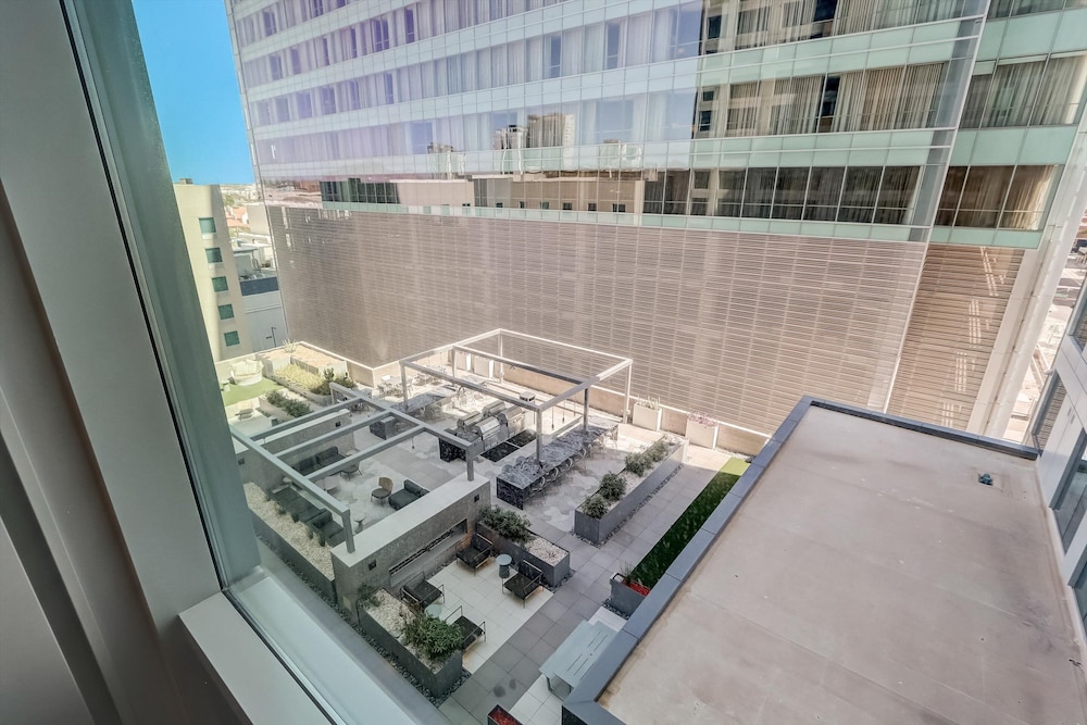 Great downtown property with rooftop pool. Right across the street from the train for transportation needs without a car.