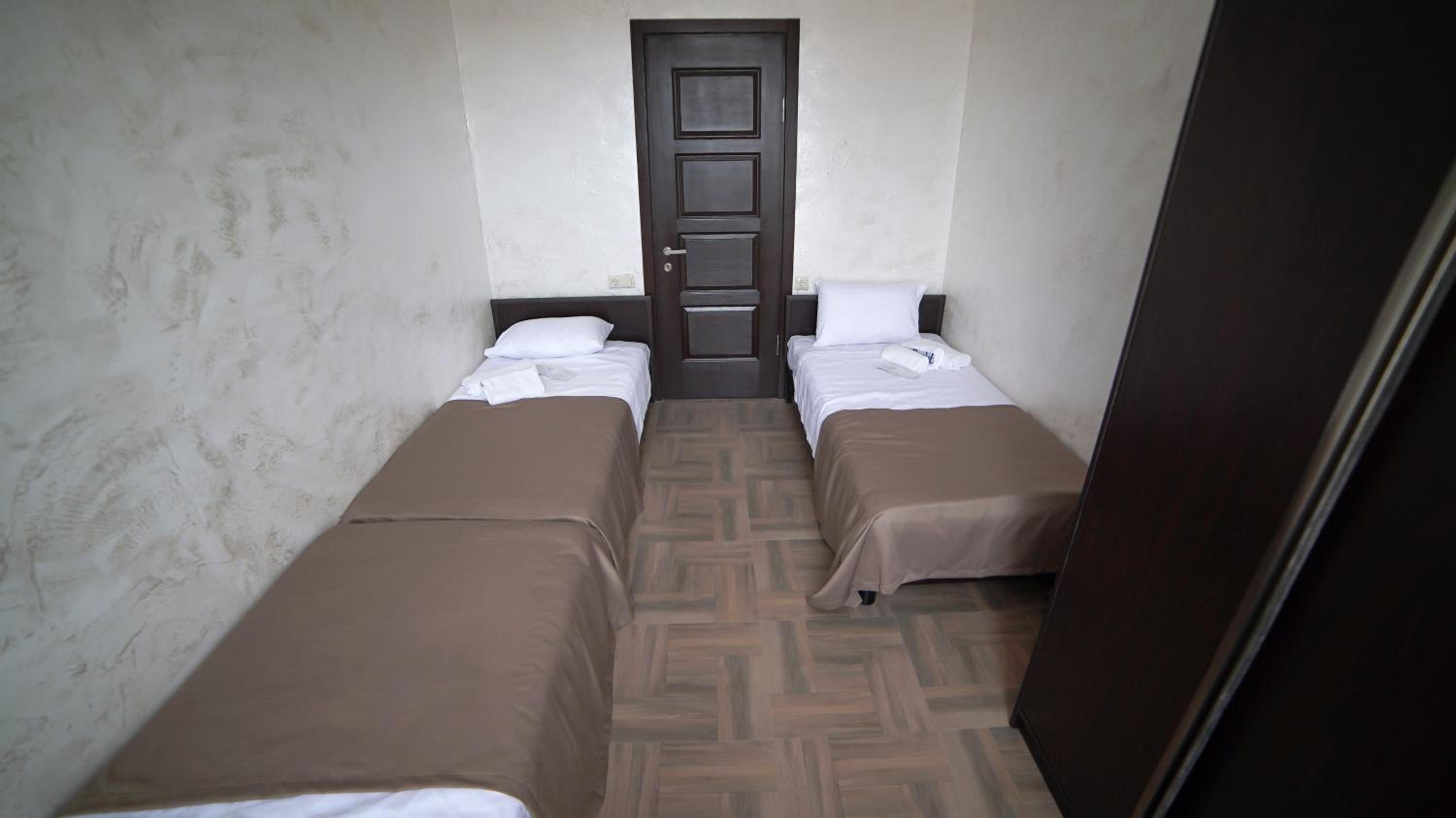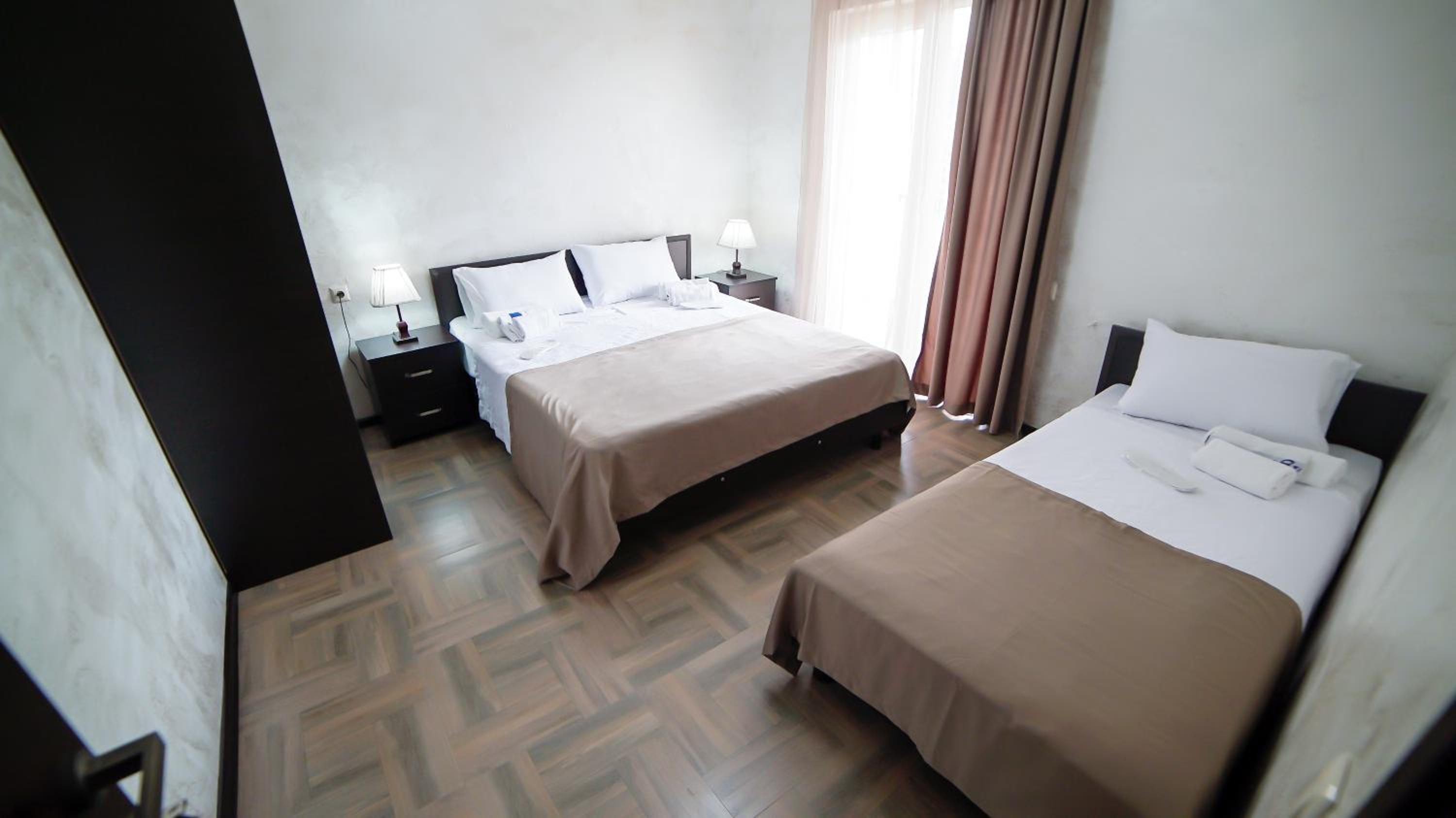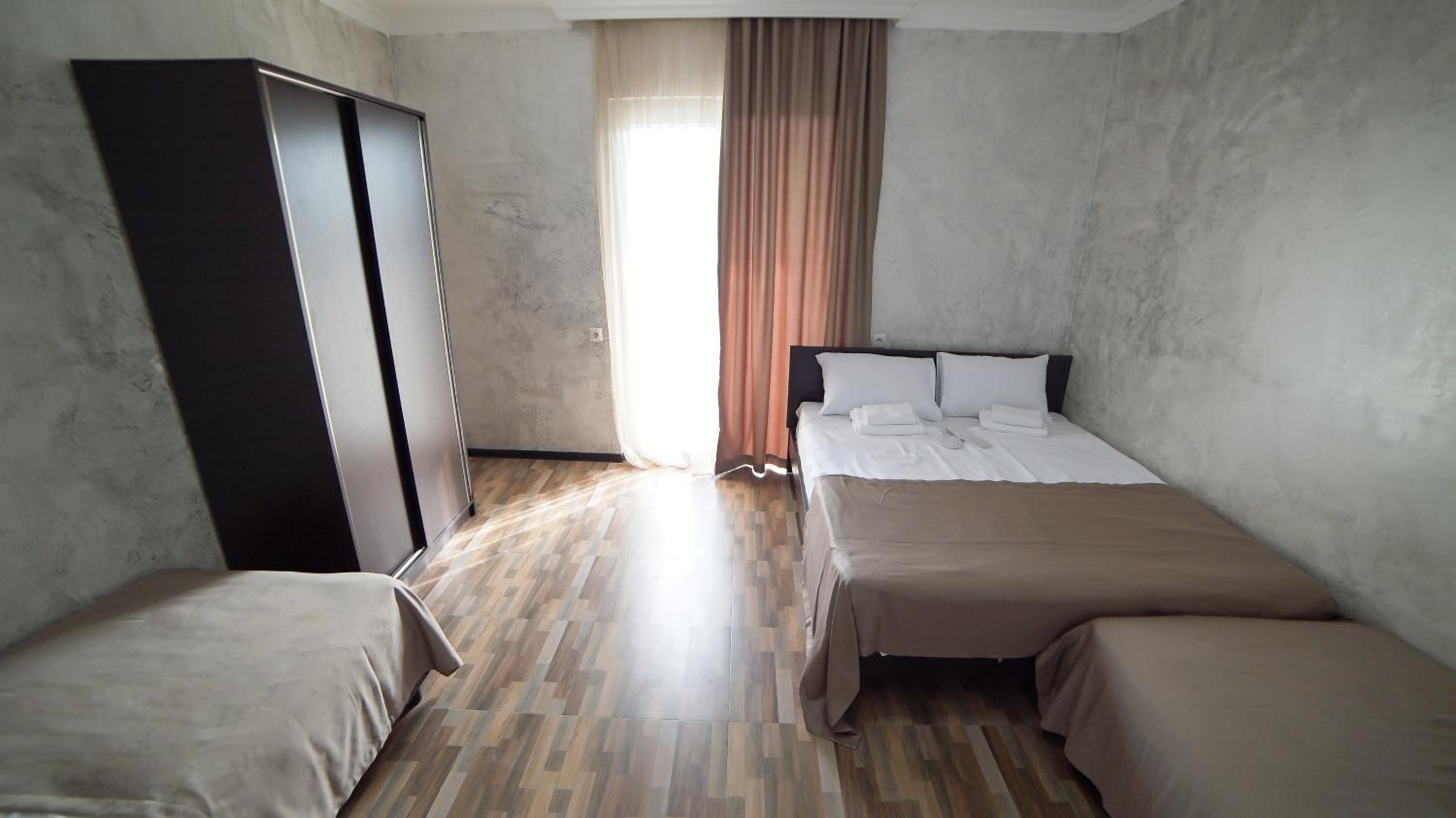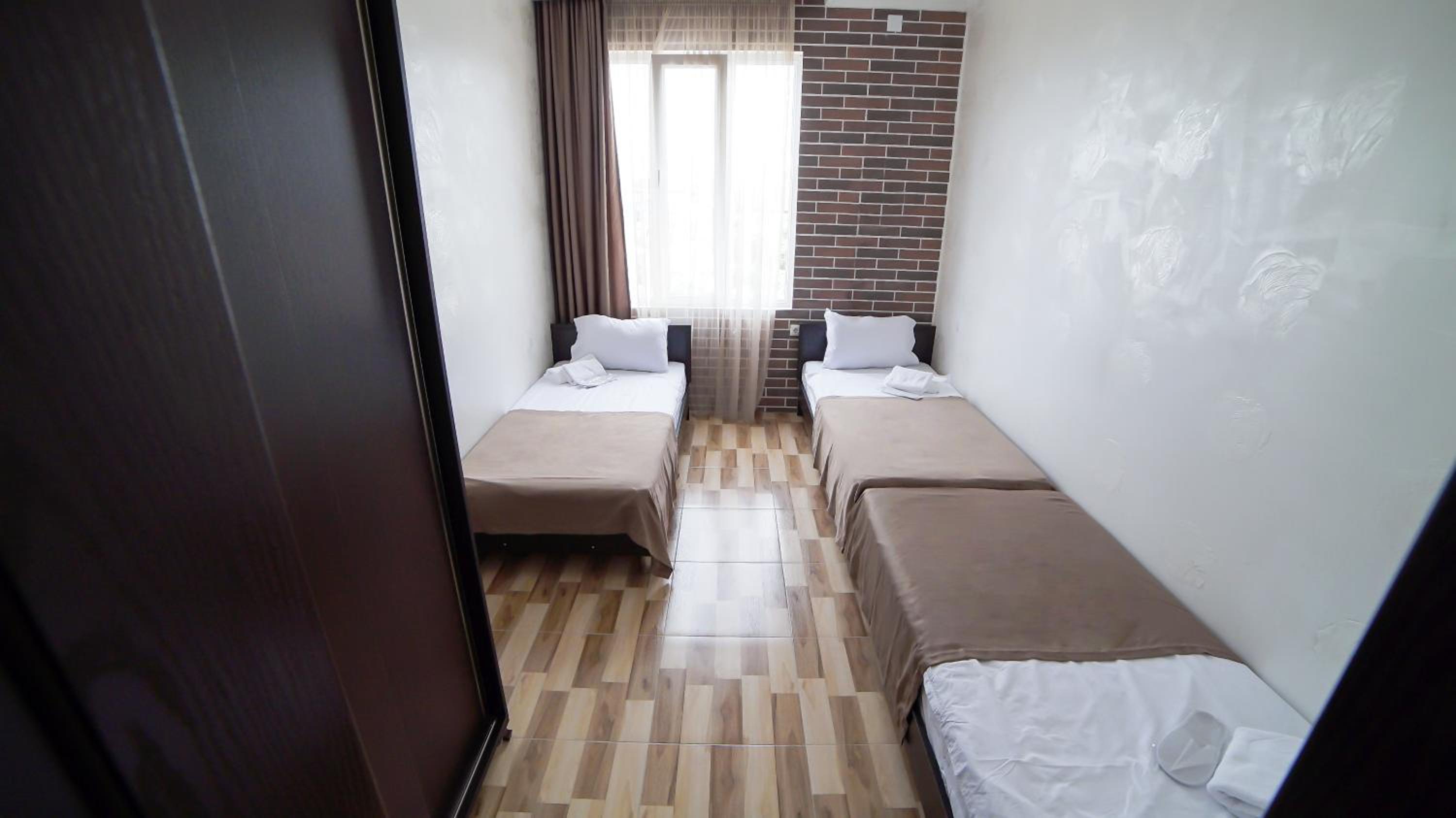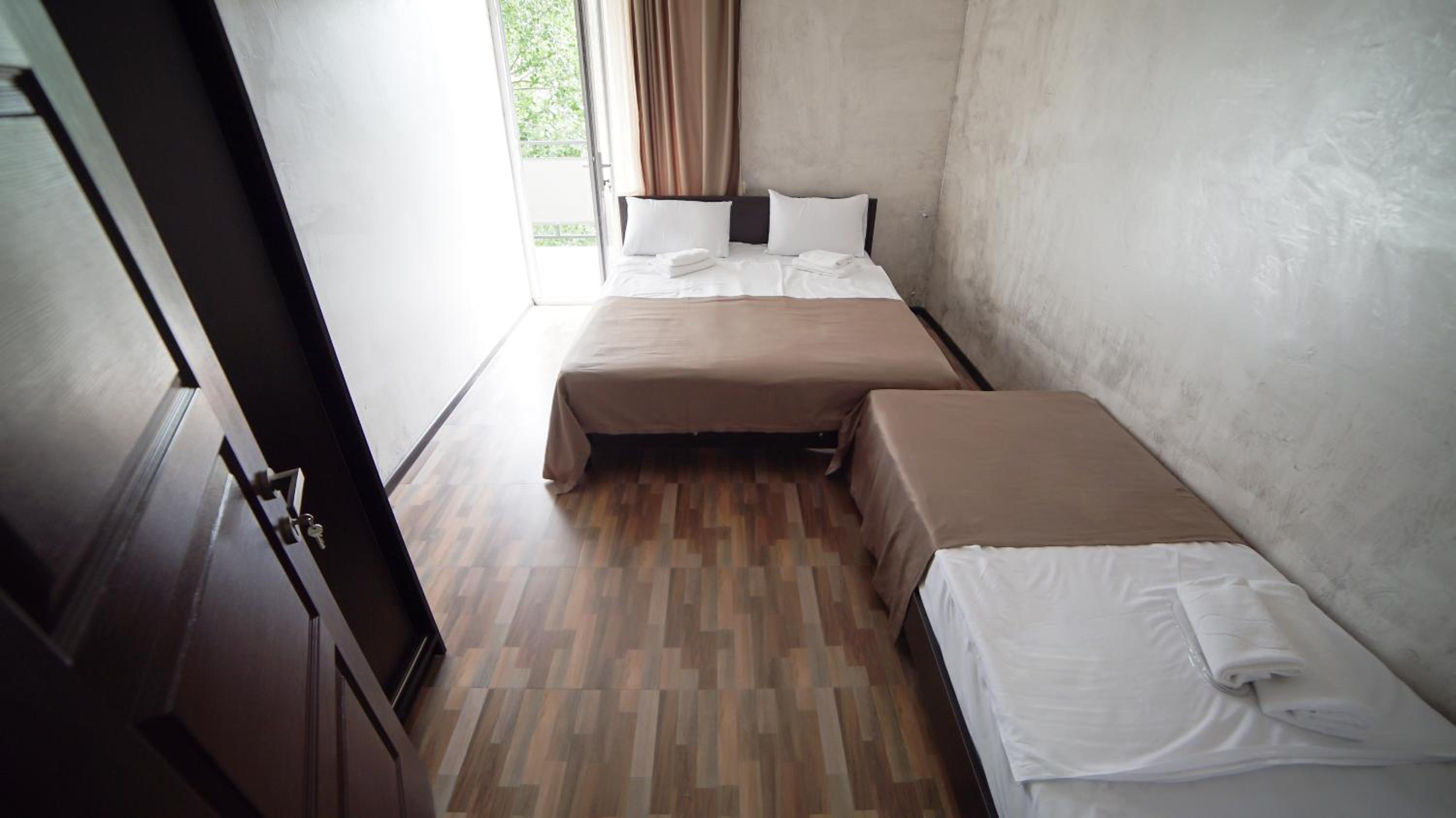 Быстрое заселение , приветливый персонал. Были в номере комфорт (5 мест). Чисто . Есть кухня и принадлежности , если вдруг что нибудь необходимо, персонал всегда поможет. Нам очень понравилось рекомендую . Тихо и спокойно . Если нет машины. Такси 5-7лари и вы в центре города.