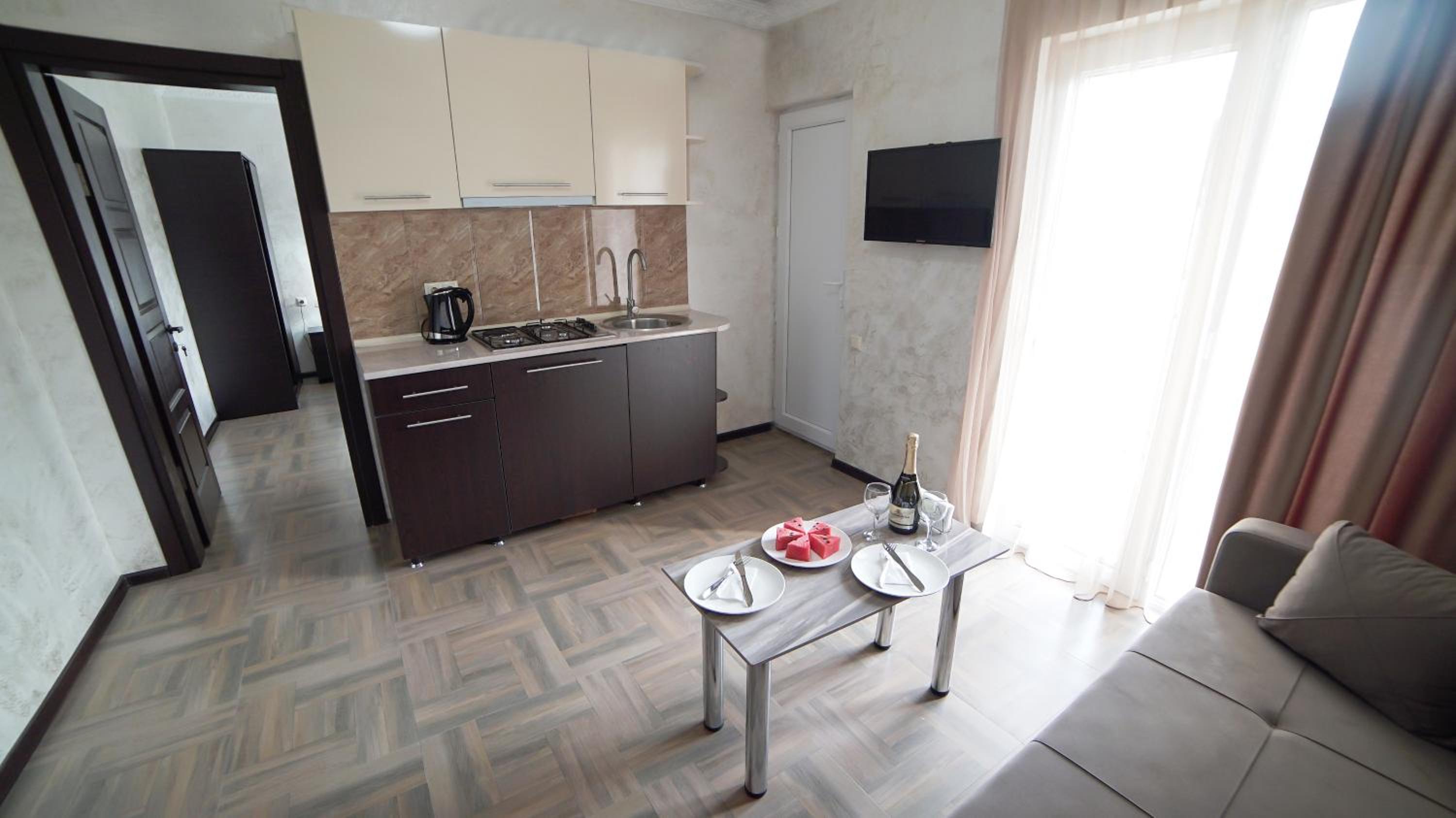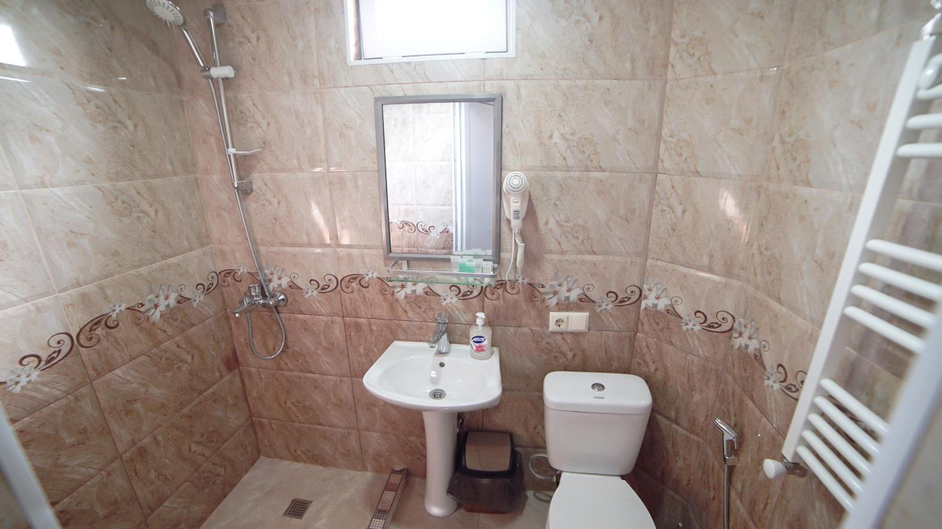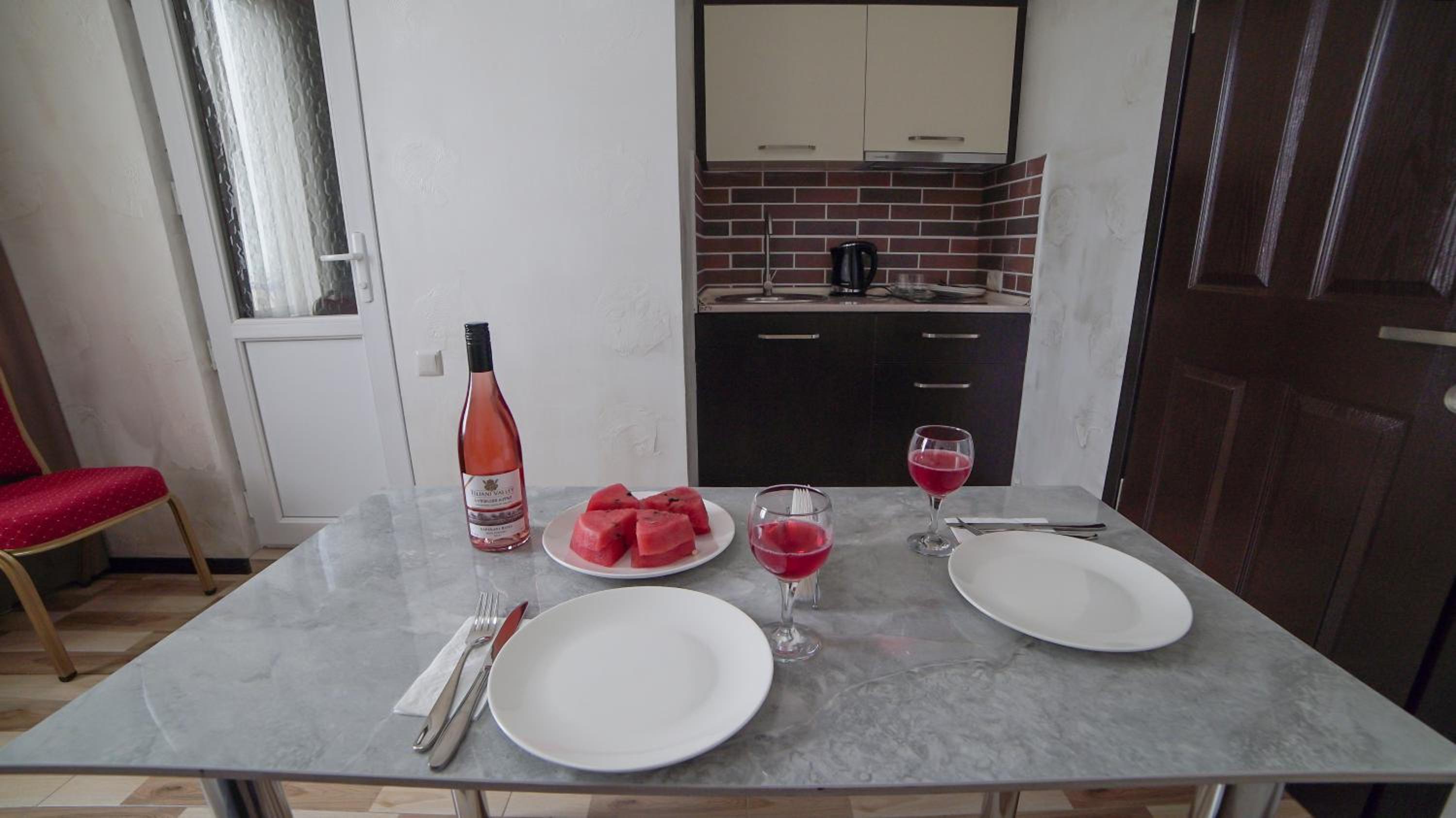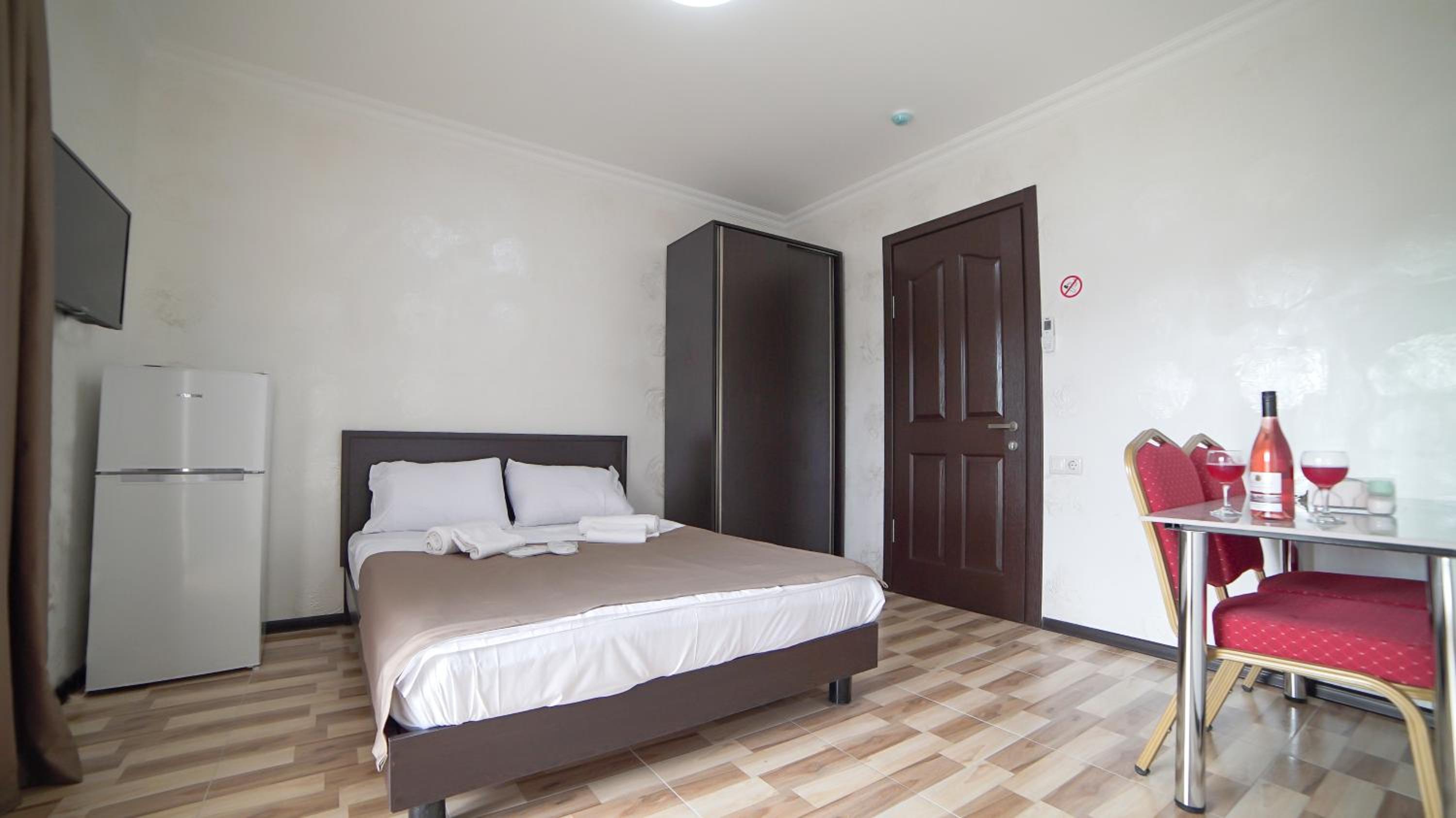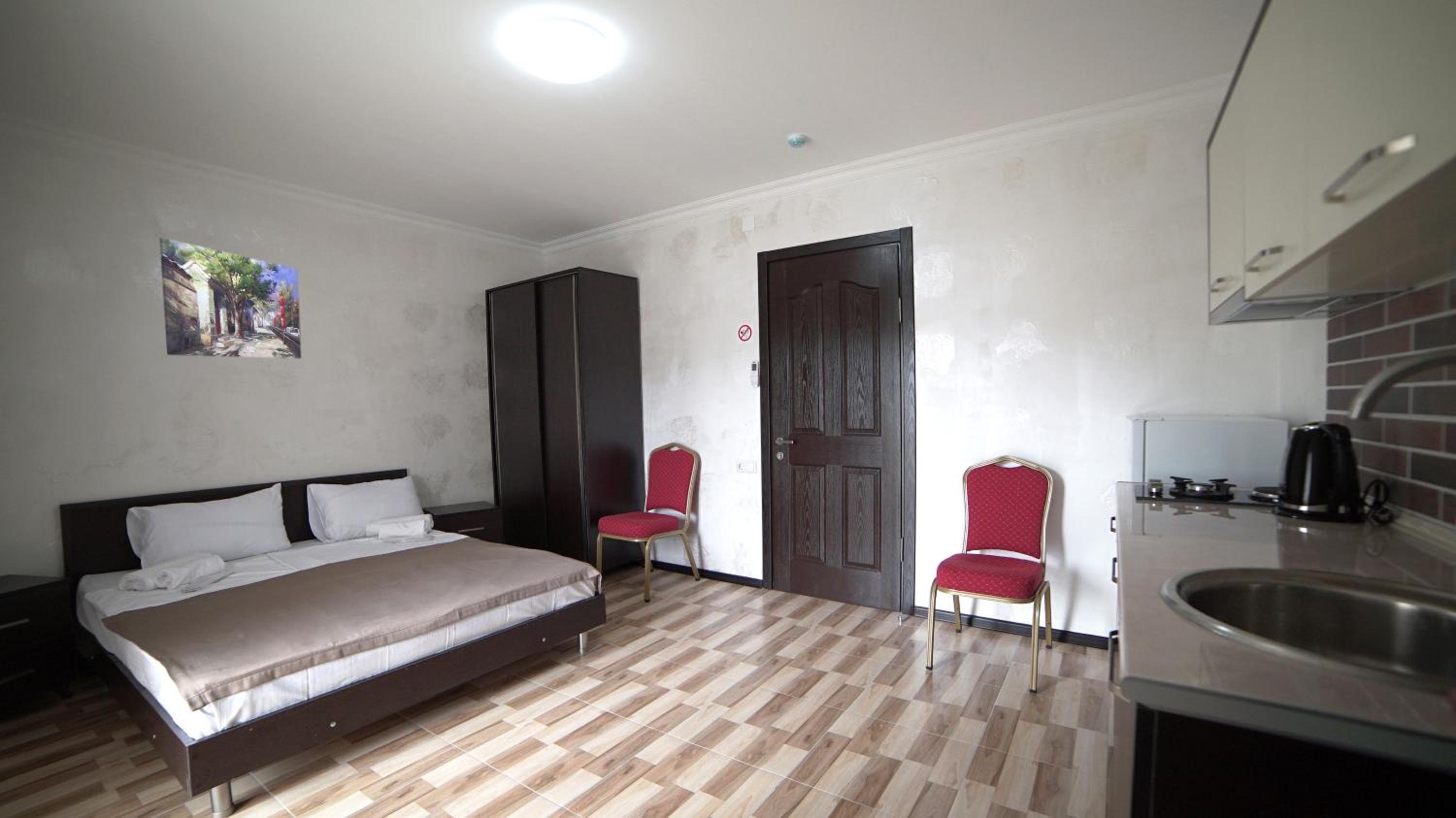 Быстрое заселение , приветливый персонал. Были в номере комфорт (5 мест). Чисто . Есть кухня и принадлежности , если вдруг что нибудь необходимо, персонал всегда поможет. Нам очень понравилось рекомендую . Тихо и спокойно . Если нет машины. Такси 5-7лари и вы в центре города.