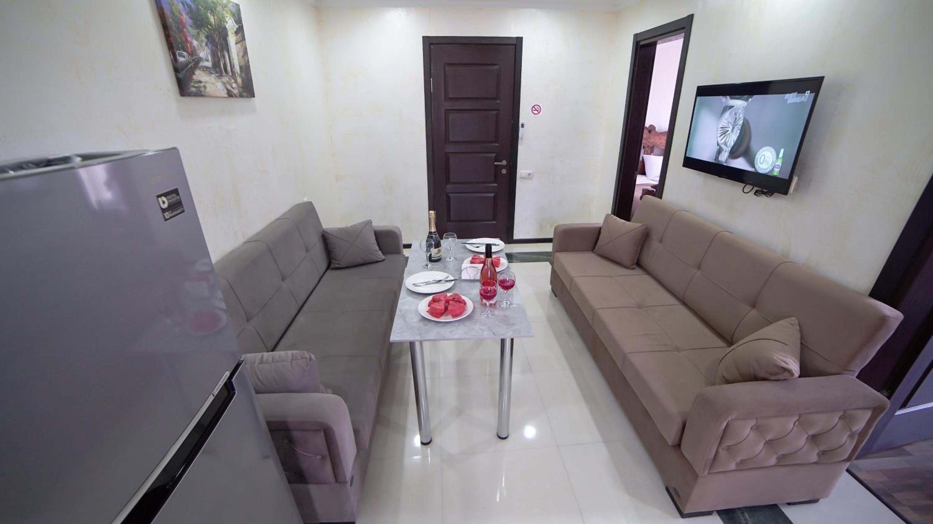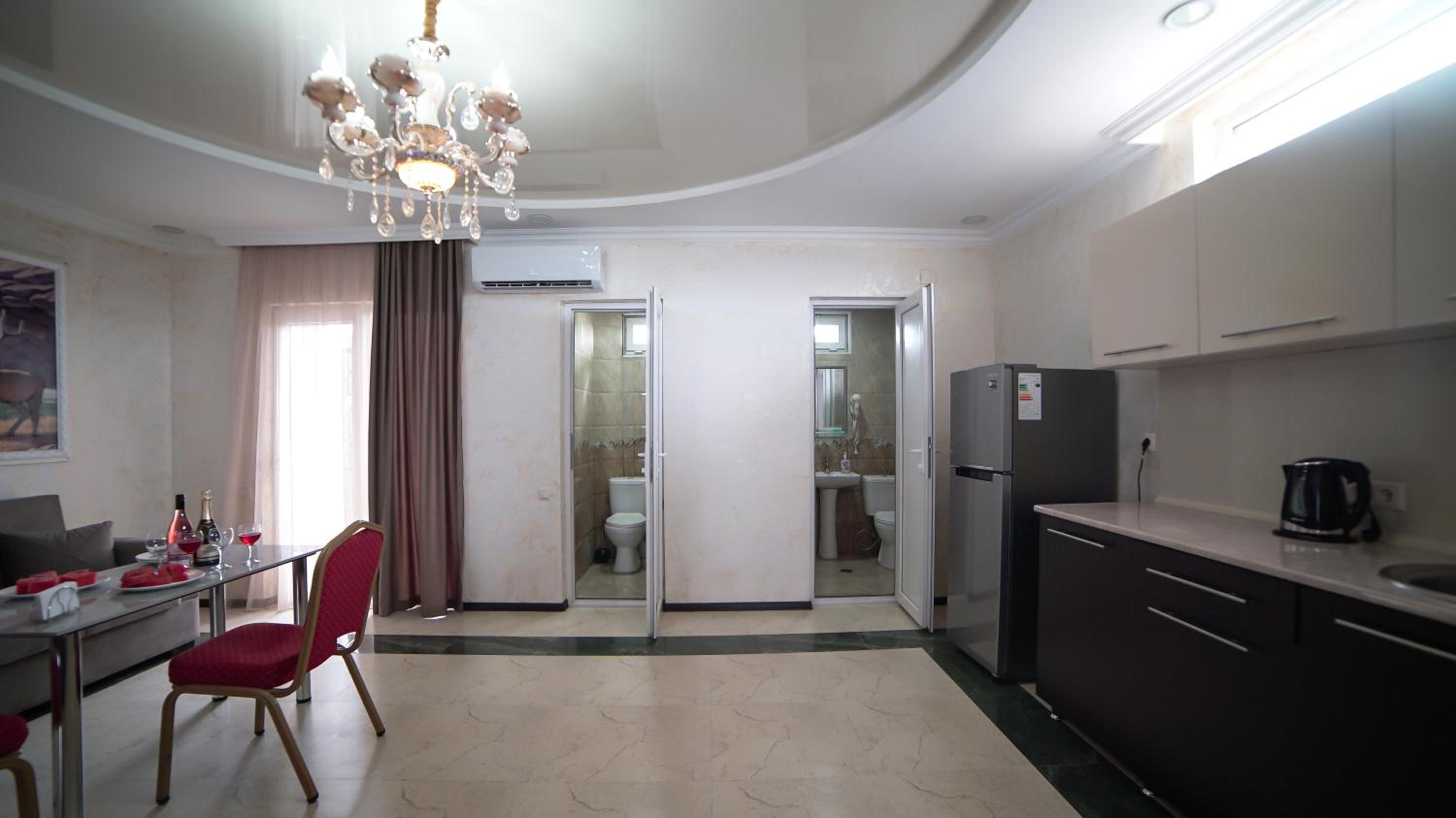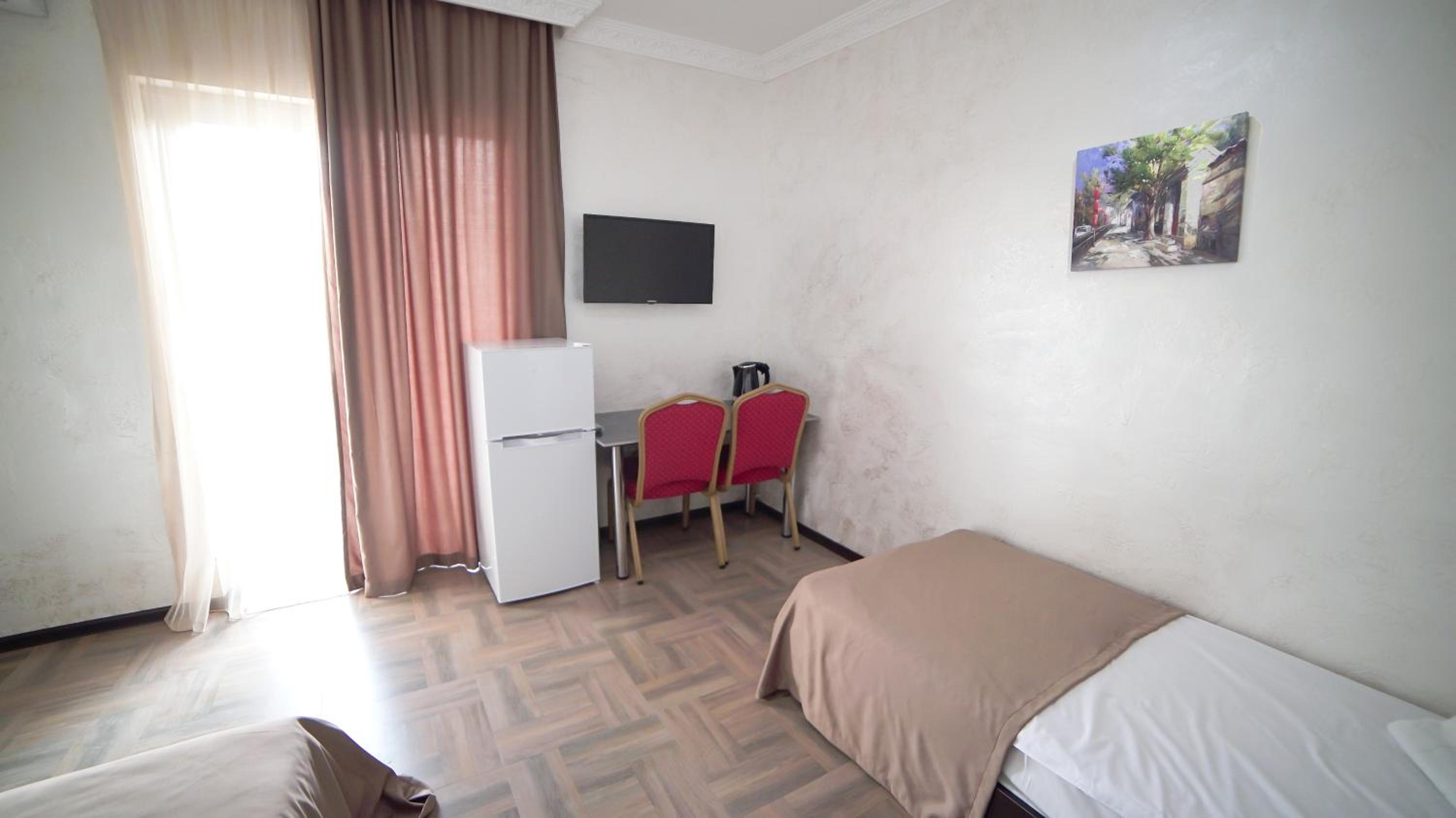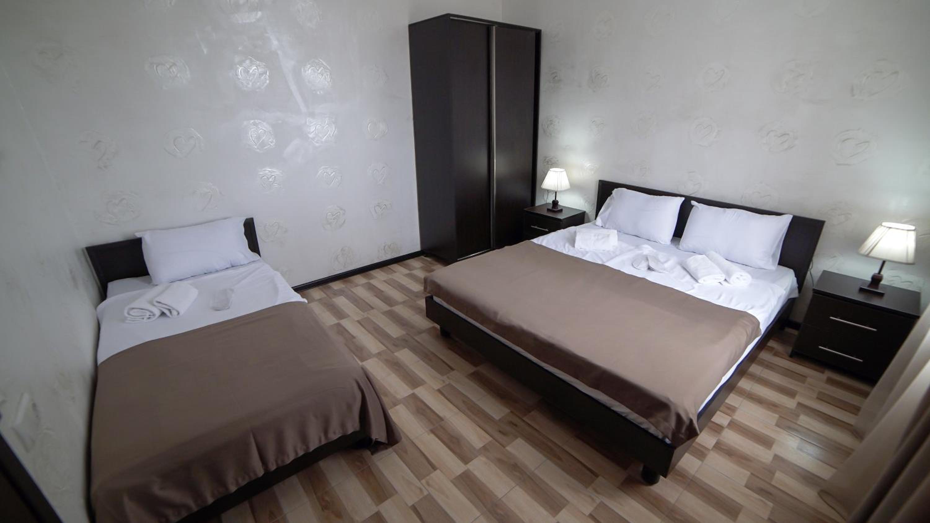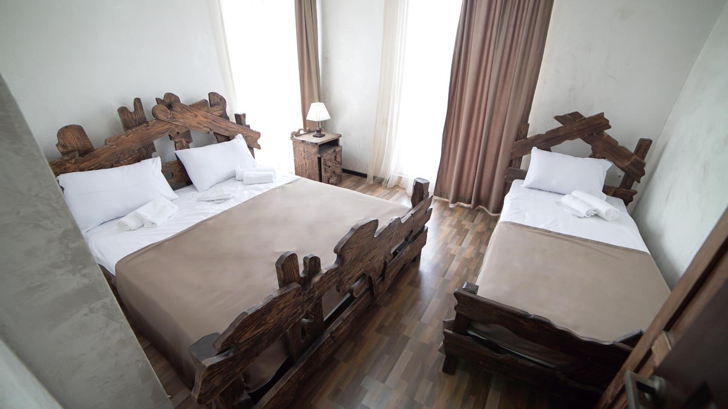 Быстрое заселение , приветливый персонал. Были в номере комфорт (5 мест). Чисто . Есть кухня и принадлежности , если вдруг что нибудь необходимо, персонал всегда поможет. Нам очень понравилось рекомендую . Тихо и спокойно . Если нет машины. Такси 5-7лари и вы в центре города.