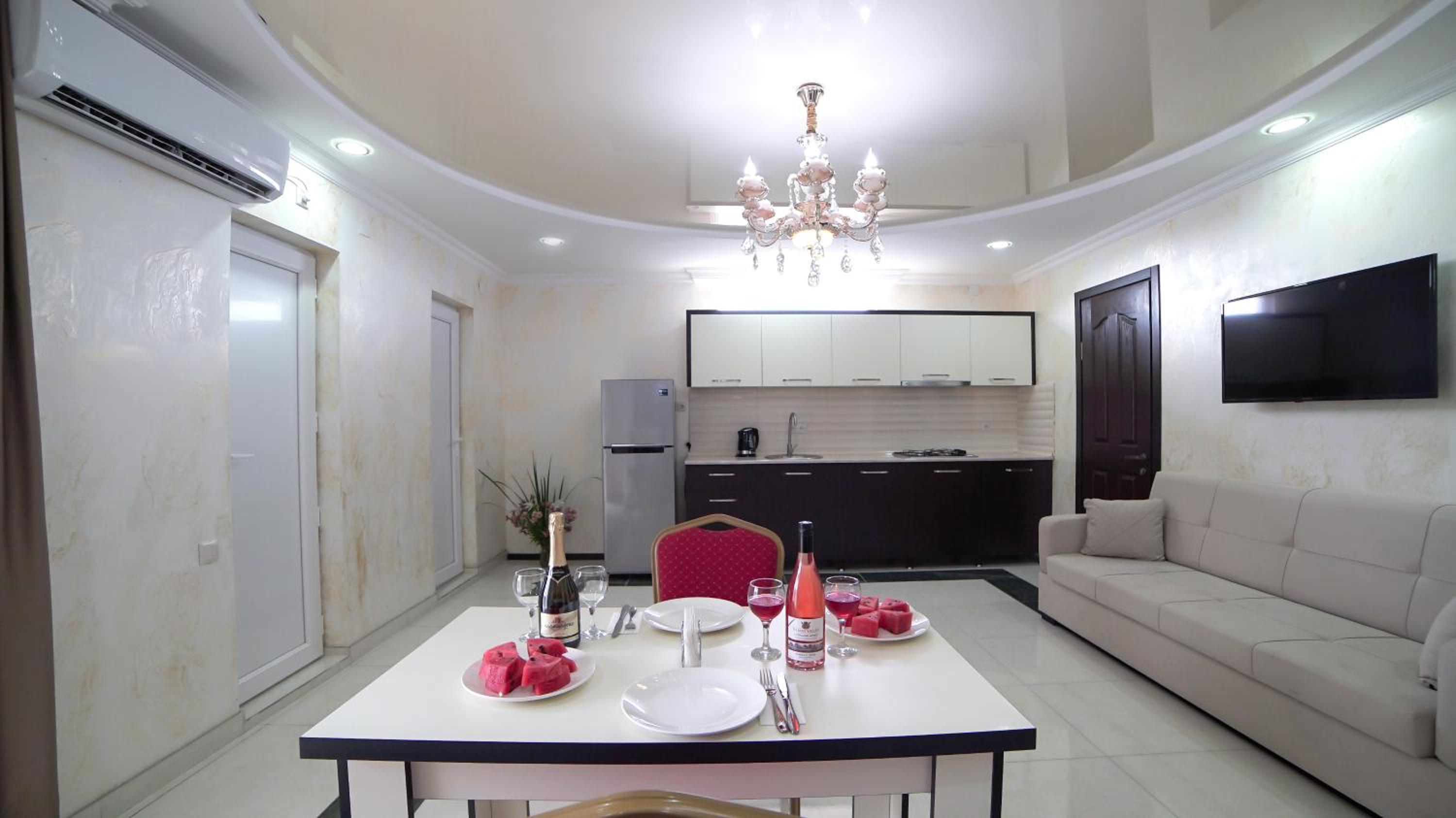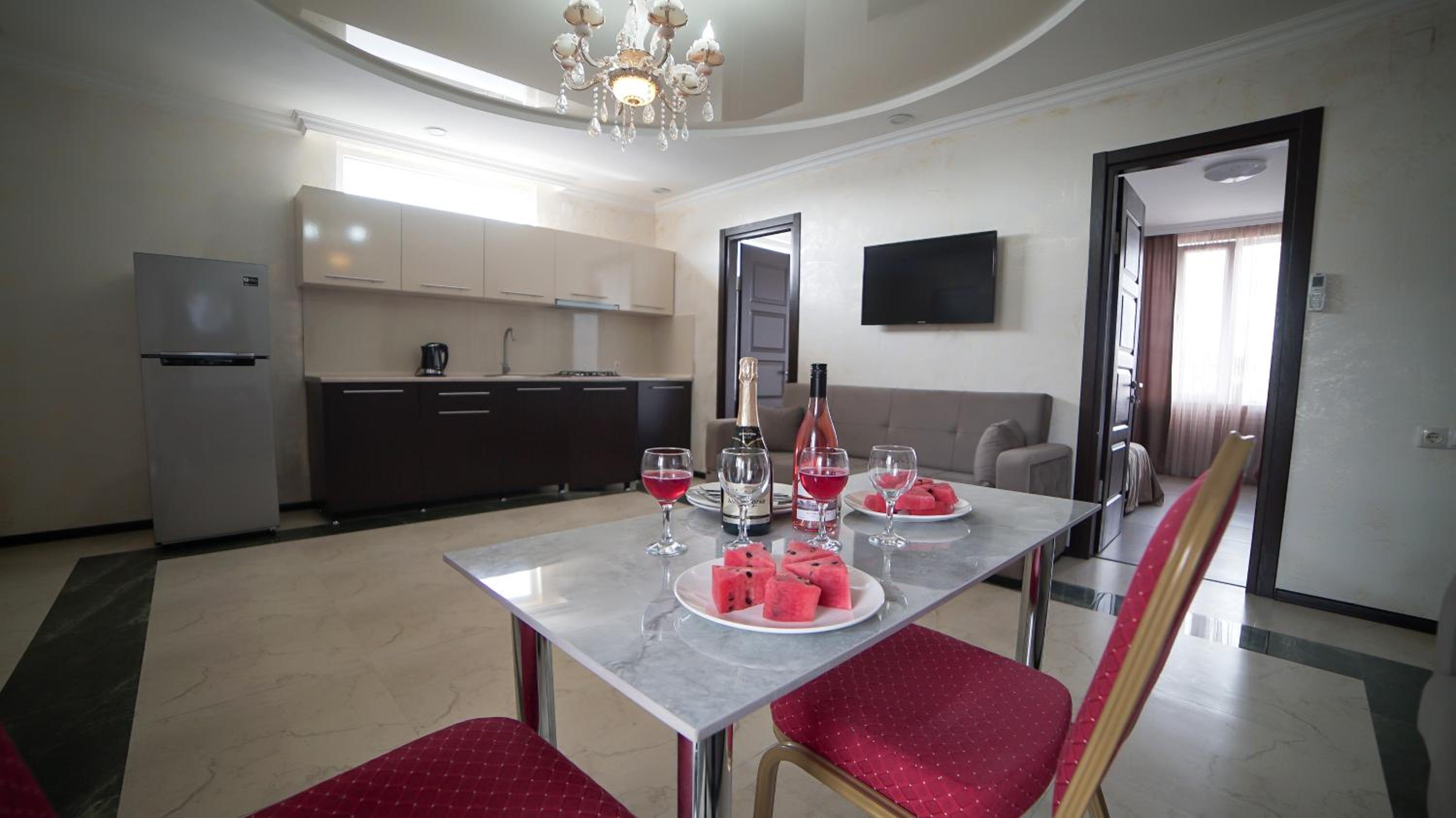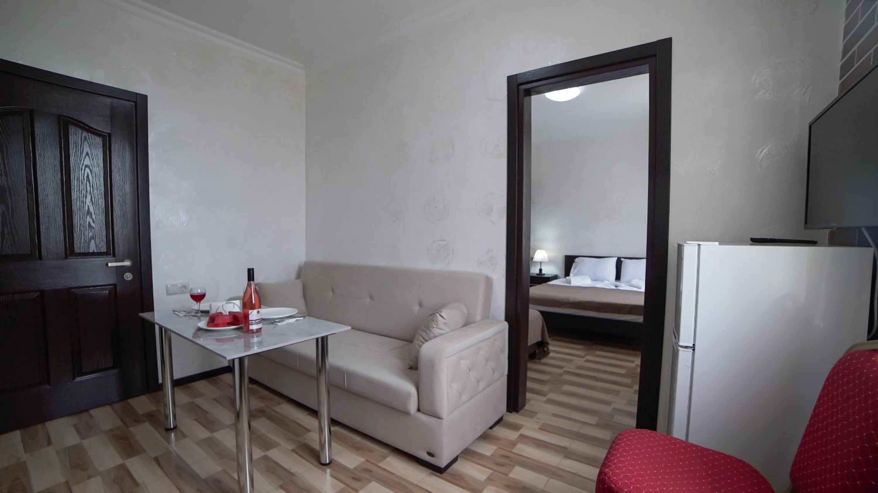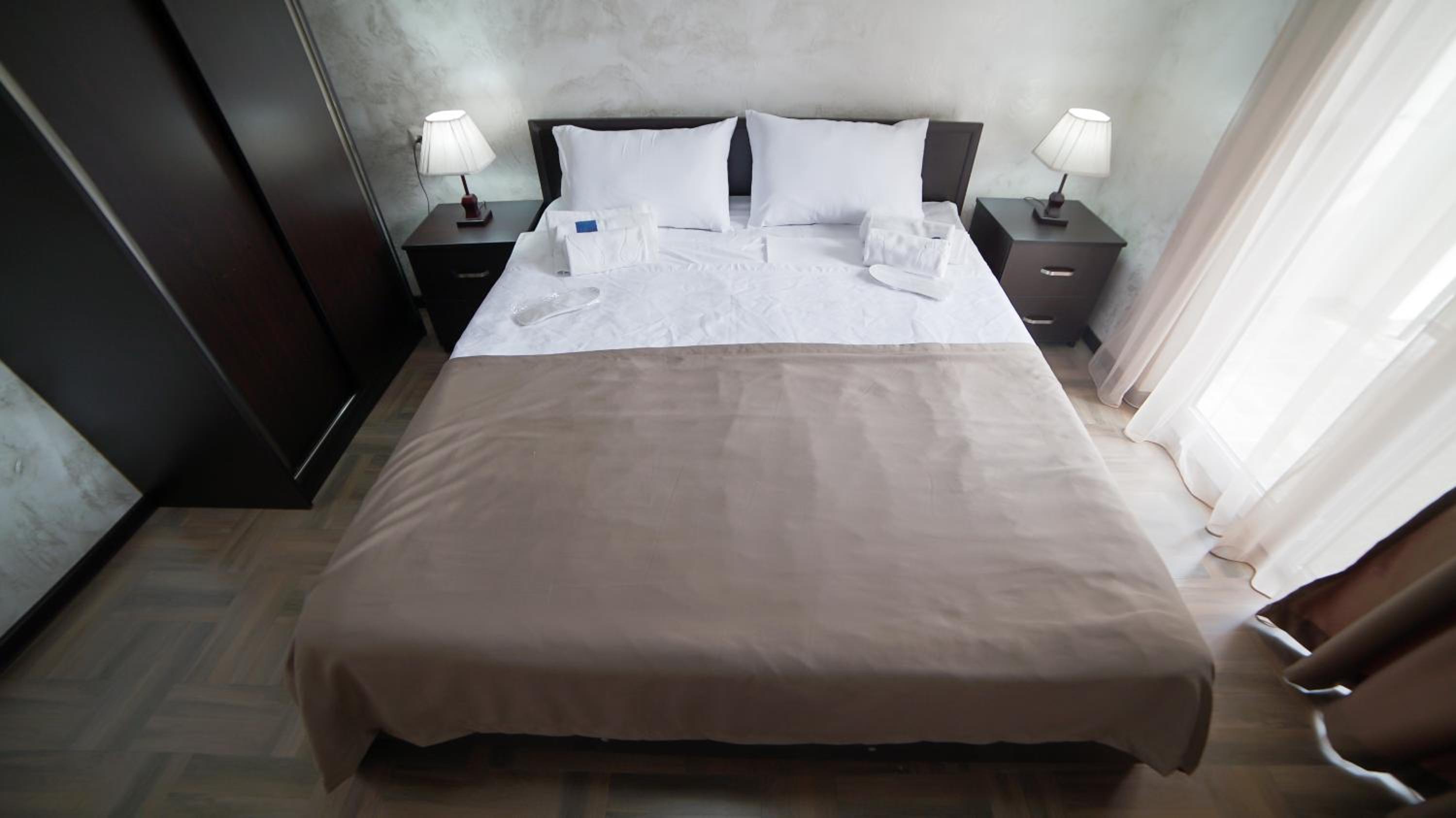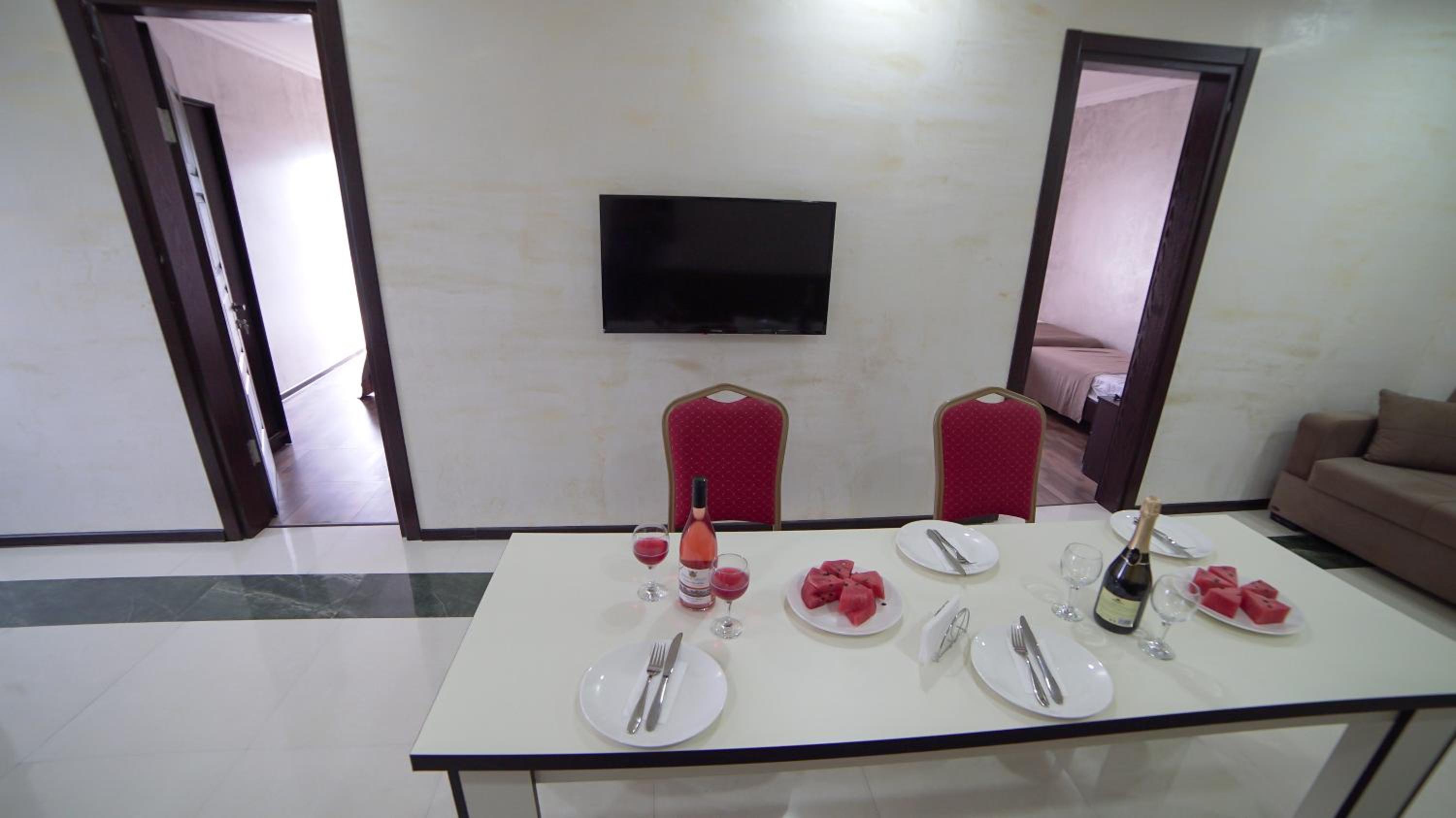 Быстрое заселение , приветливый персонал. Были в номере комфорт (5 мест). Чисто . Есть кухня и принадлежности , если вдруг что нибудь необходимо, персонал всегда поможет. Нам очень понравилось рекомендую . Тихо и спокойно . Если нет машины. Такси 5-7лари и вы в центре города.