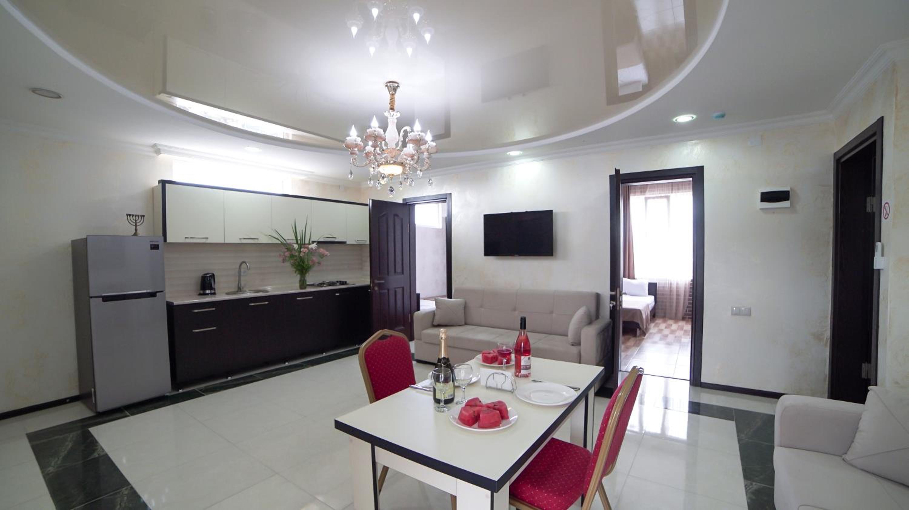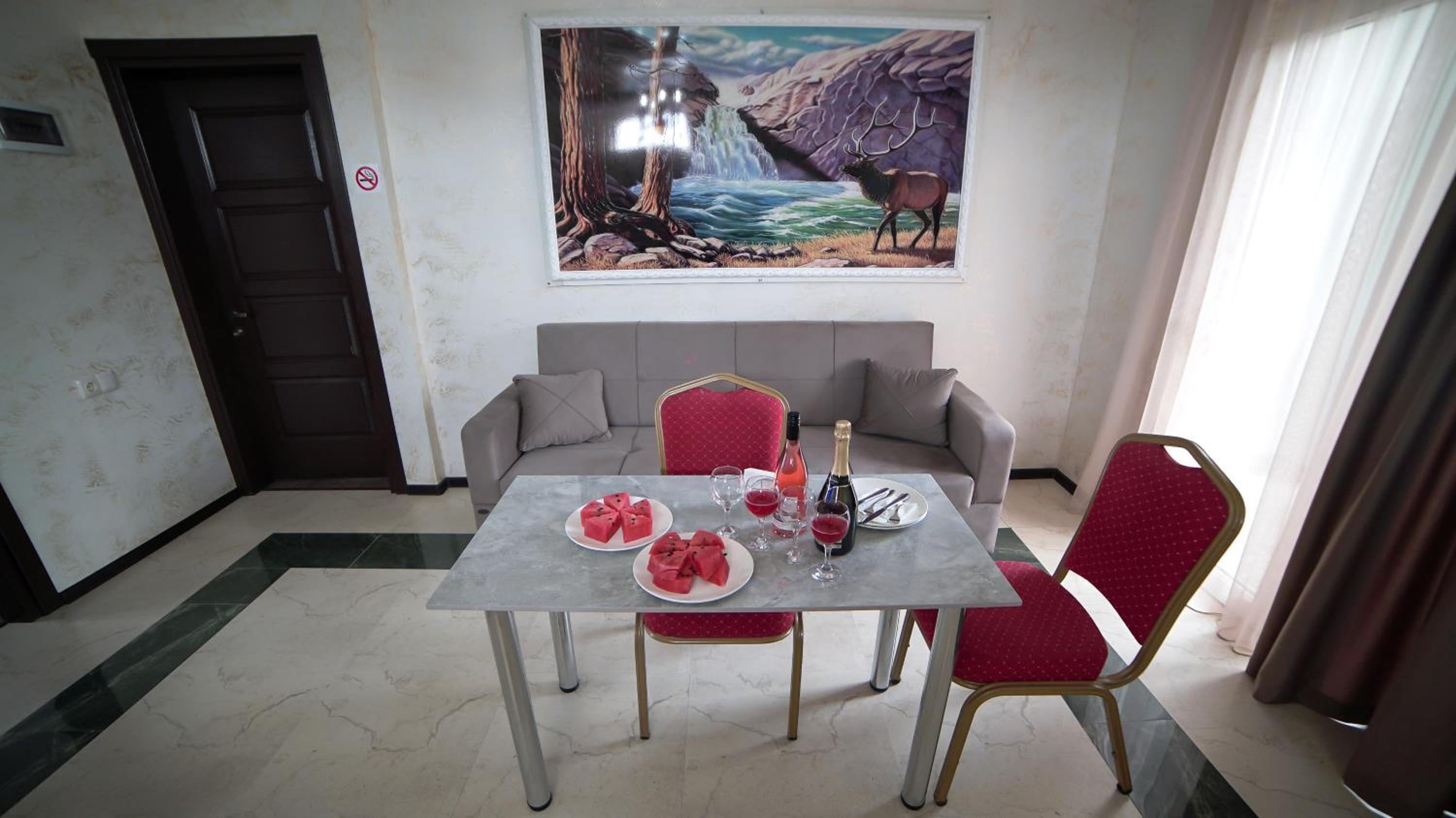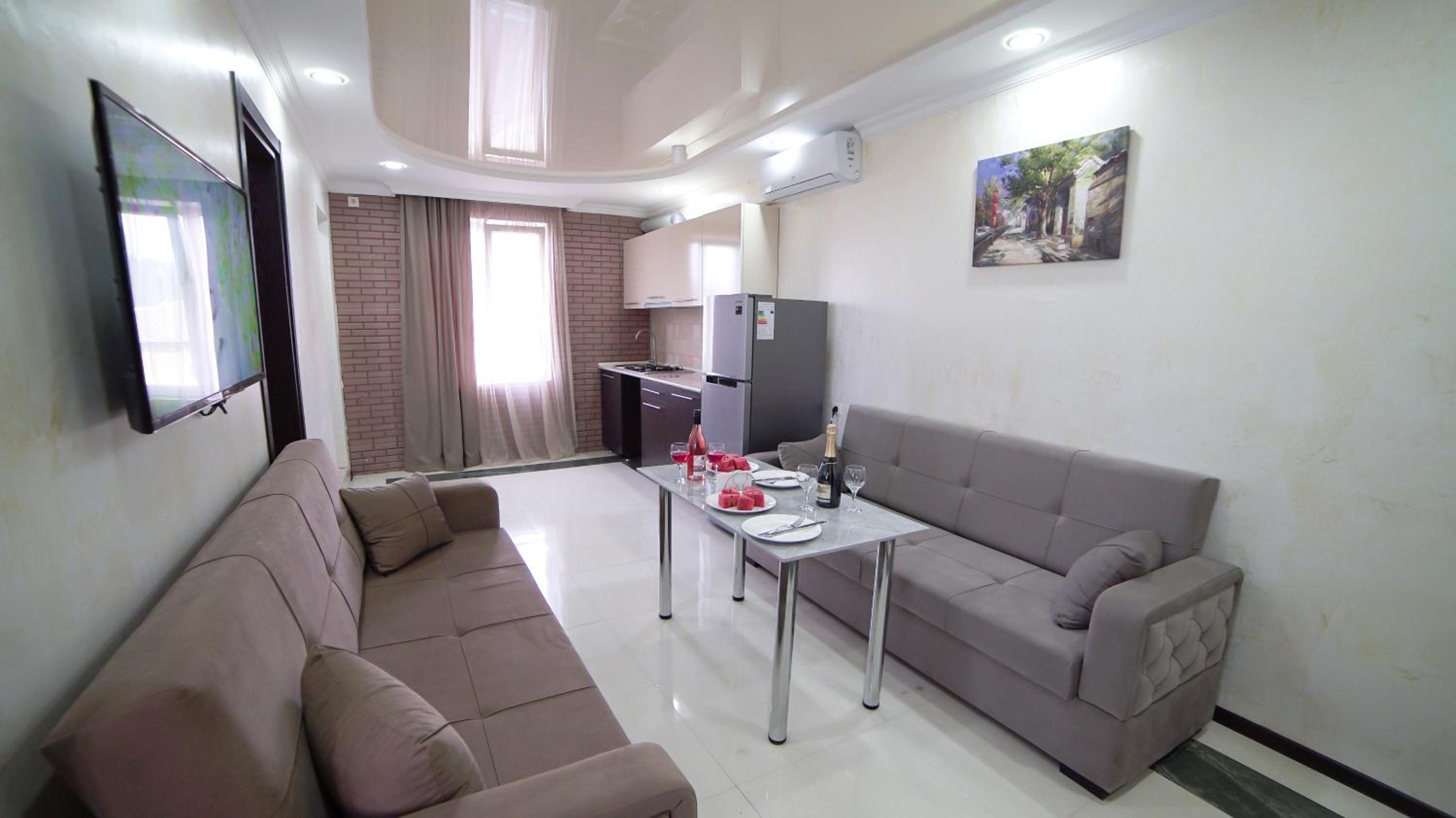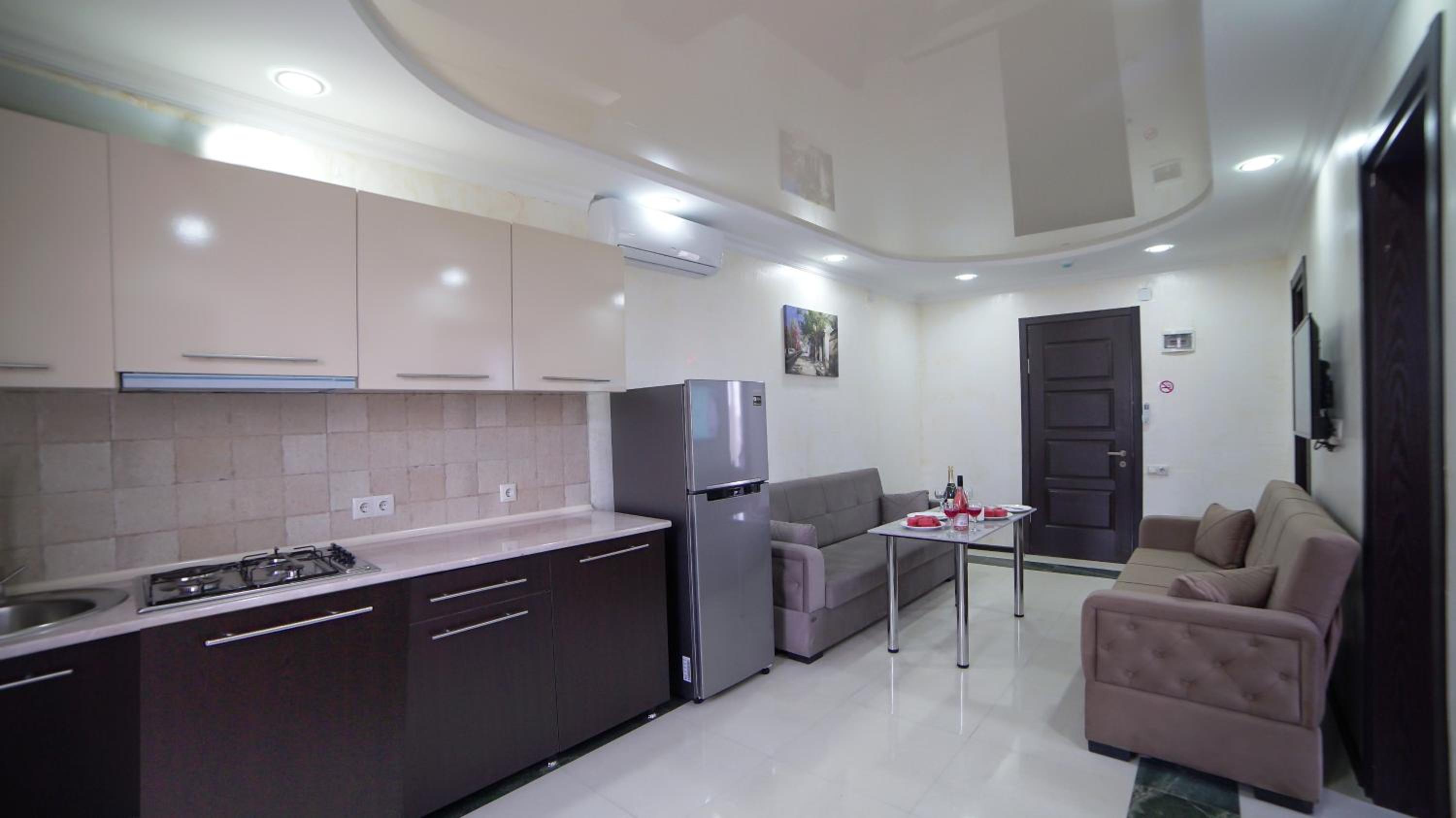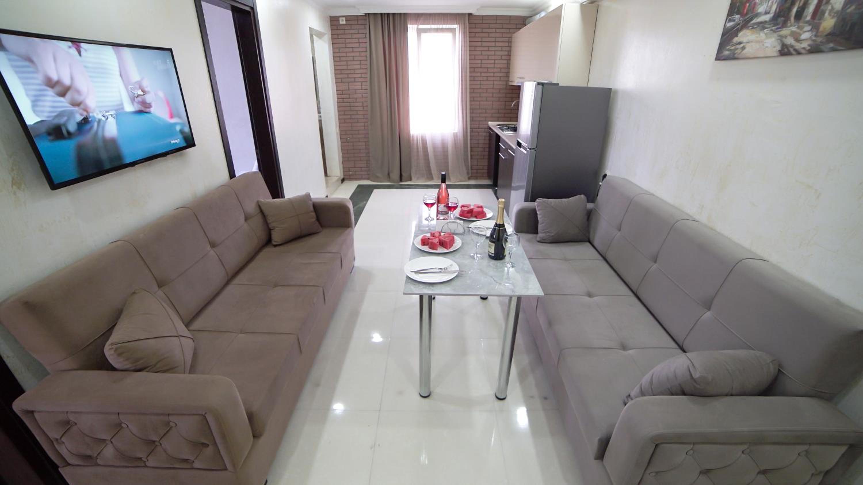 Быстрое заселение , приветливый персонал. Были в номере комфорт (5 мест). Чисто . Есть кухня и принадлежности , если вдруг что нибудь необходимо, персонал всегда поможет. Нам очень понравилось рекомендую . Тихо и спокойно . Если нет машины. Такси 5-7лари и вы в центре города.