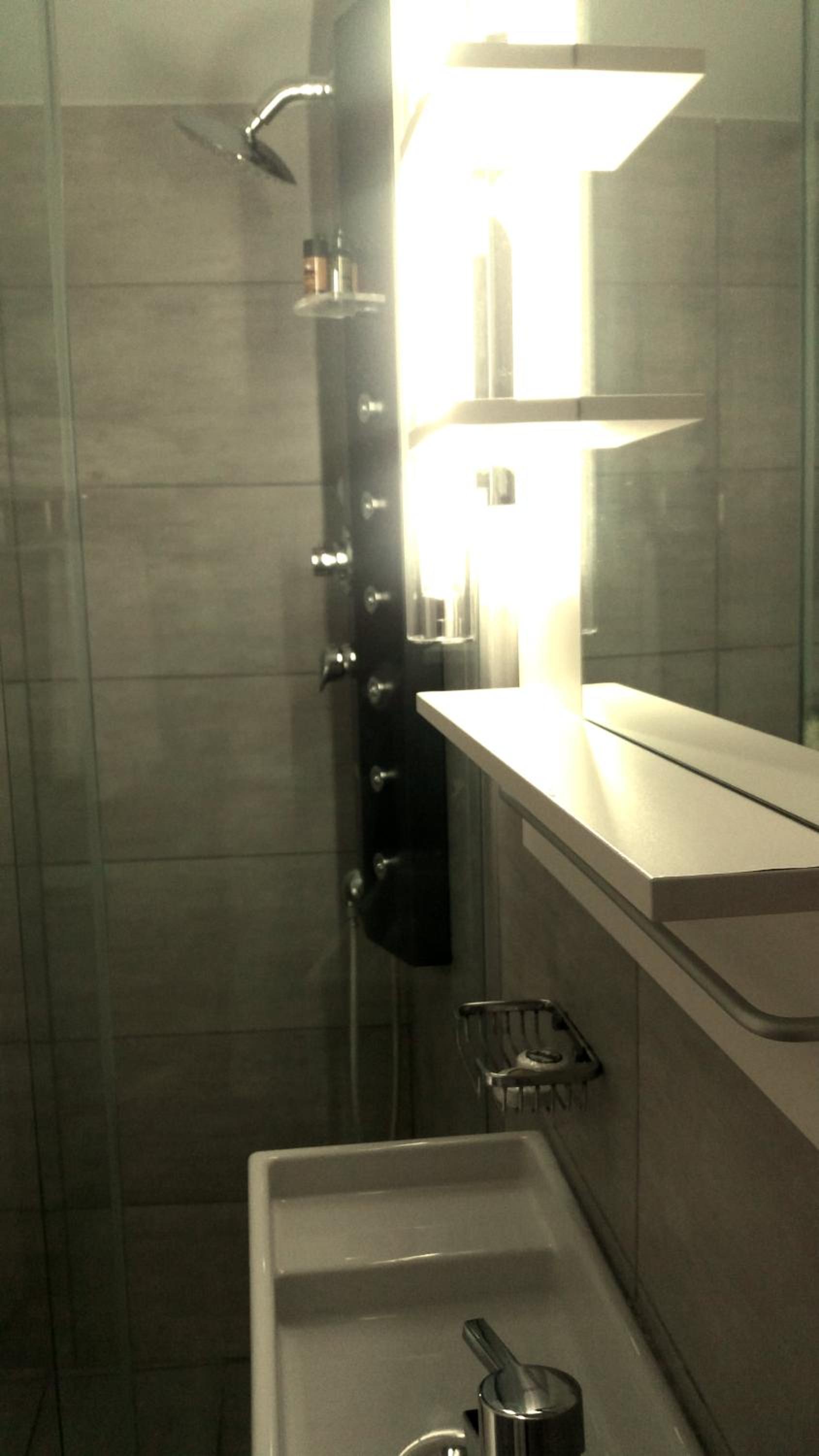 - The shower was cold (not sure if there are instructions somewhere to make it hot, we couldn't find them) and if you turn on the hydro massage function first it will flood the floor