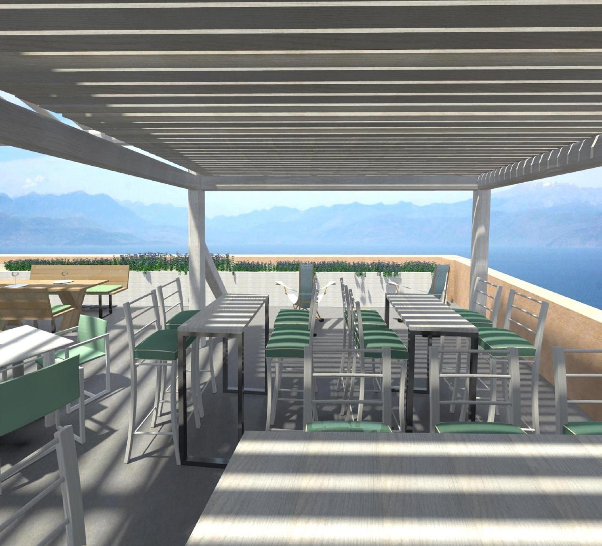- the terrace is in a car park. It is surrounded with lovely vines and flowers but still you are conscious you are in the car park