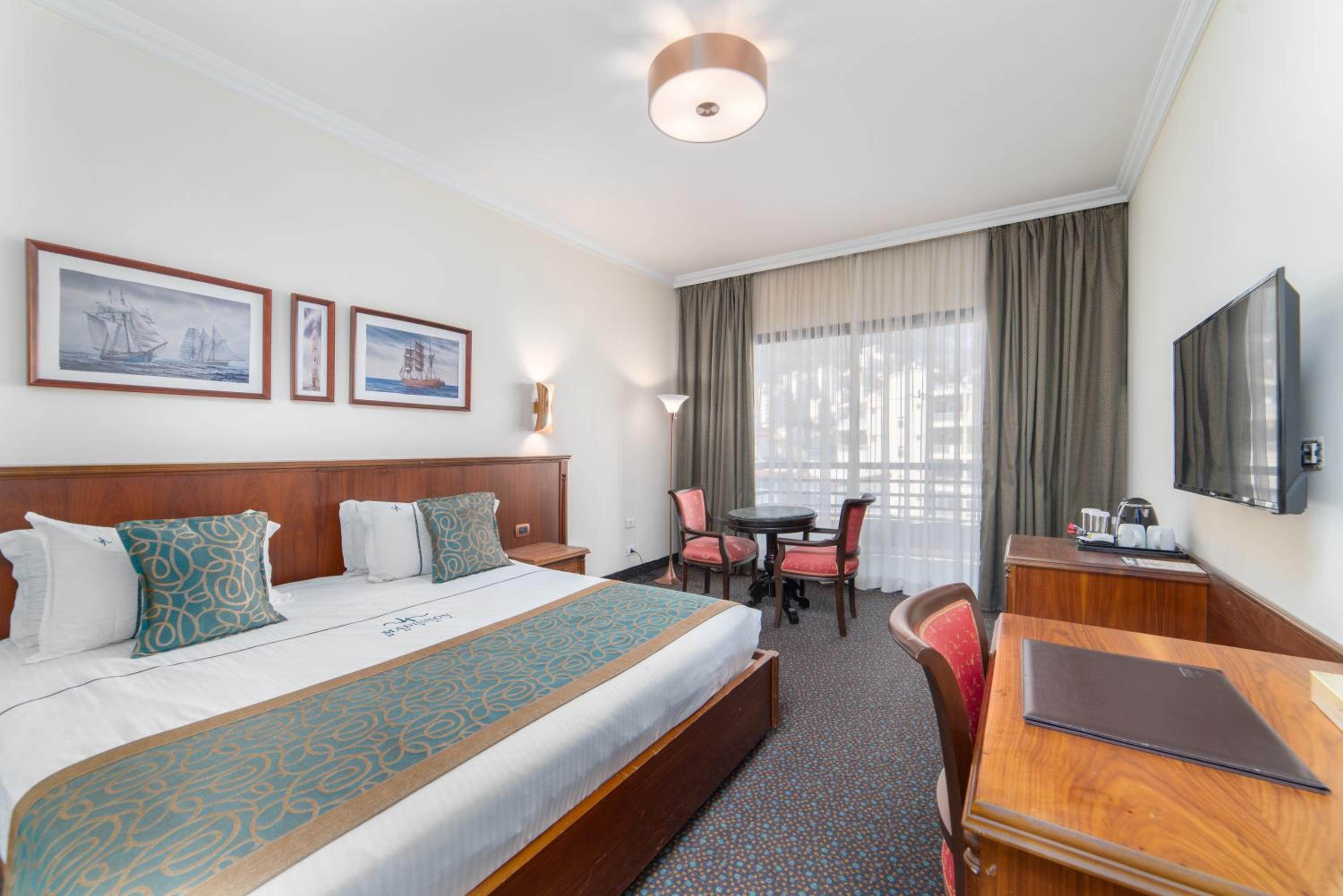 The spacious rooms and suites at Madisson Hotel feature recessed lighting, balconies with side sea views, and private bathrooms with tubs and robes. The warm ambiance and thoughtful details ensure a comfortable stay for guests.