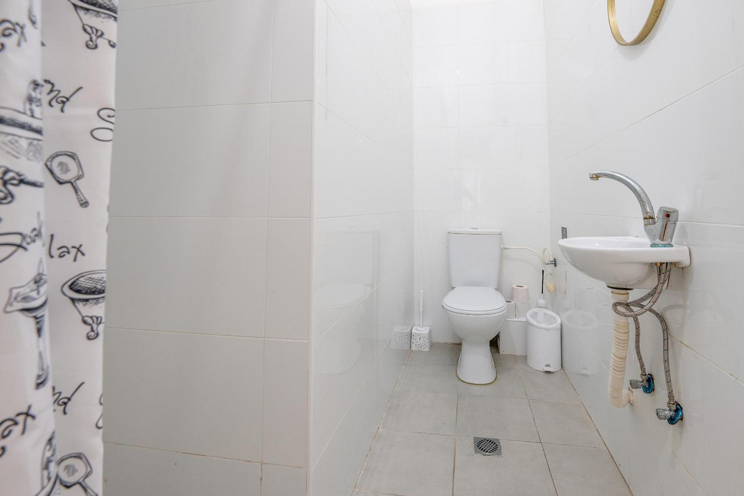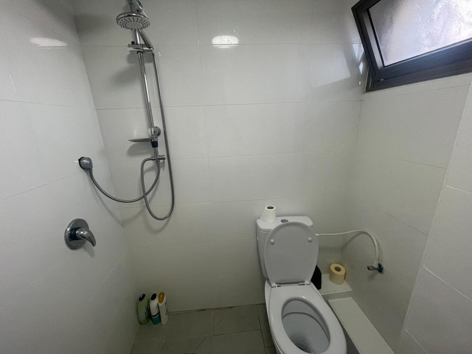 המקלחת קטנה מאוד והמים בכל מקום ואין אפילו מגב