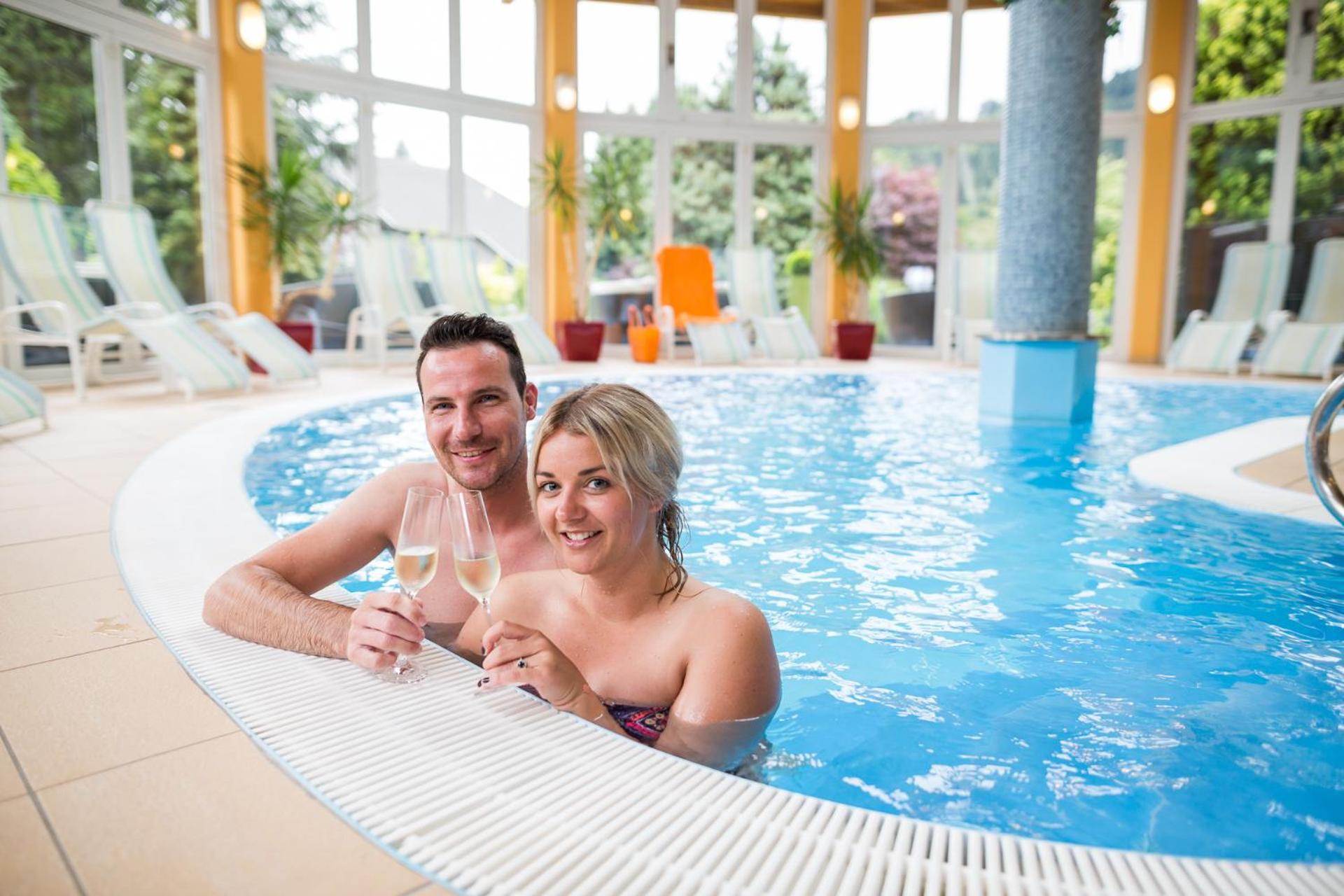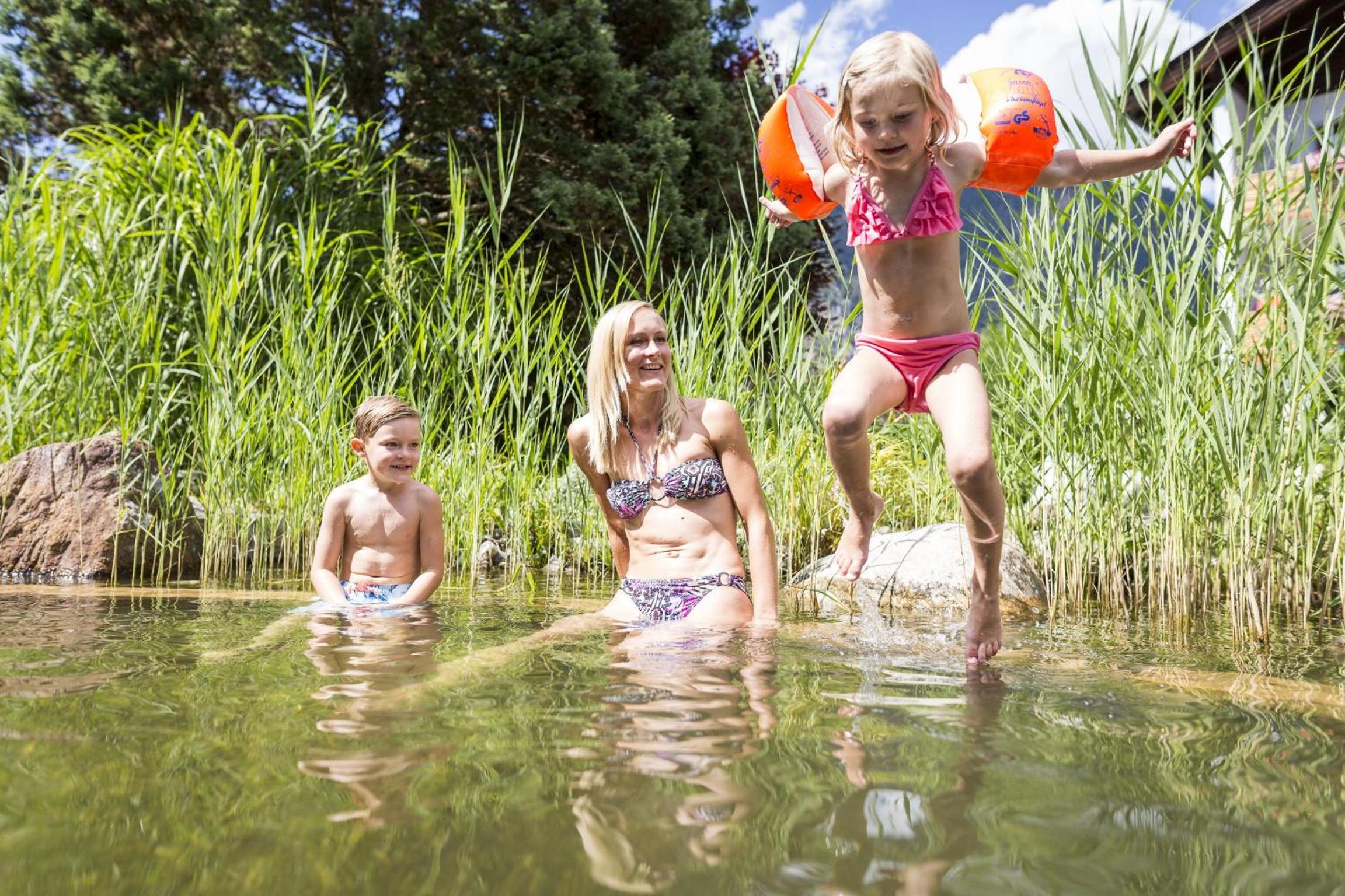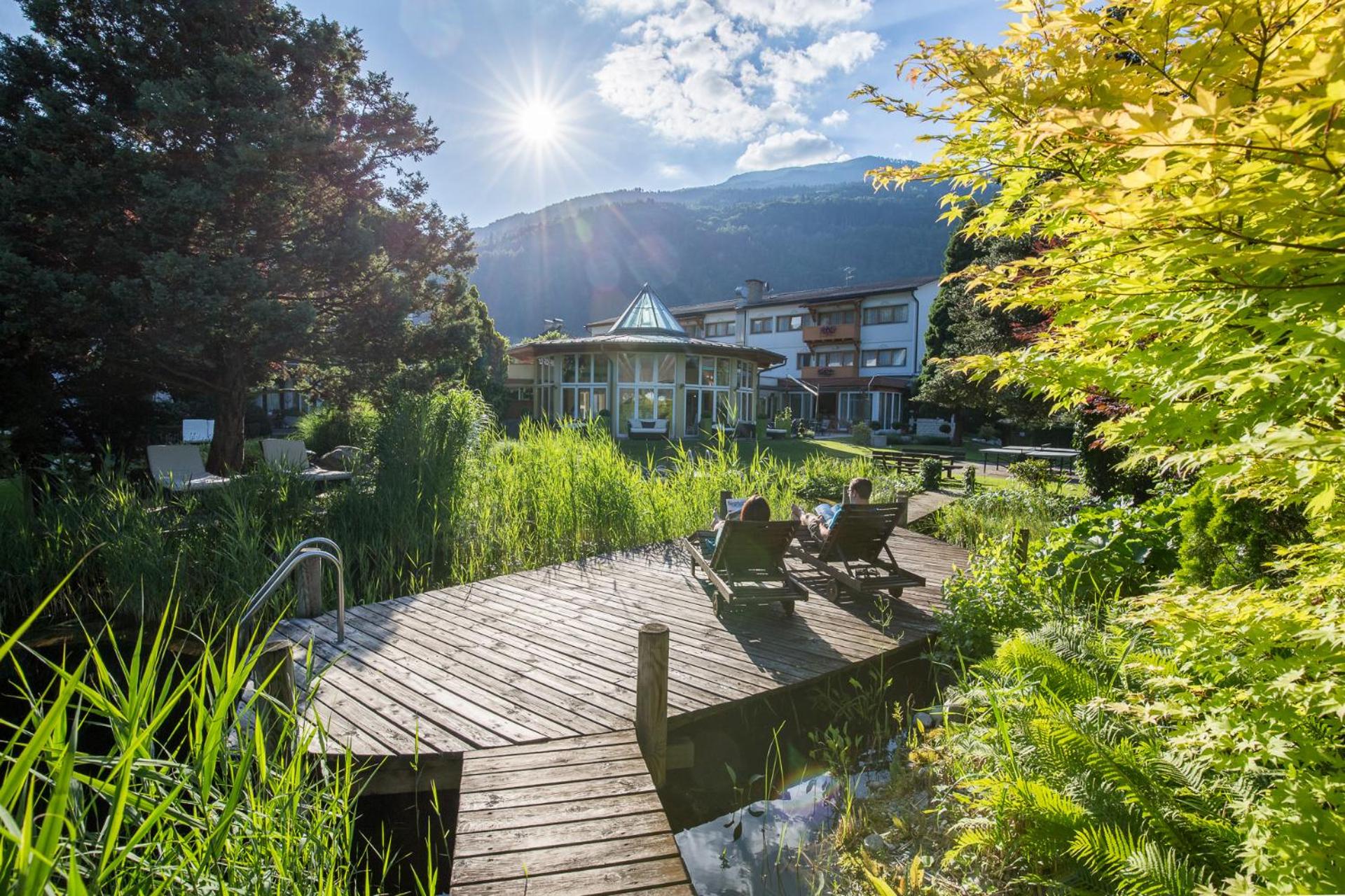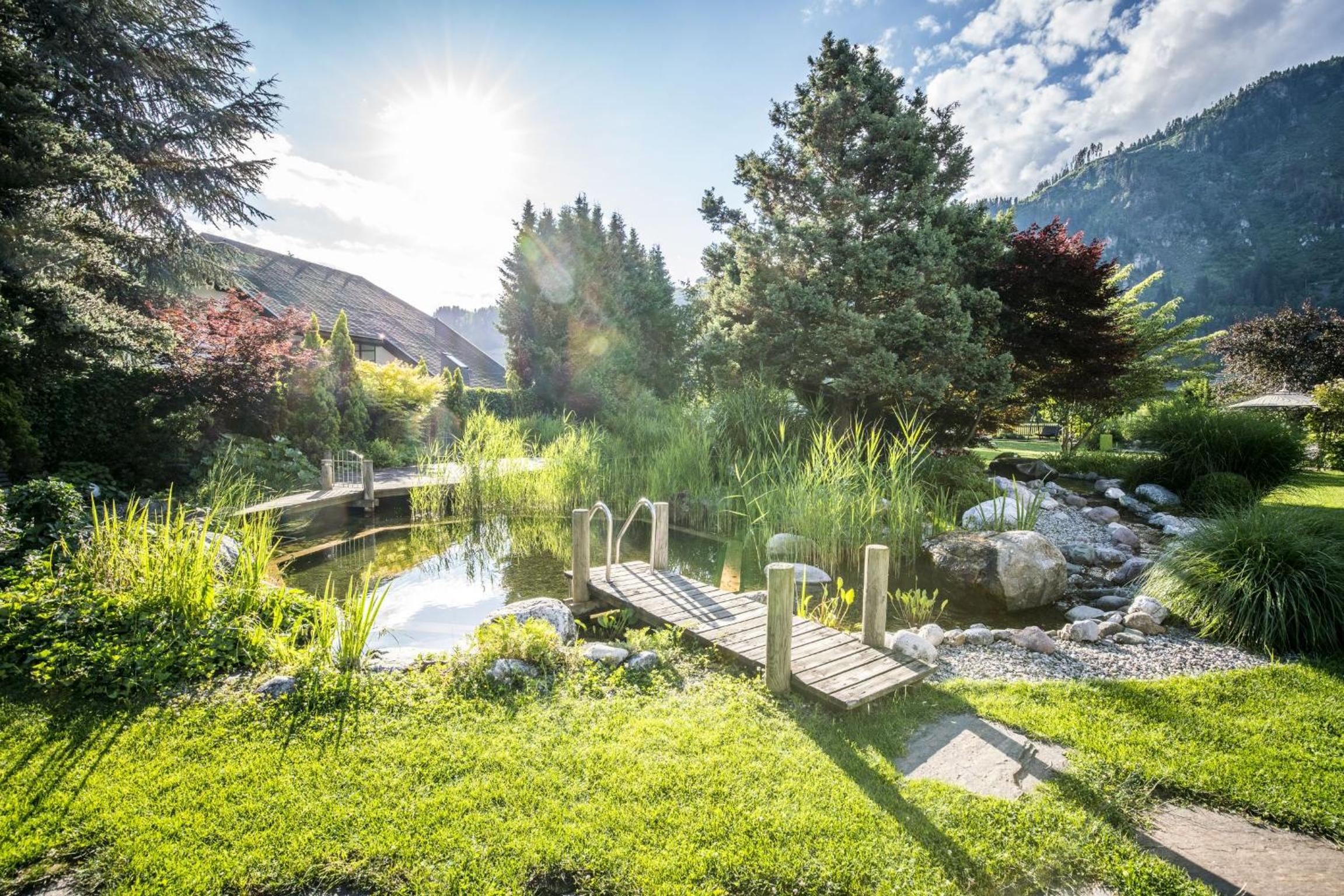 Hotel Trattnig boasts a large indoor and outdoor recreation area with loungers, a pond, a playground, and an indoor pool. Guests can unwind and enjoy various activities in a serene environment.