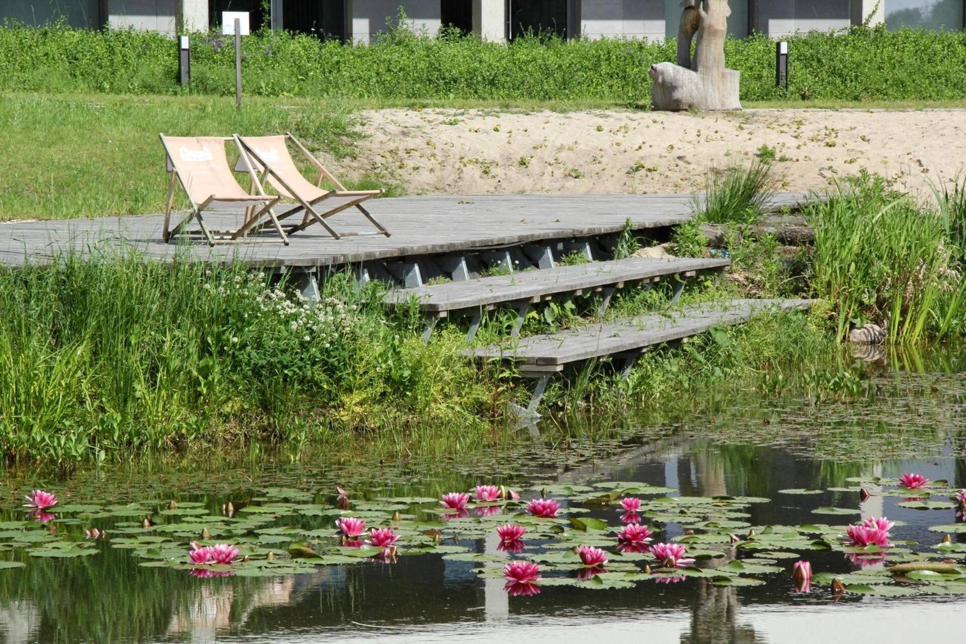 Czystość, teren obok z oczkami wodnymi i zwierzakami