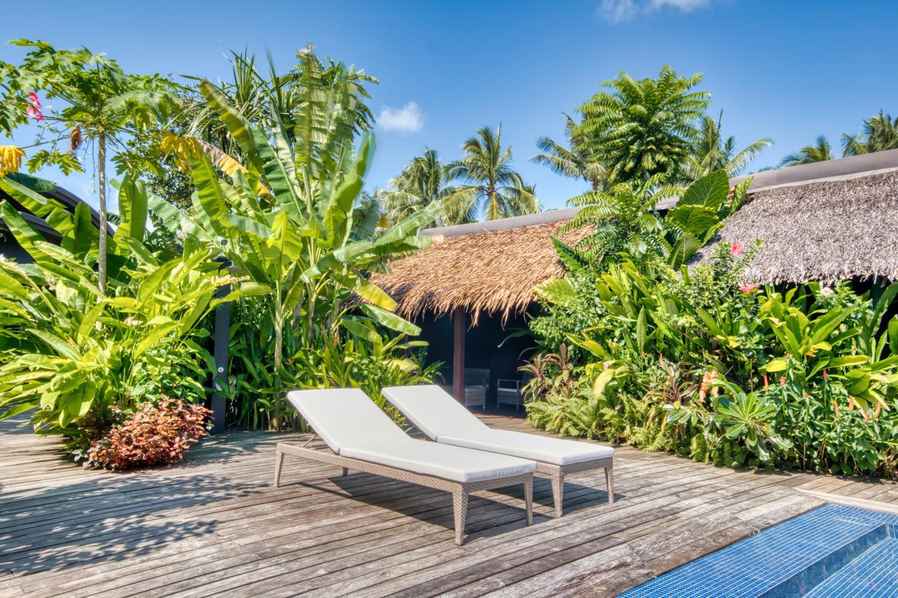 Die Anlage ist wirklich wunderschön hergerichtet und gepflegt. Beim Betreten wird man durch einen Art Dschungel empfangen, mit wundervollen Pflanzen und Blüten. Die Bungalows sind um einen schönen Pool angelegt, durch die Bepflanzung genießen alle eine ausreichende Privatsphäre. Der Pool ist warm aber sehr angenehm, trotz der guten Lage lässt es sich in ruhiger Umgebung entspannen.