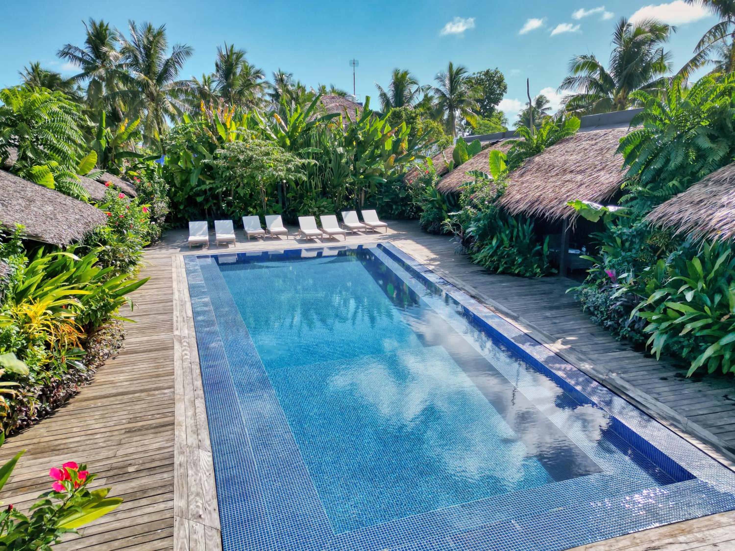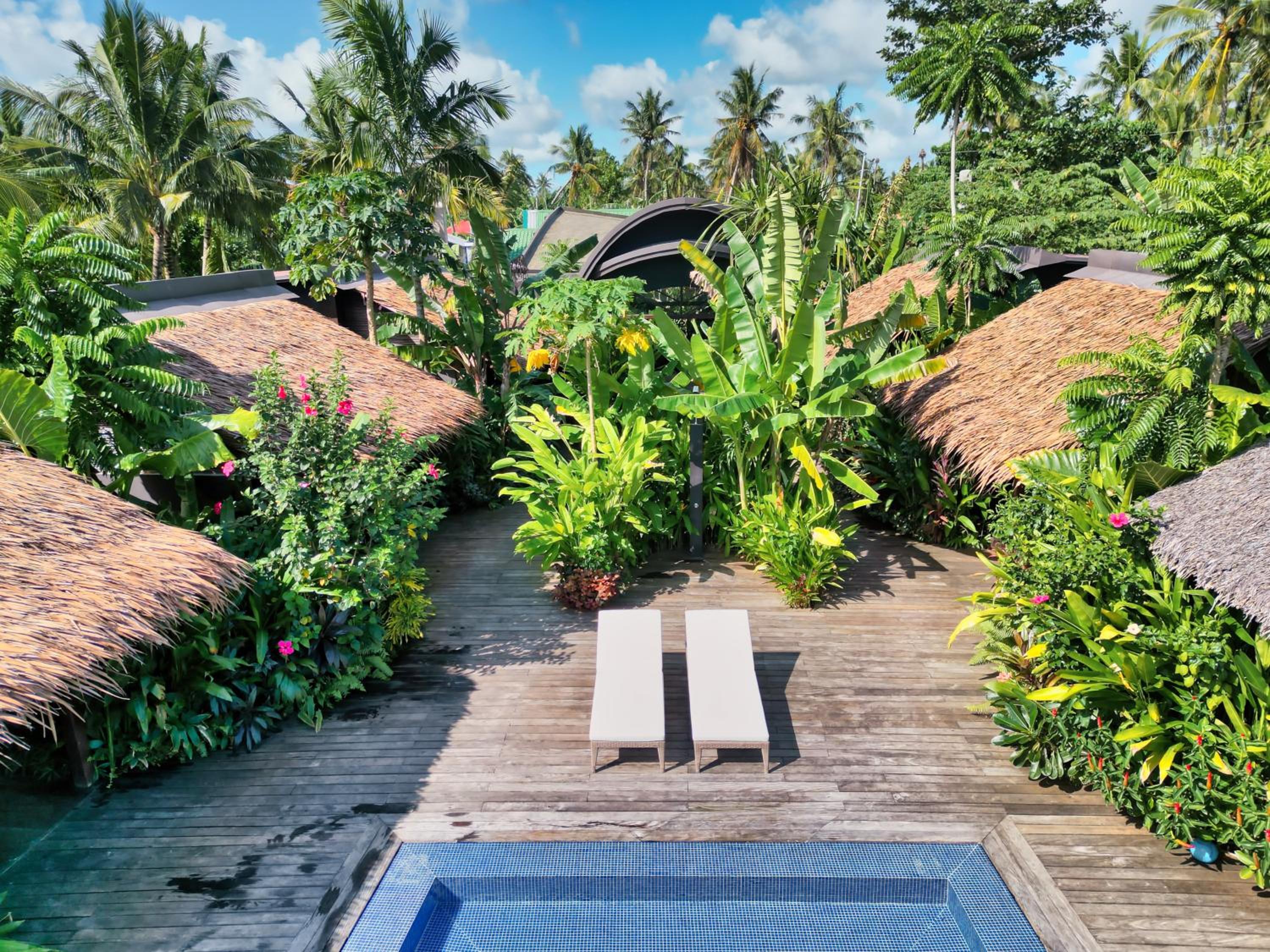 Kajali Siargao offers a serene escape with its outdoor swimming pool, garden, and terrace, perfect for relaxation under the sun.