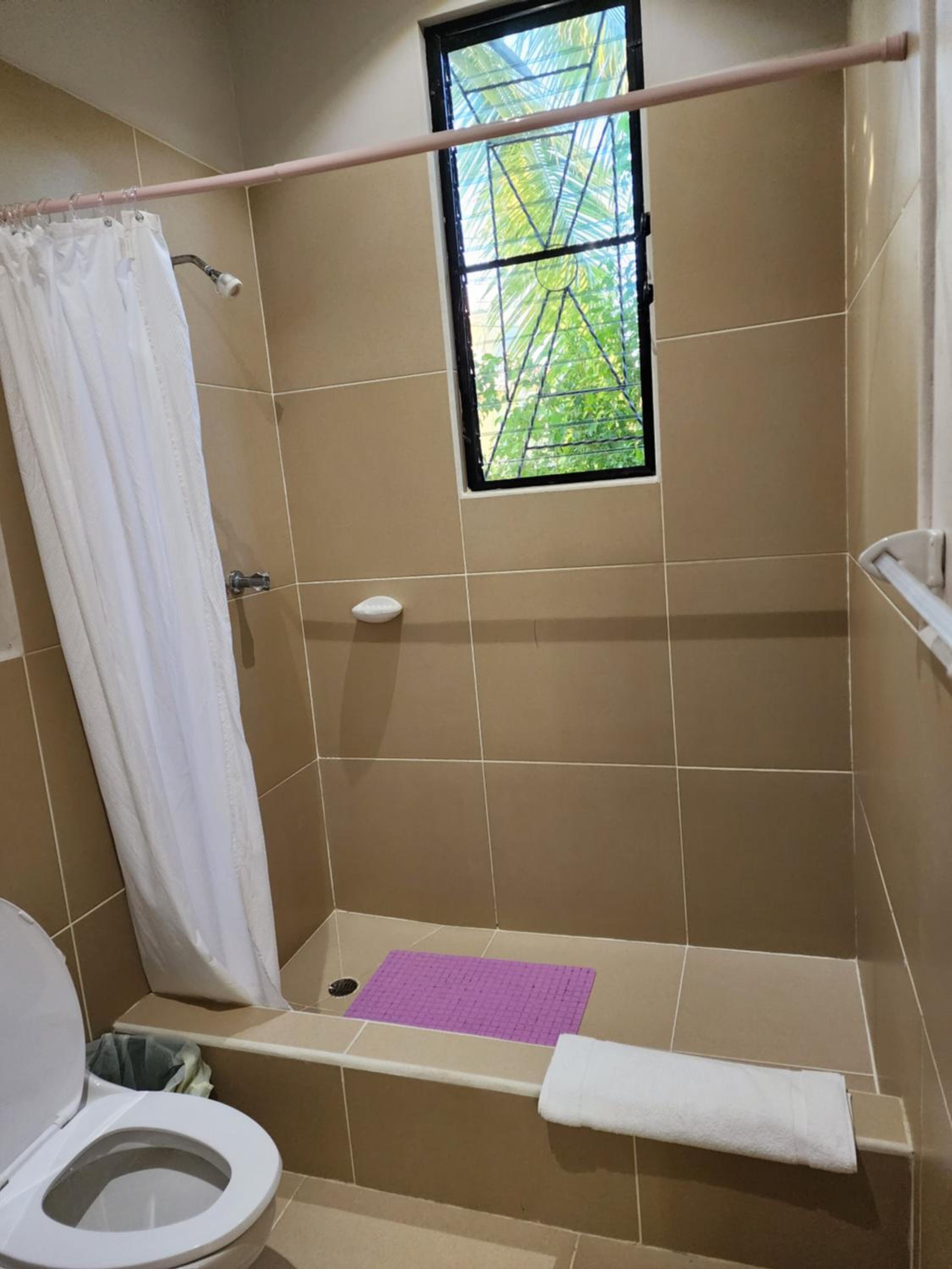 La propreté. Durant nos 3 nuits de séjour le ménage n’a jamais été fait dans notre chambre alors que l’étiquette « clean my room please » était posée sur la porte. Le tapis de douche était moisi (cf photo) et les serviettes de toilettes pas nickel (traces marrons).