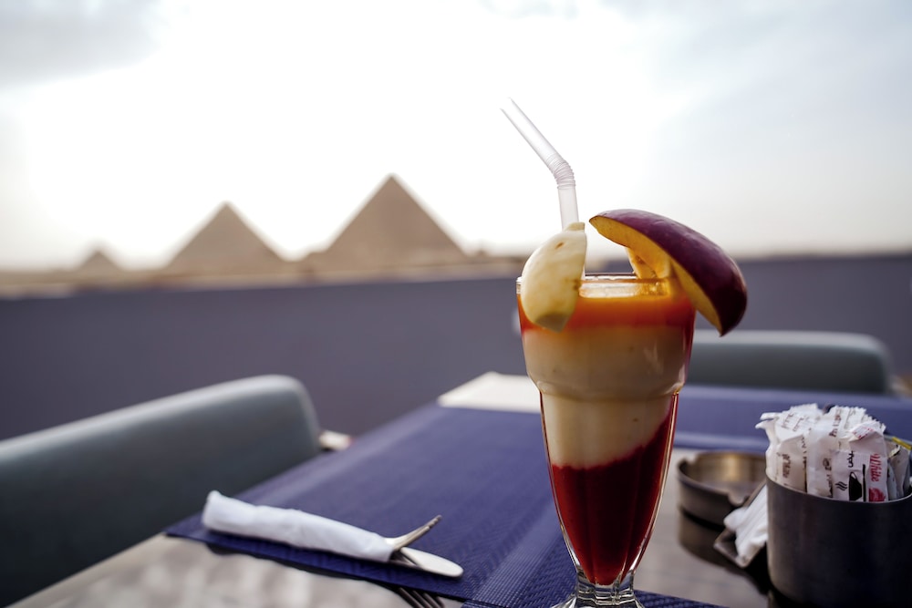 The view from the rooftop bar over the pyramids was great. The breakfast was far from inpressive. The staff was hello ful. The waiter at the rooftop bar was very push and not good at making calculations of the bill.