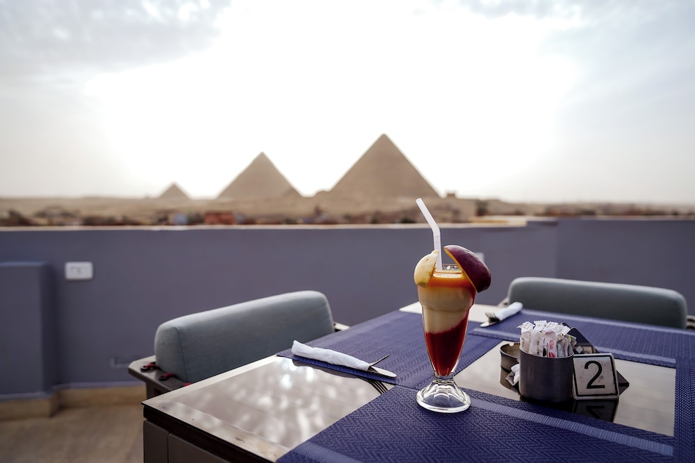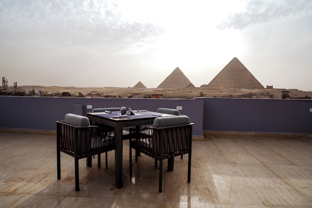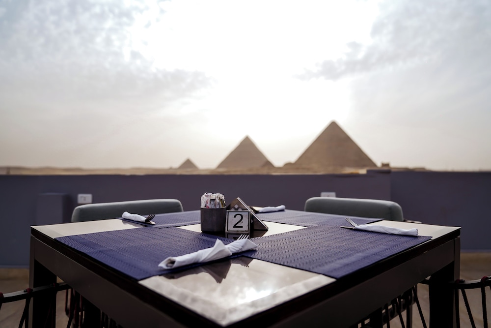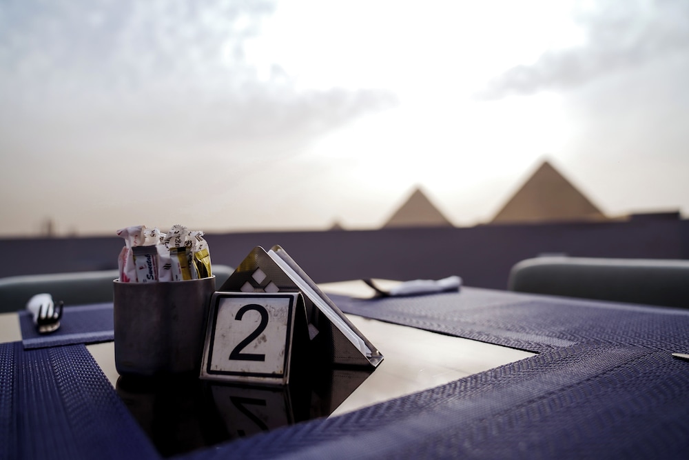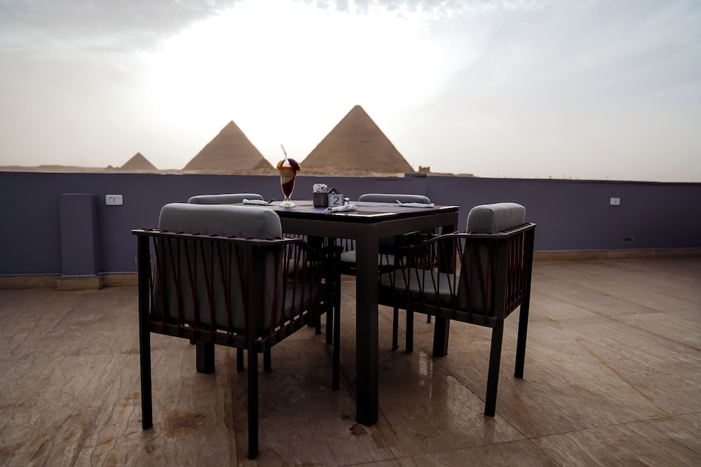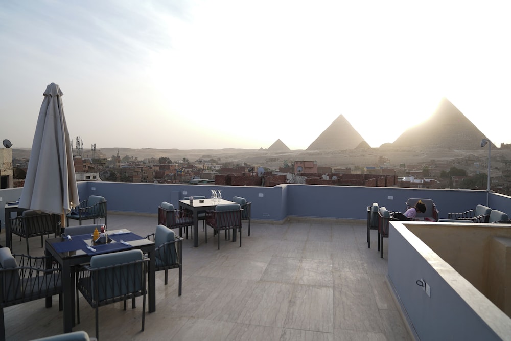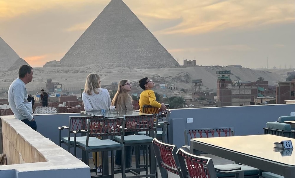 The view of the pyramids was perfect! Very nice stay! Nice rooftop.