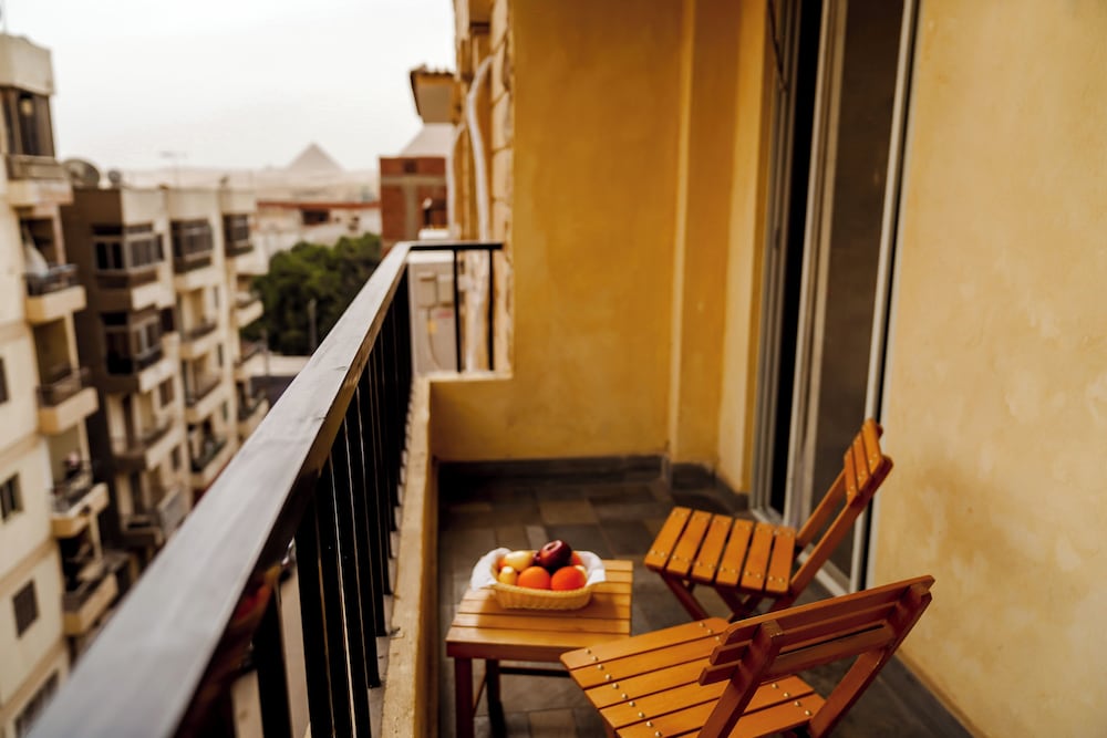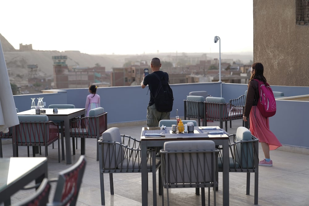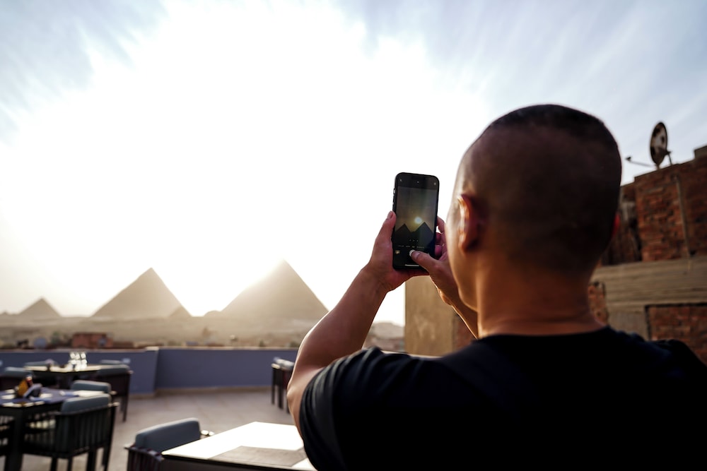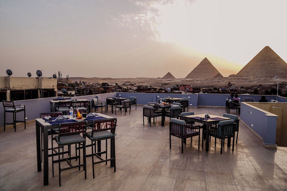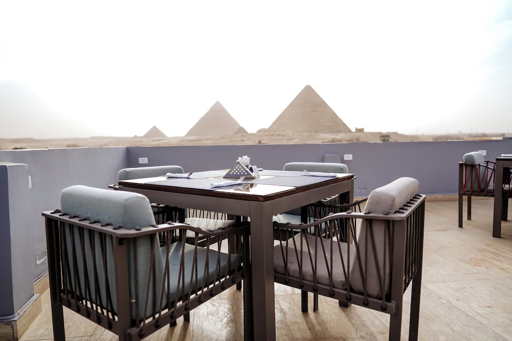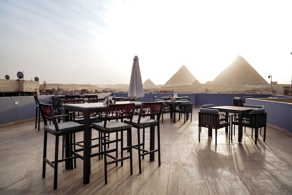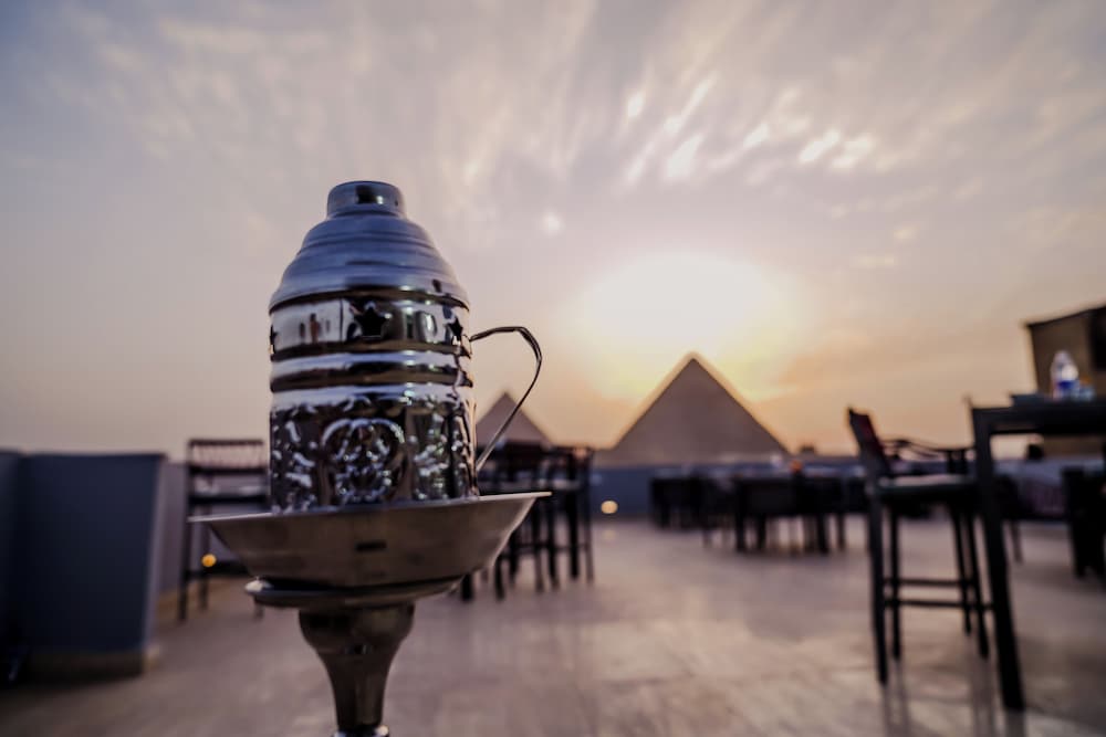 The view of the pyramids was perfect! Very nice stay! Nice rooftop.