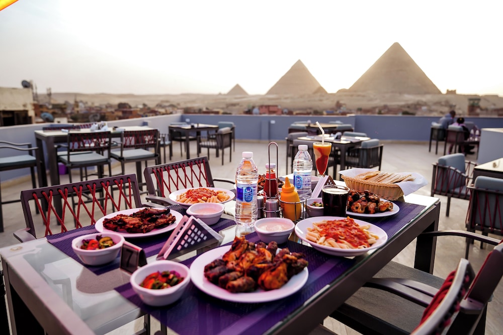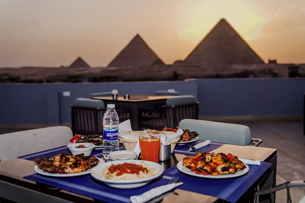 Our stay at the pyramid hotel was incredibly lovely. The staff were extremely friendly and helped us in every way they could. We are strictly vegetarian and we found that the breakfast that they included wasn’t suitable for us and we expressed this to the staff and they kindly created an alternative breakfast menu for us and were happy to accommodate that. Sammy especially was so kind to us and thought and treated us like family, making sure we had everything we needed and provided excellent service and hospitality. Gabby (the hotel manager) was incredibly helpful with arranging our tour guide and the later quad biking trip. The staff at the front desk ( Ziyad) were willing to help us book private tours to the pyramids including a English speaking tour guide (Mohammed) who was incredible in the way he spoke about the pyramids history, telling us everything we need to know about the worlds wonder. He also helped us stay safe around the many people surrounding the pyramid area who haggle you to buy things from them, i would highly recommend that you take a tour guide as it helps enhance the experience. The hotel have many more they have listed including: (river Nile cruise, quad biking and khan al Khalili….). The rooms were beautiful and our room and main rooftop overlooked the pyramids giving us a breath taking view of the city and surrounding area. The hotel address that was provided for us didn’t directly take us to the hotel as the address wasn’t accurate, we found the hot
