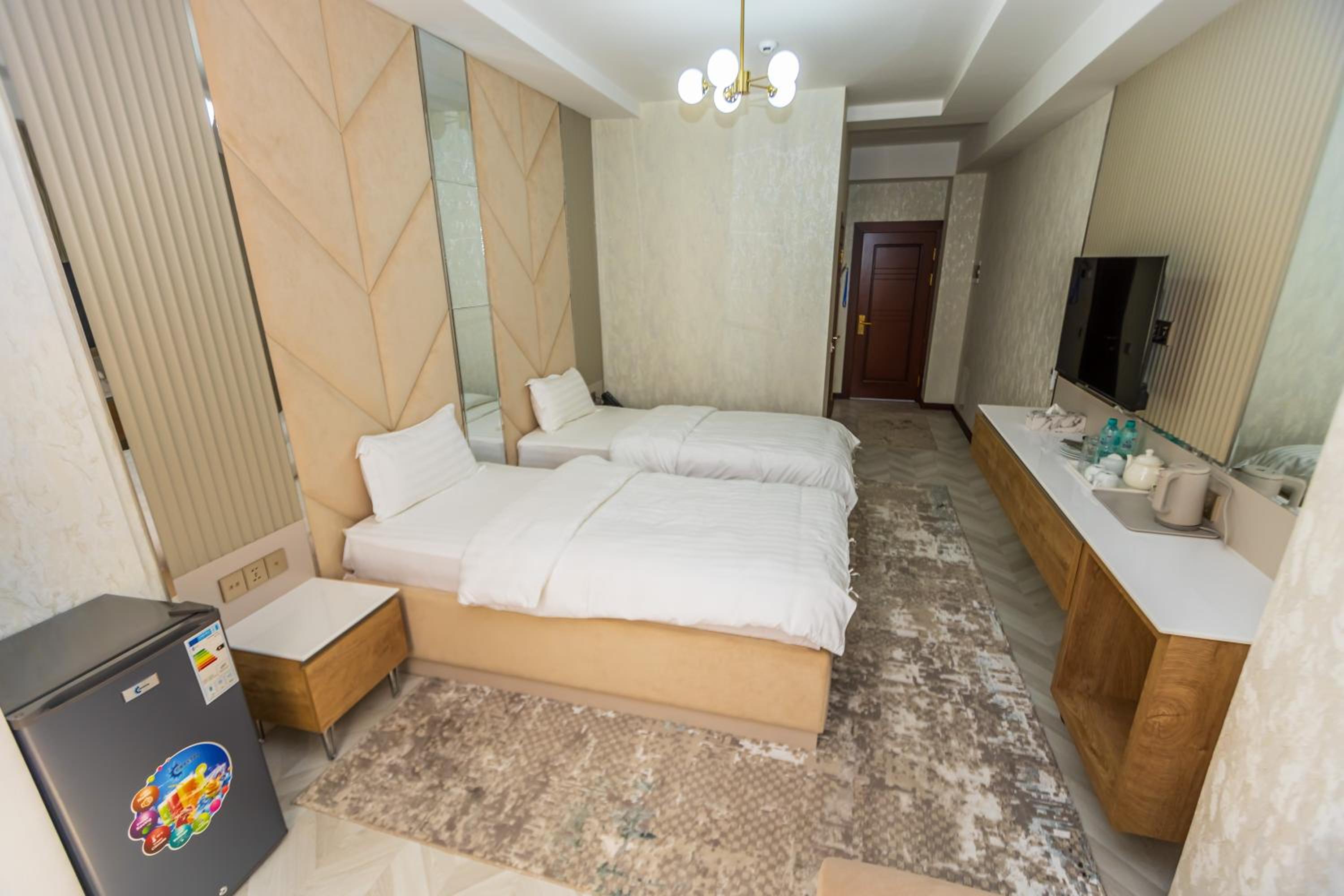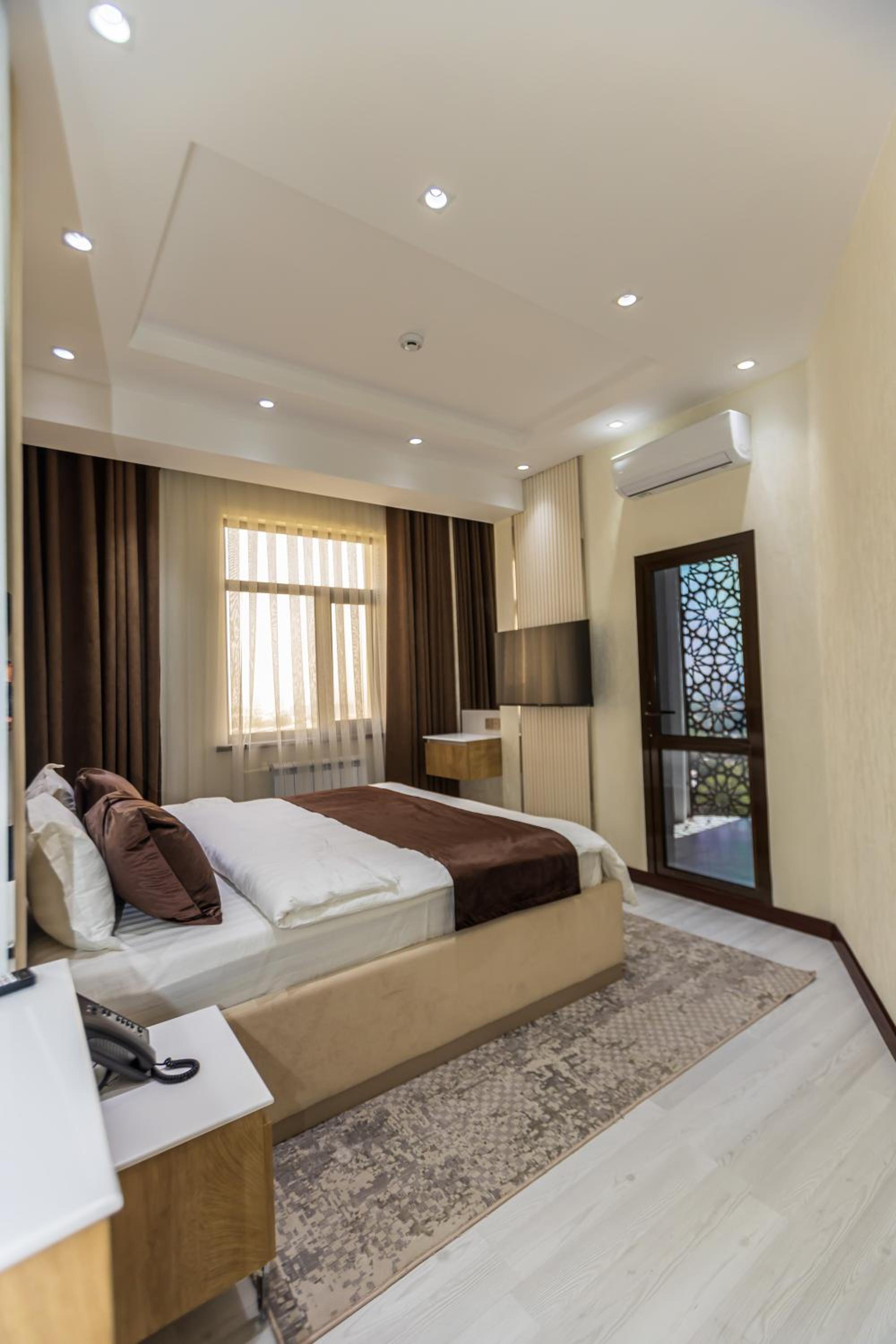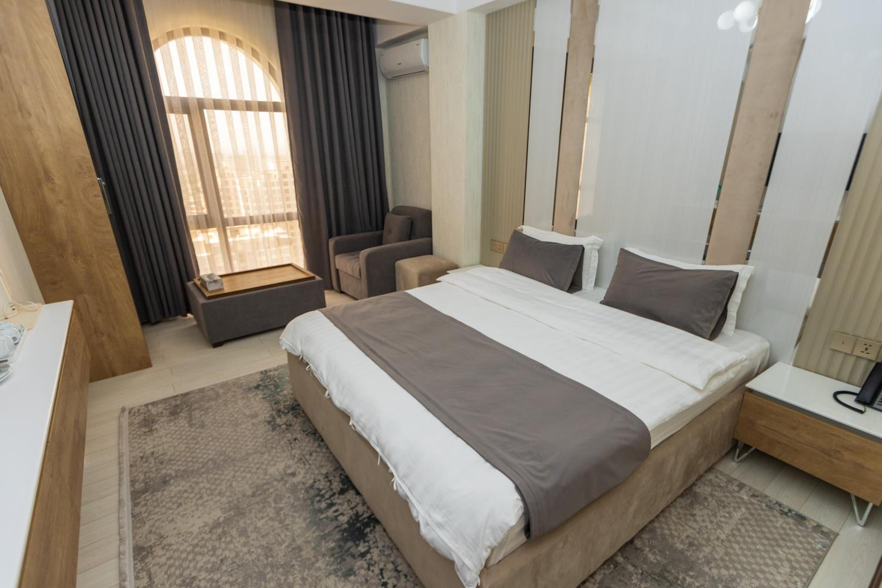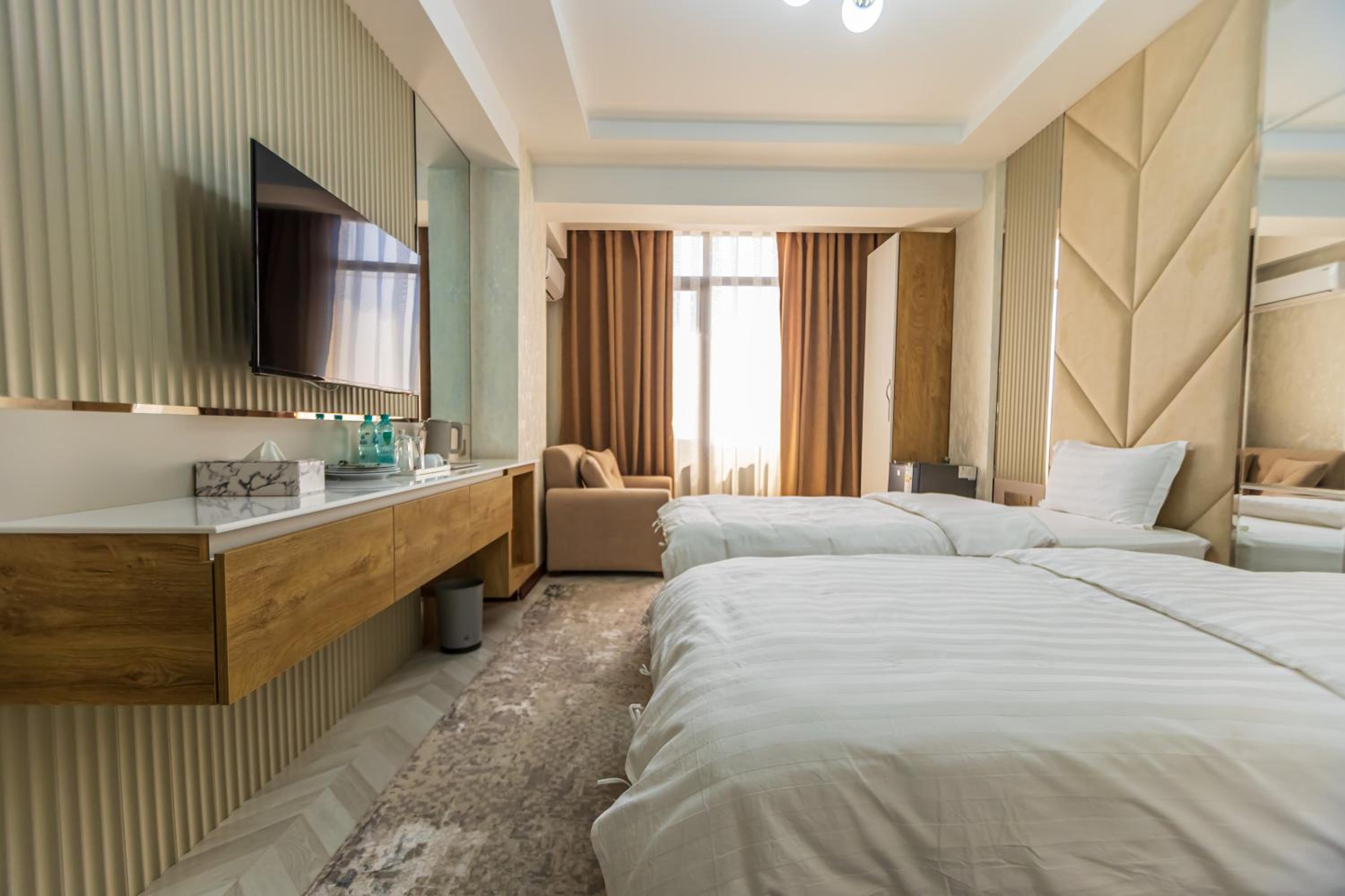 I had a wonderful stay at this hotel, thanks to the warm and extremely friendly staff who made every part of my visit enjoyable. From the welcoming reception to the ladies serving breakfast, their kindness was evident at every turn. The hotel's location was fantastic—just a few minutes' walk from the iconic Somoni statue, with a handful of useful shops, a drugstore, and restaurants nearby. While I didn't use the sauna, the gym was modern, clean, and functional, though small. The hotel's aura, a blend of modern Persian design, was both graceful and beautiful, creating a serene and stylish atmosphere throughout my stay.