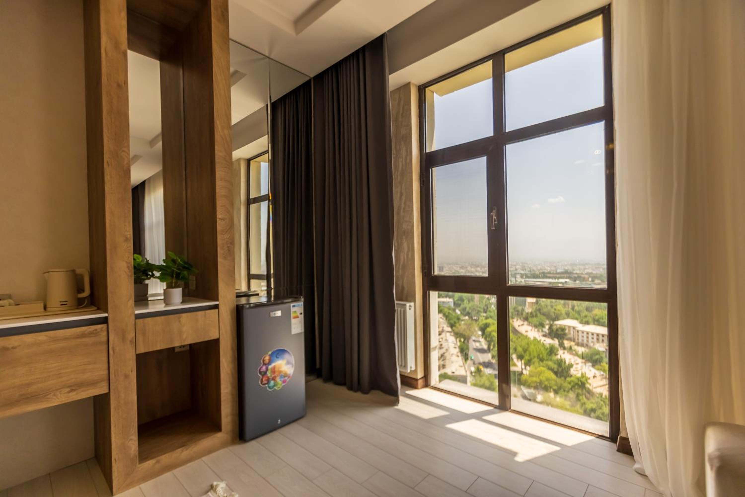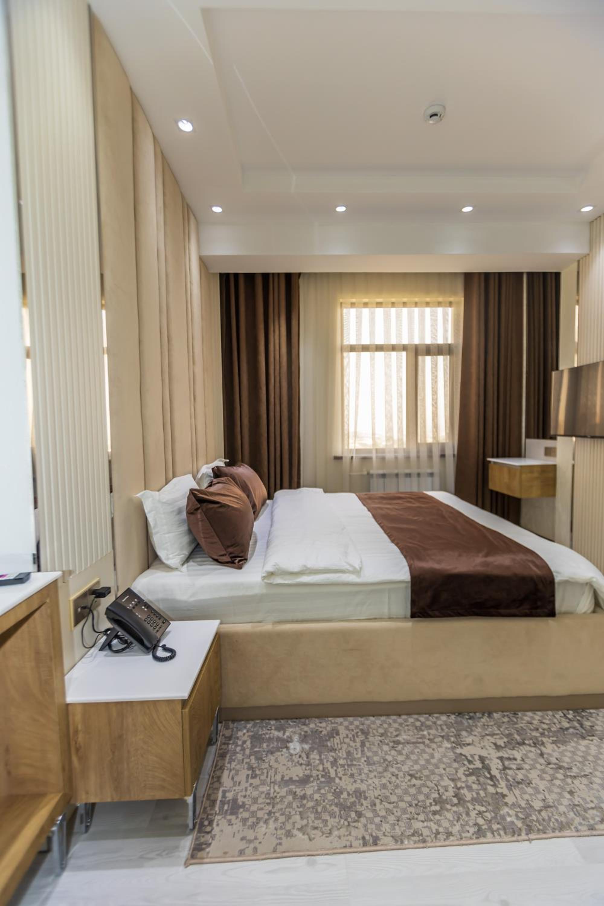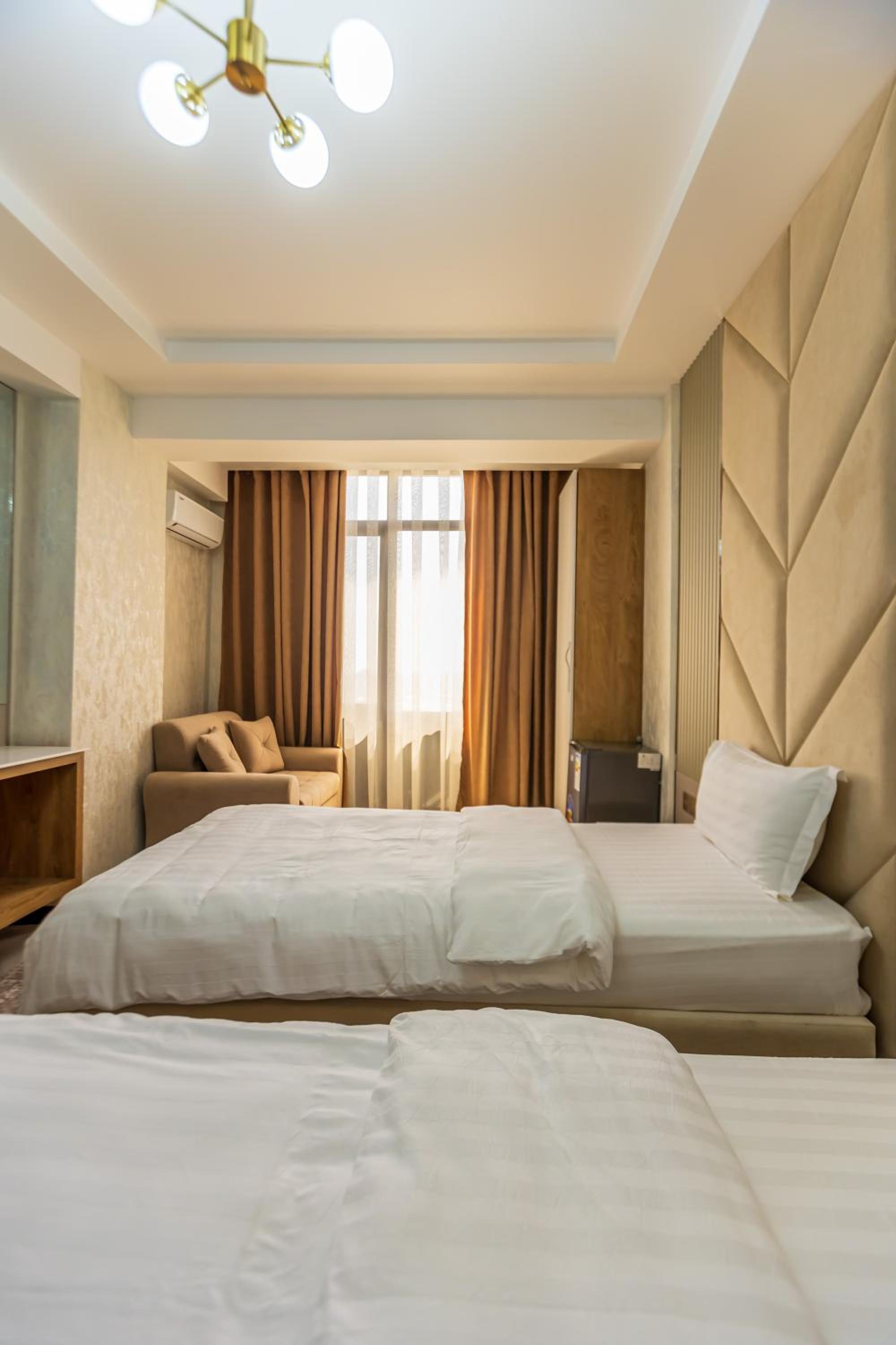 I had a wonderful stay at this hotel, thanks to the warm and extremely friendly staff who made every part of my visit enjoyable. From the welcoming reception to the ladies serving breakfast, their kindness was evident at every turn. The hotel's location was fantastic—just a few minutes' walk from the iconic Somoni statue, with a handful of useful shops, a drugstore, and restaurants nearby. While I didn't use the sauna, the gym was modern, clean, and functional, though small. The hotel's aura, a blend of modern Persian design, was both graceful and beautiful, creating a serene and stylish atmosphere throughout my stay.