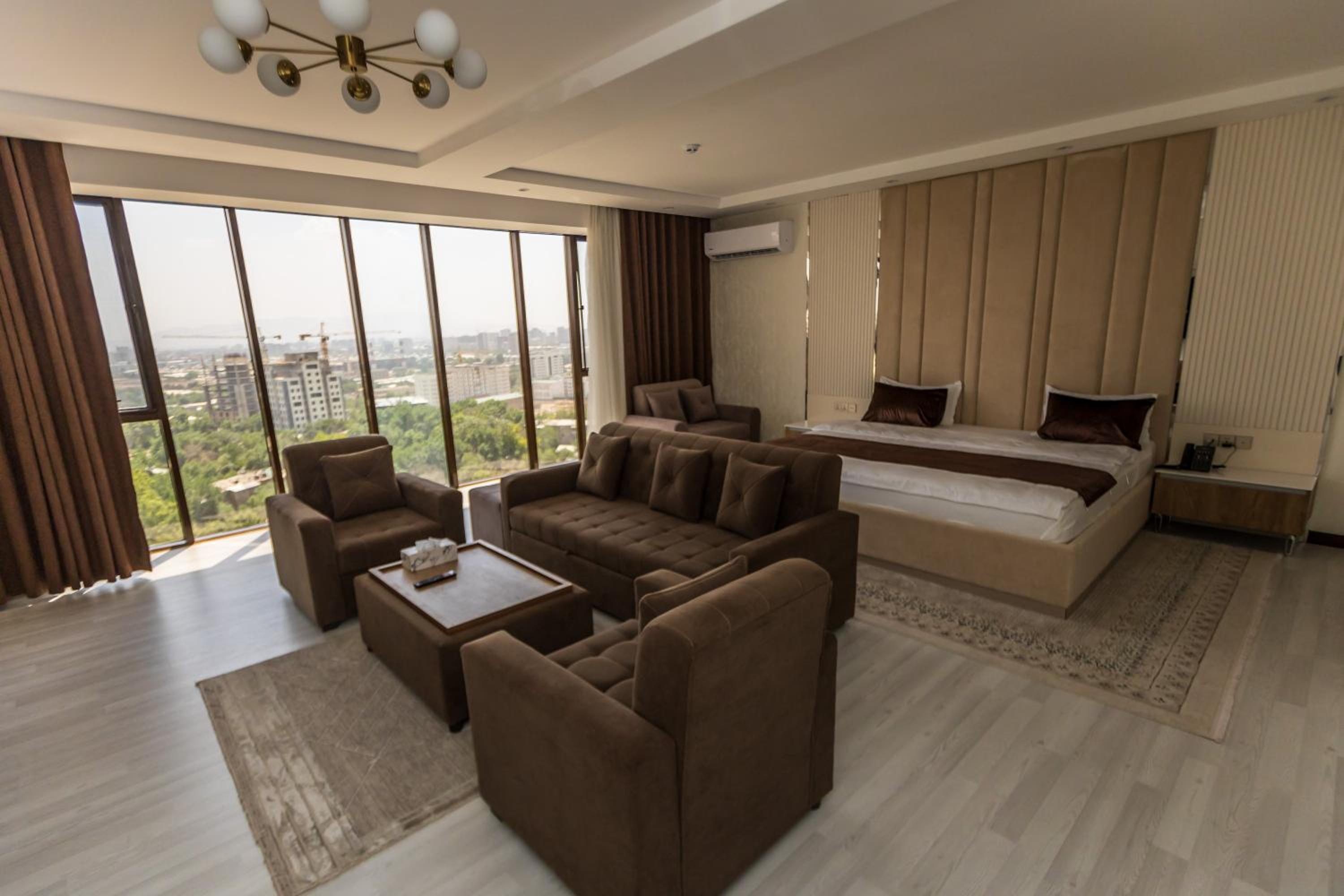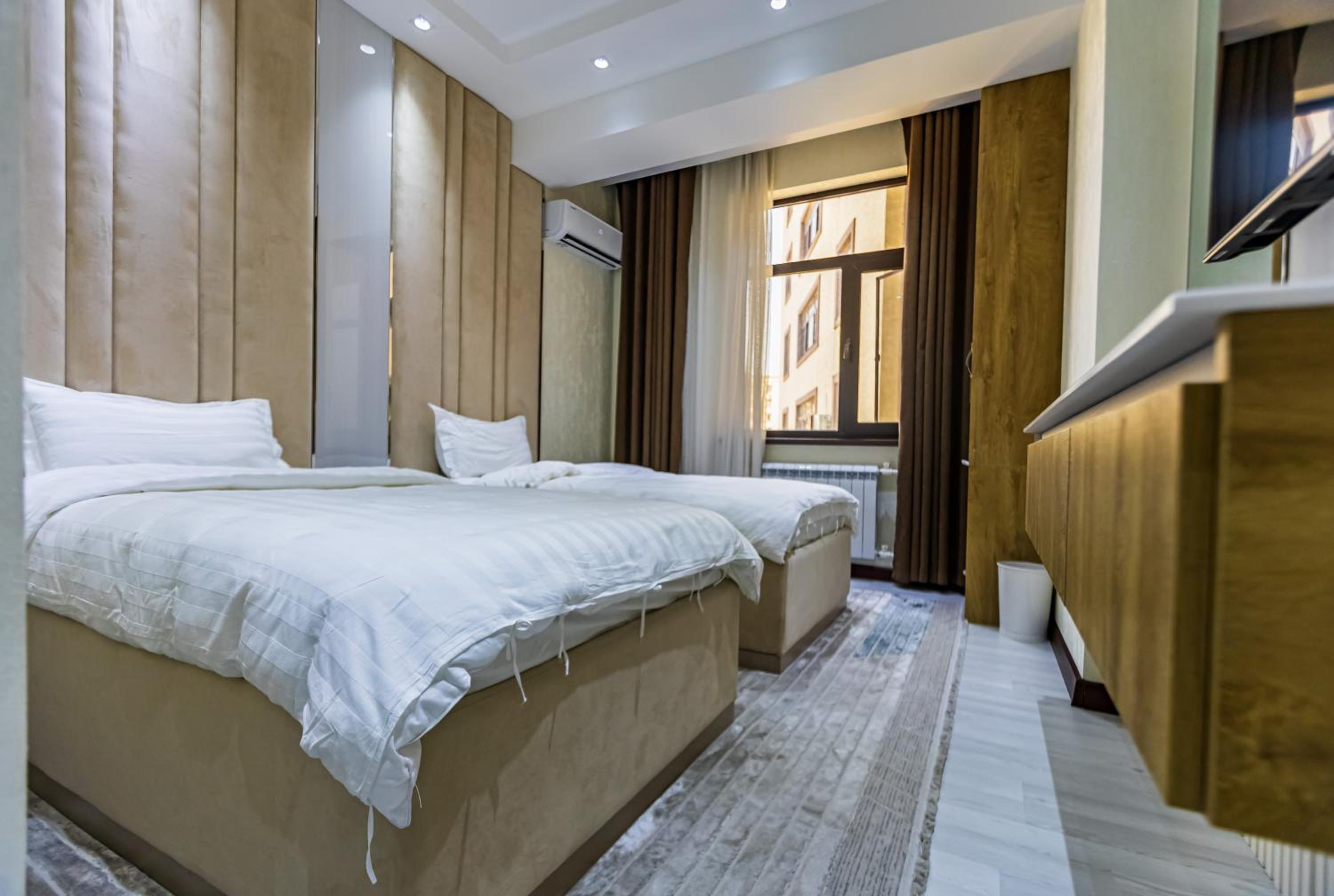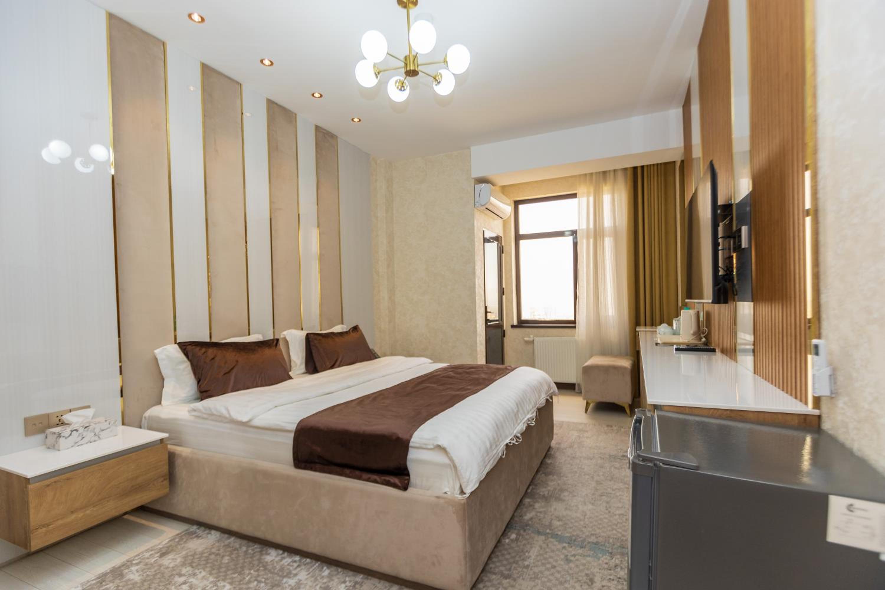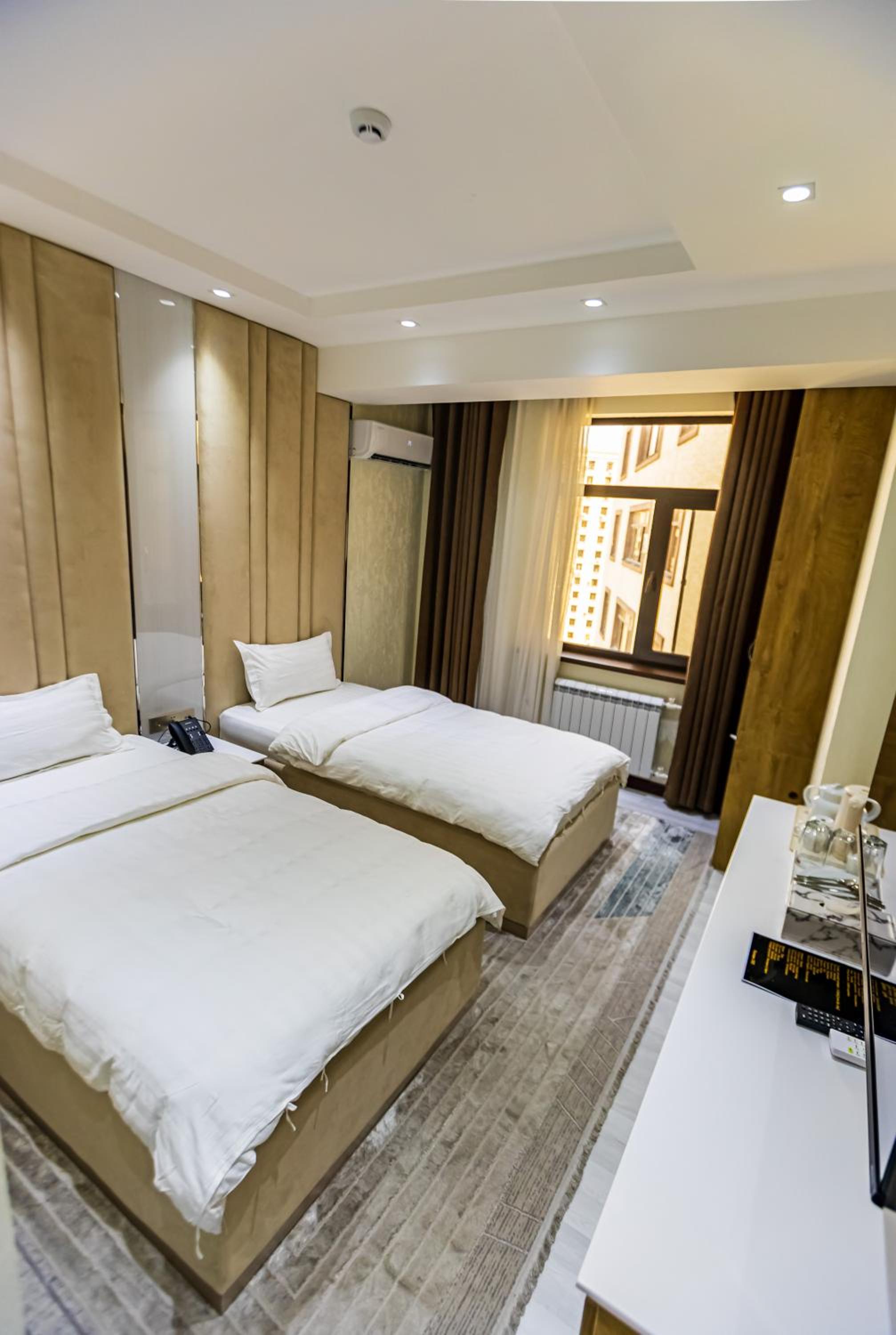 I had a wonderful stay at this hotel, thanks to the warm and extremely friendly staff who made every part of my visit enjoyable. From the welcoming reception to the ladies serving breakfast, their kindness was evident at every turn. The hotel's location was fantastic—just a few minutes' walk from the iconic Somoni statue, with a handful of useful shops, a drugstore, and restaurants nearby. While I didn't use the sauna, the gym was modern, clean, and functional, though small. The hotel's aura, a blend of modern Persian design, was both graceful and beautiful, creating a serene and stylish atmosphere throughout my stay.