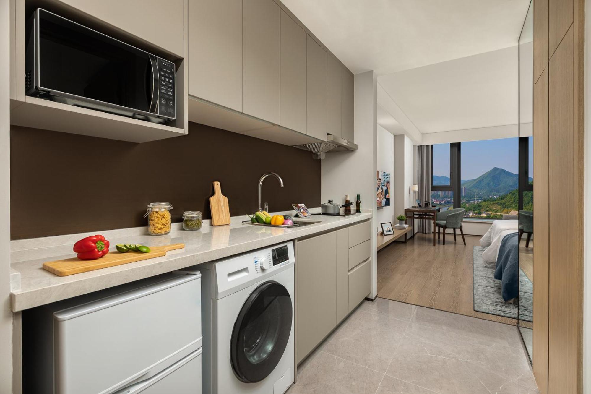 Experience a sustainable aparthotel in Hangzhou with stunning city views and a lush garden. Enjoy modern amenities like a fully equipped kitchen, yoga classes, and an indoor play area for children. Conveniently located just 65 km from Hangzhou Xiaoshan International Airport, Citadines Qingshanhu Hangzhou offers the perfect blend of comfort and accessibility. Book now to indulge in a relaxing stay with your loved ones.