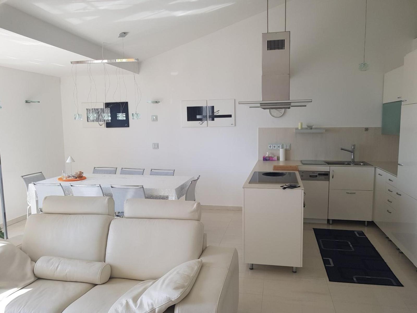 Izjemna lokacija, svetli in prostorni prostori, popolna oprema kuhinje in celotnega apartmaja, prijazni lastniki apartmaja., čudovit razgled, posebej ob sončnem zahodu.