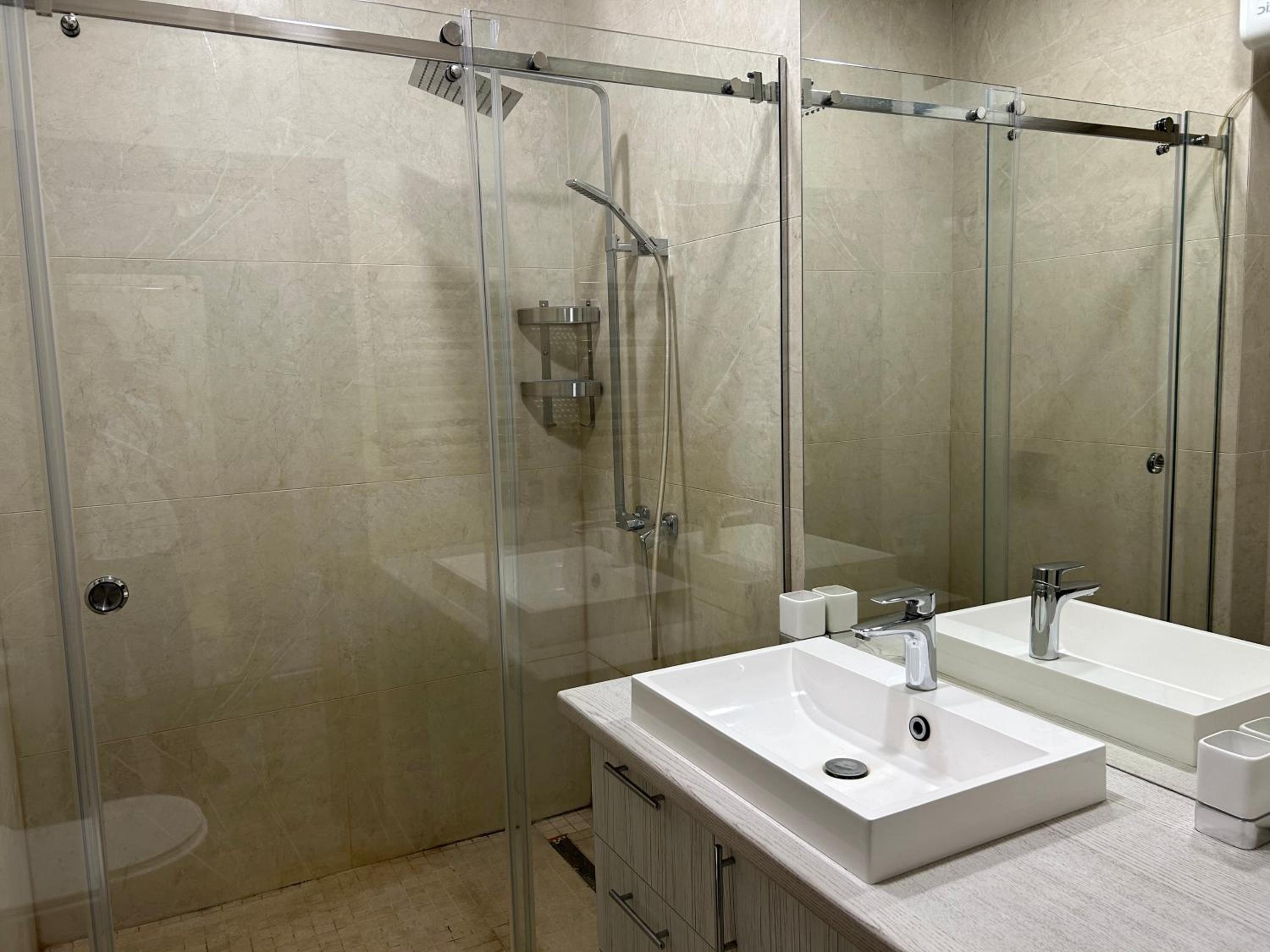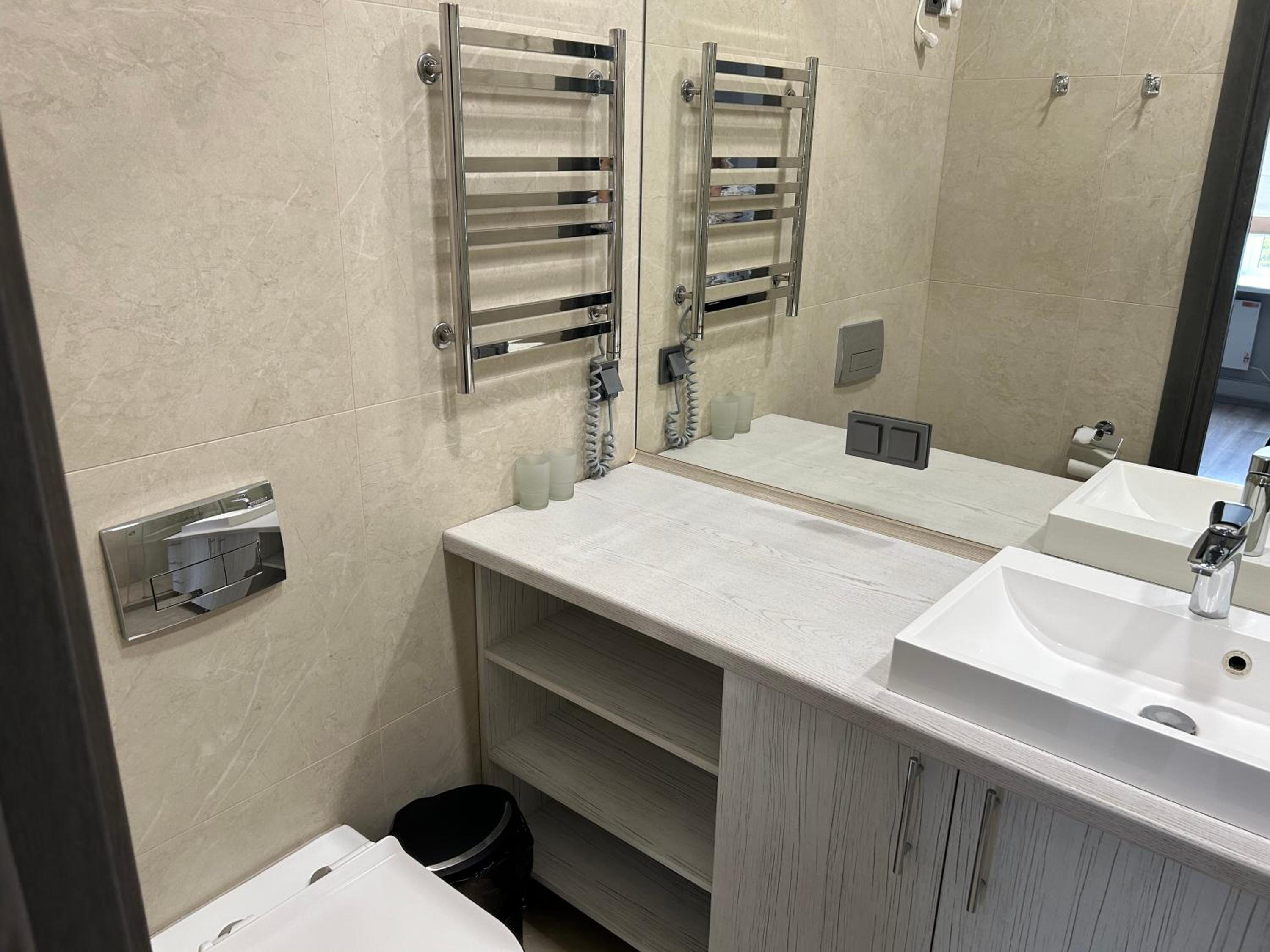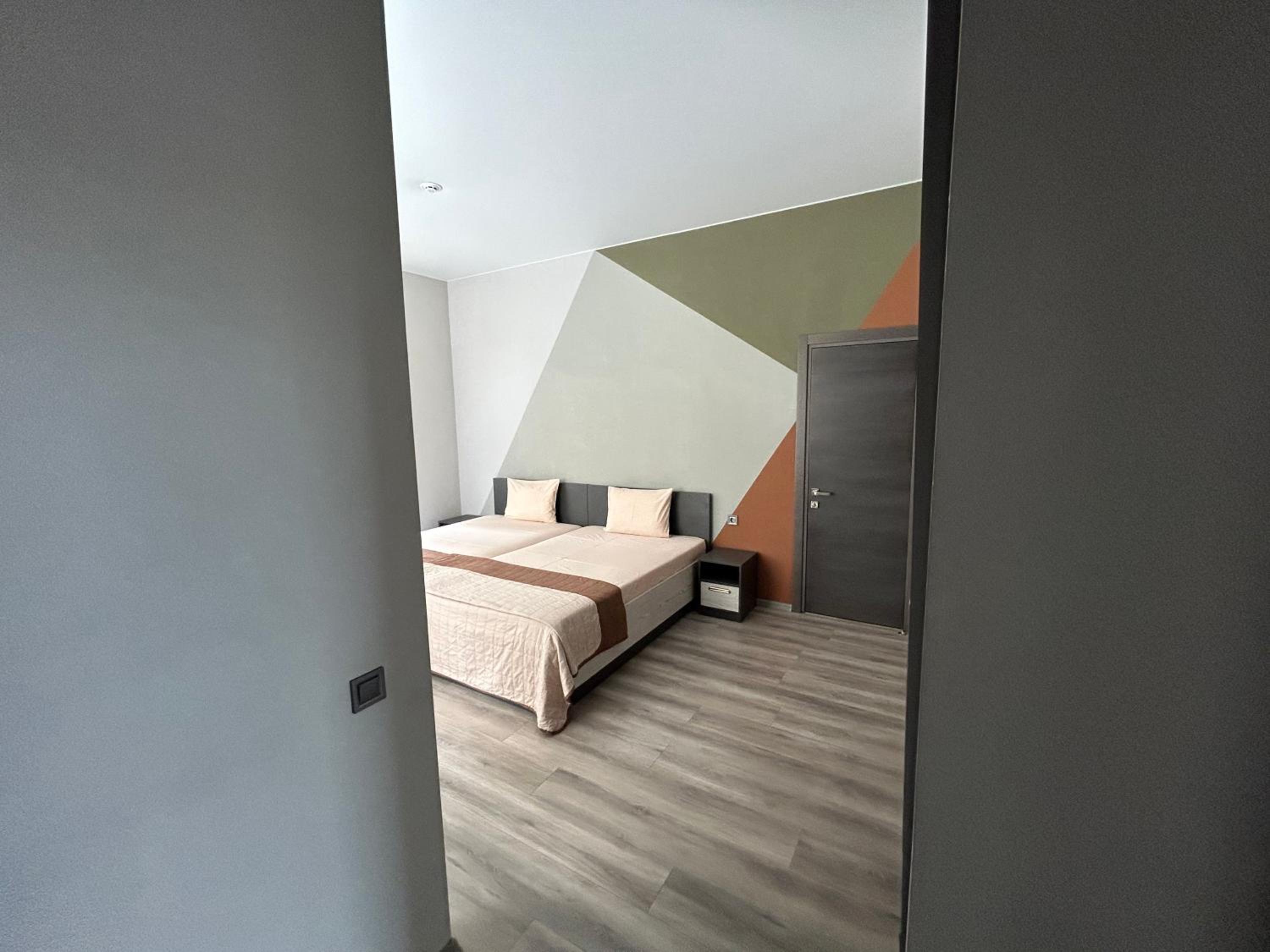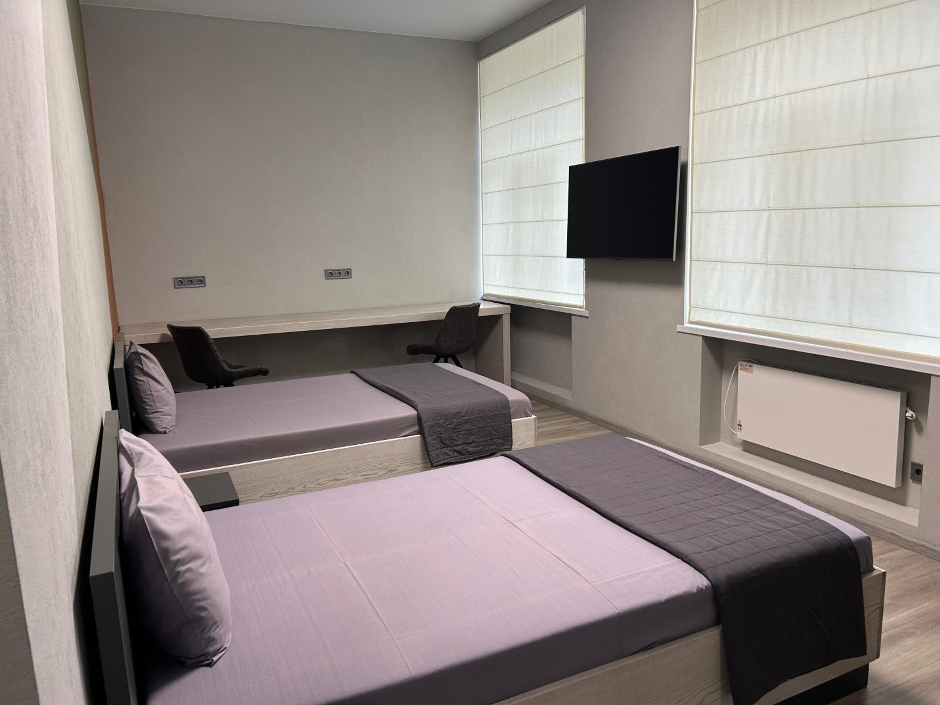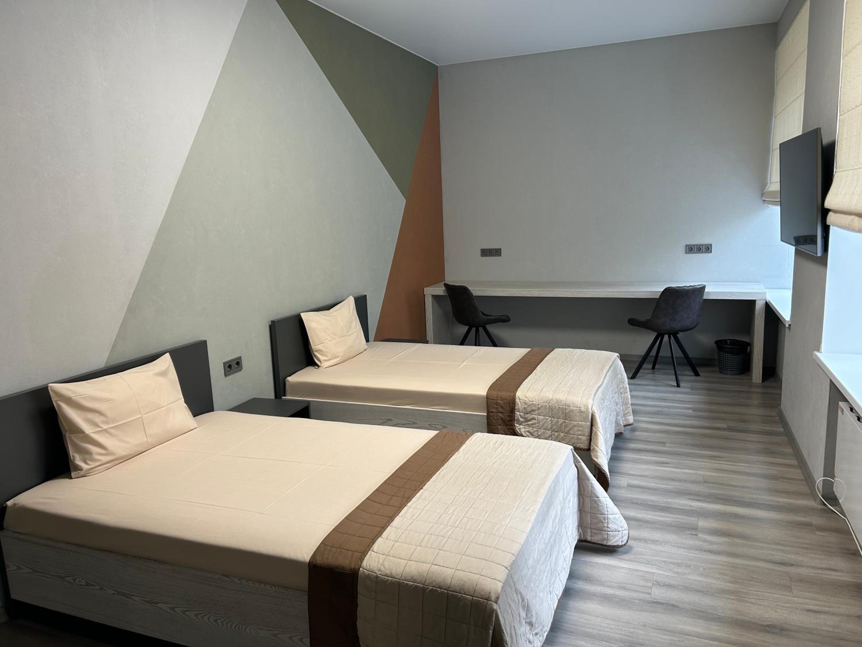 Ремонт свежий в номере, очень приличный. Две шикарные кровати приставлены, новые матрасы, большой телевизор.. Мебель тоже топ. В номере были бутылки с водой, стики кофе и чая. Длинный столик для работы. Супер!