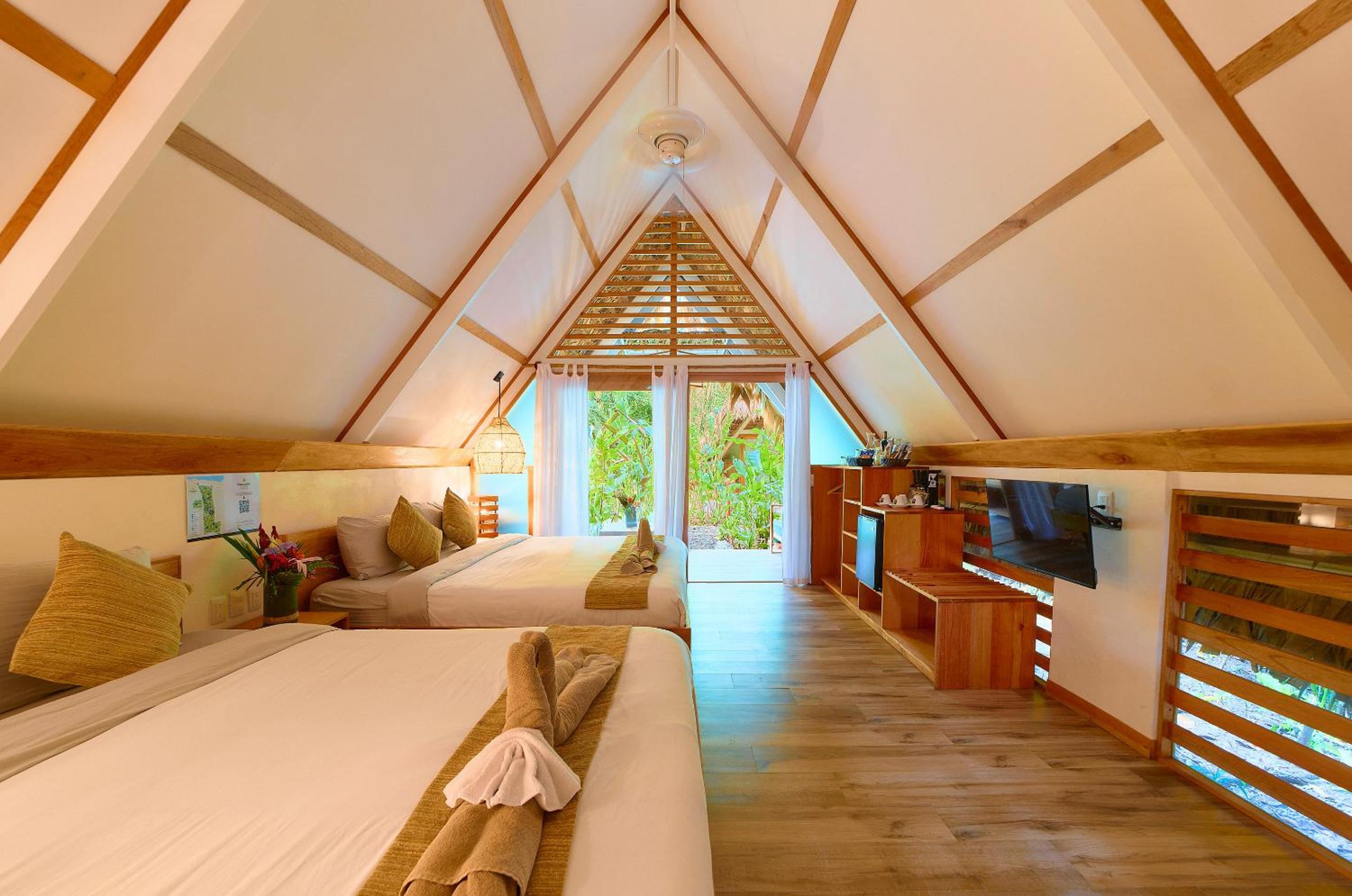 Très beau bungalow au coeur d'une végétation luxuriante. Le personnel est très agréable et disponible. Il nous a manqué un réfrigérateur. D'autre part, nous avons été déçu que nos draps ne soient pas changé alors que nous sommes restés 4 nuits (nous avions bien mis l'étiquette pour faire la chambre chaque matin).