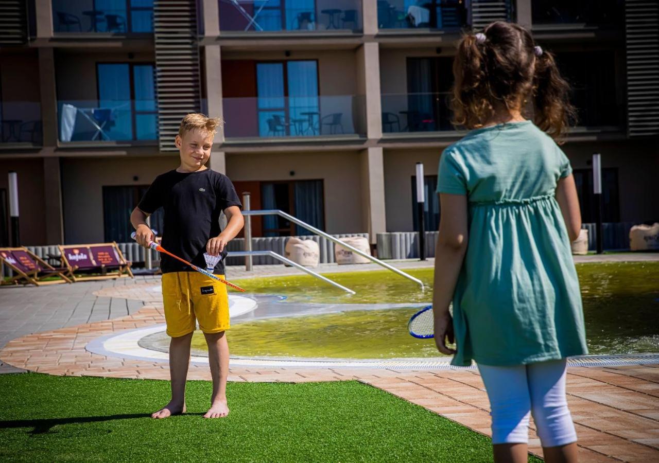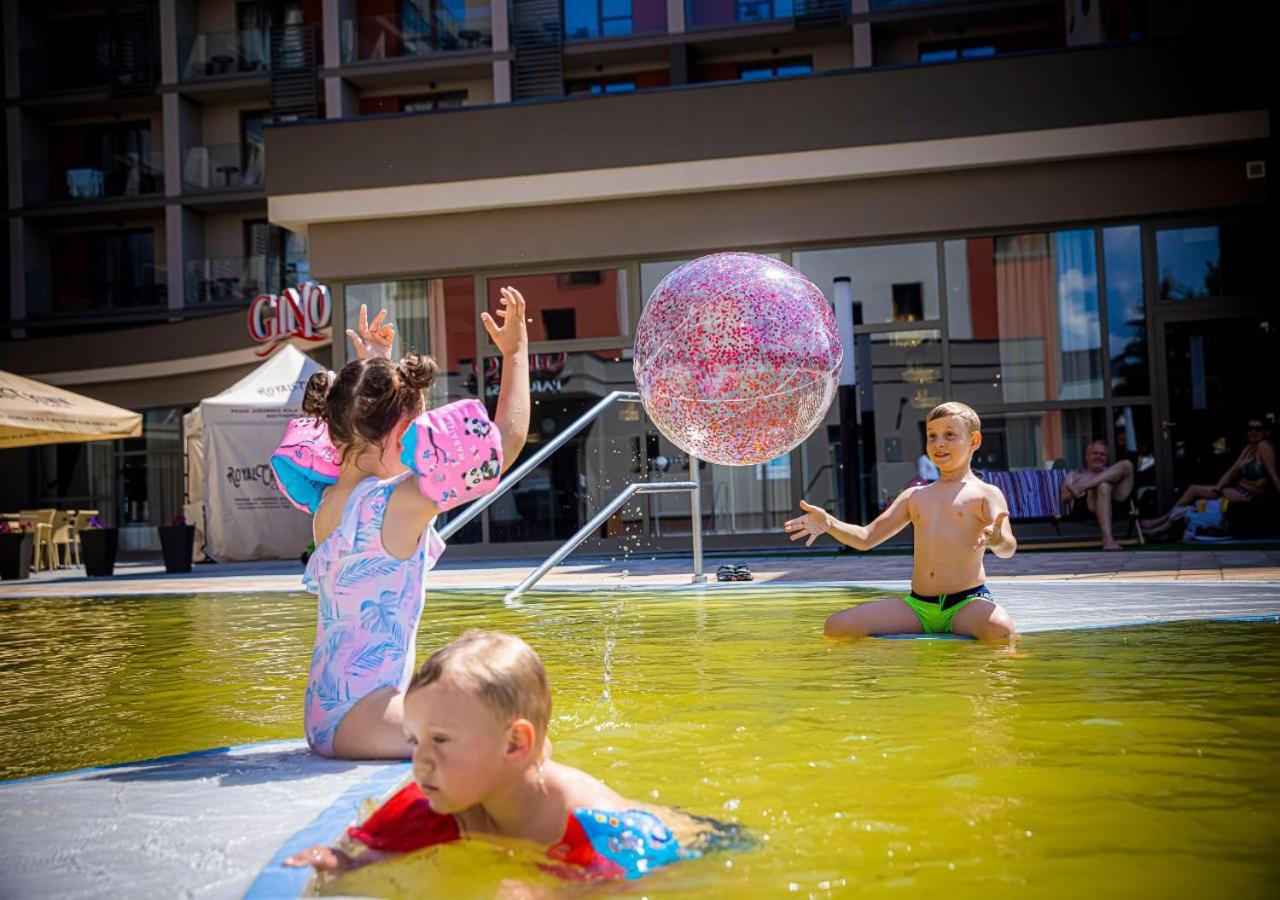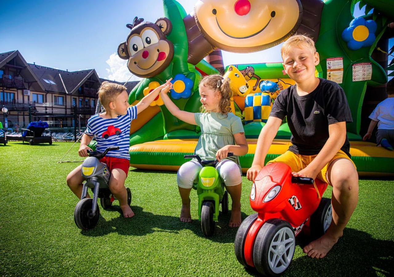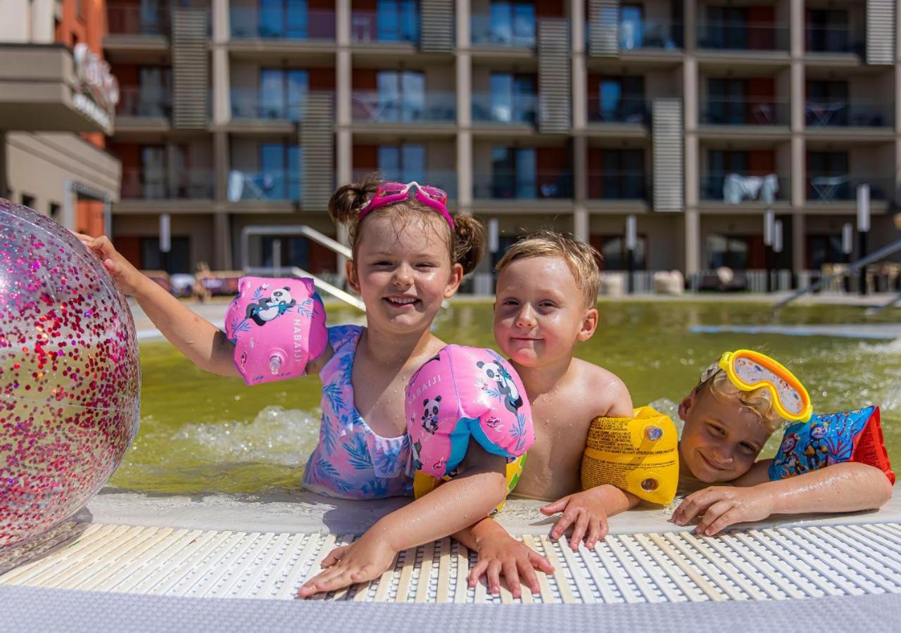 Kompleks basenów, przestronny pokój, atrakcje dla dzieci.