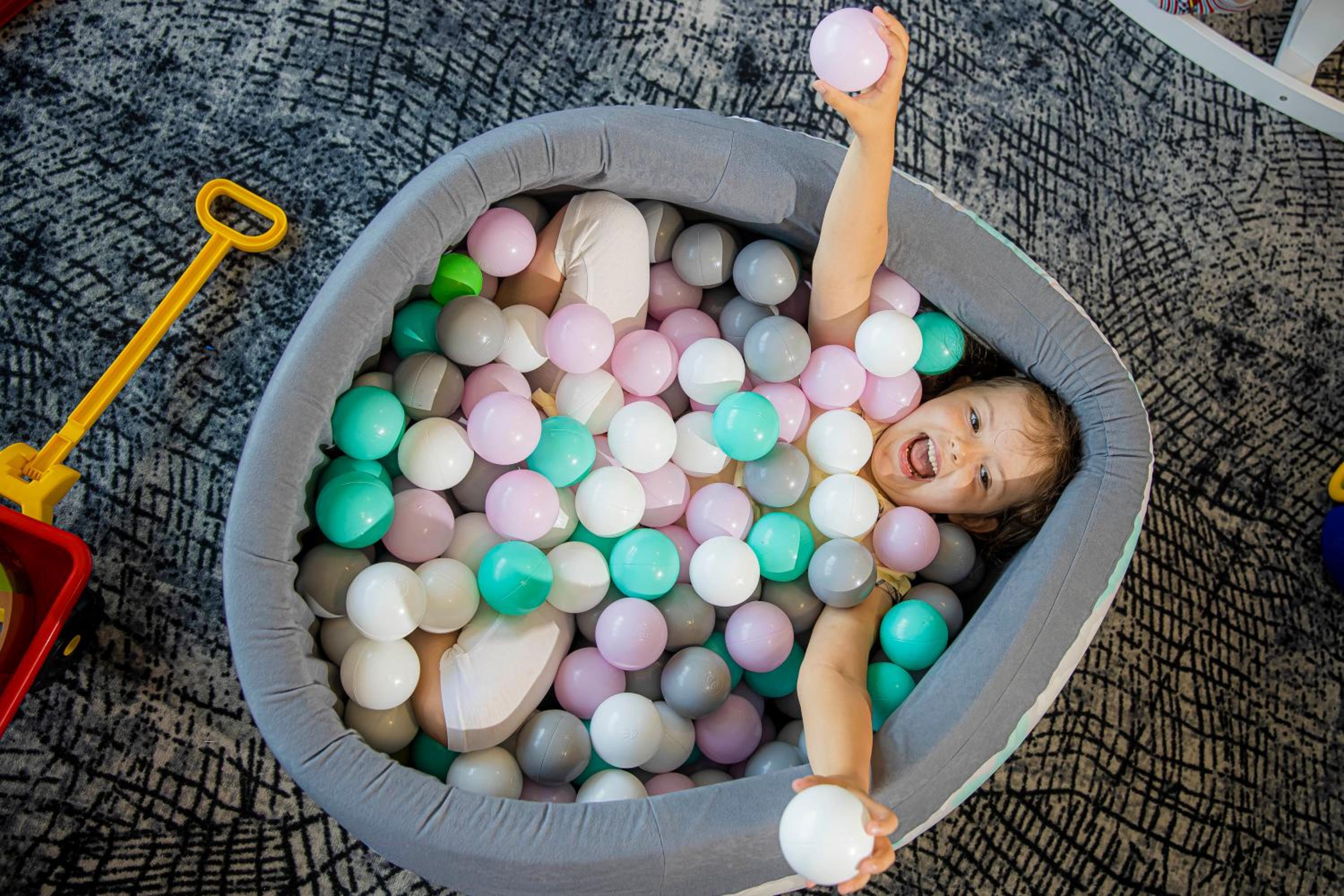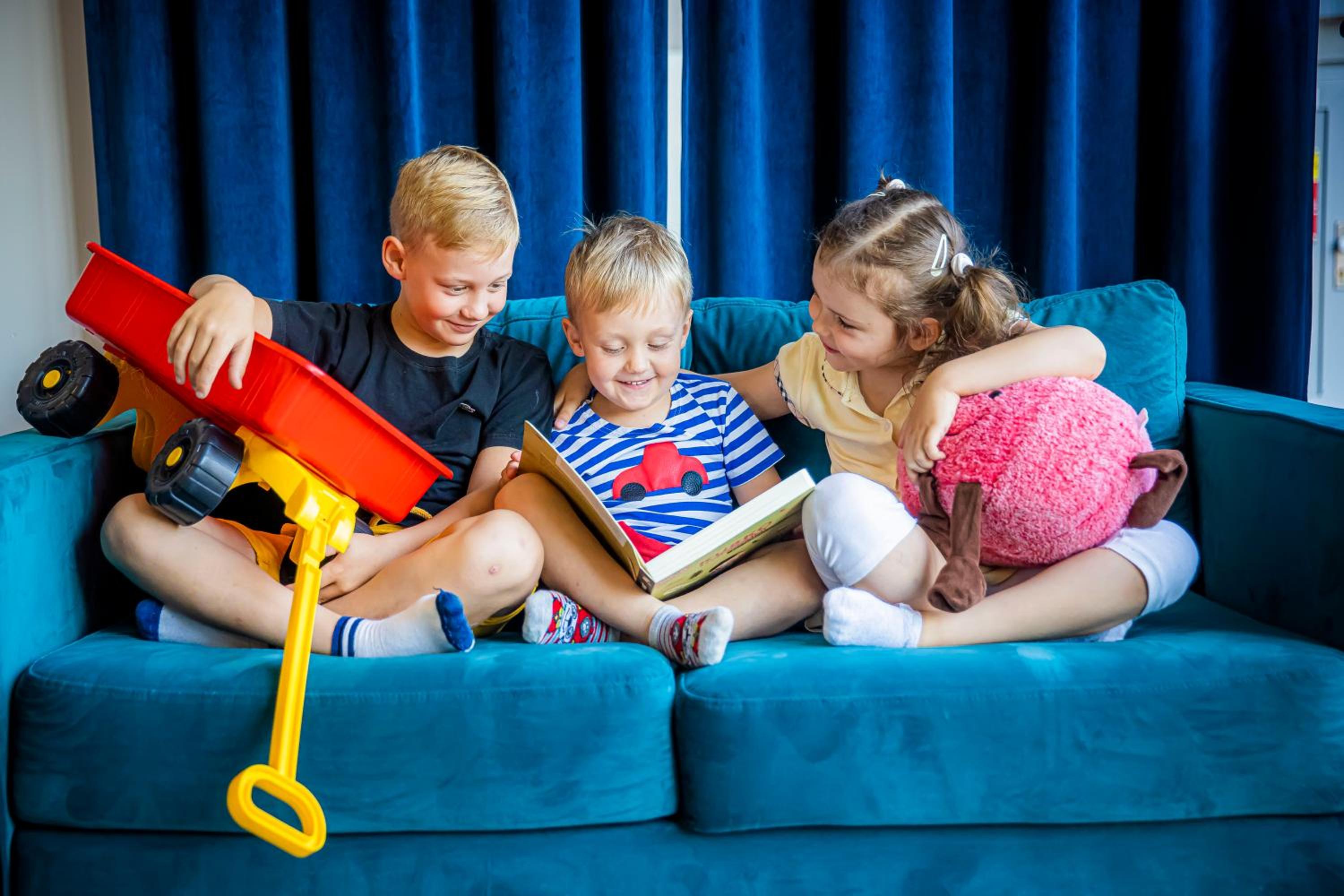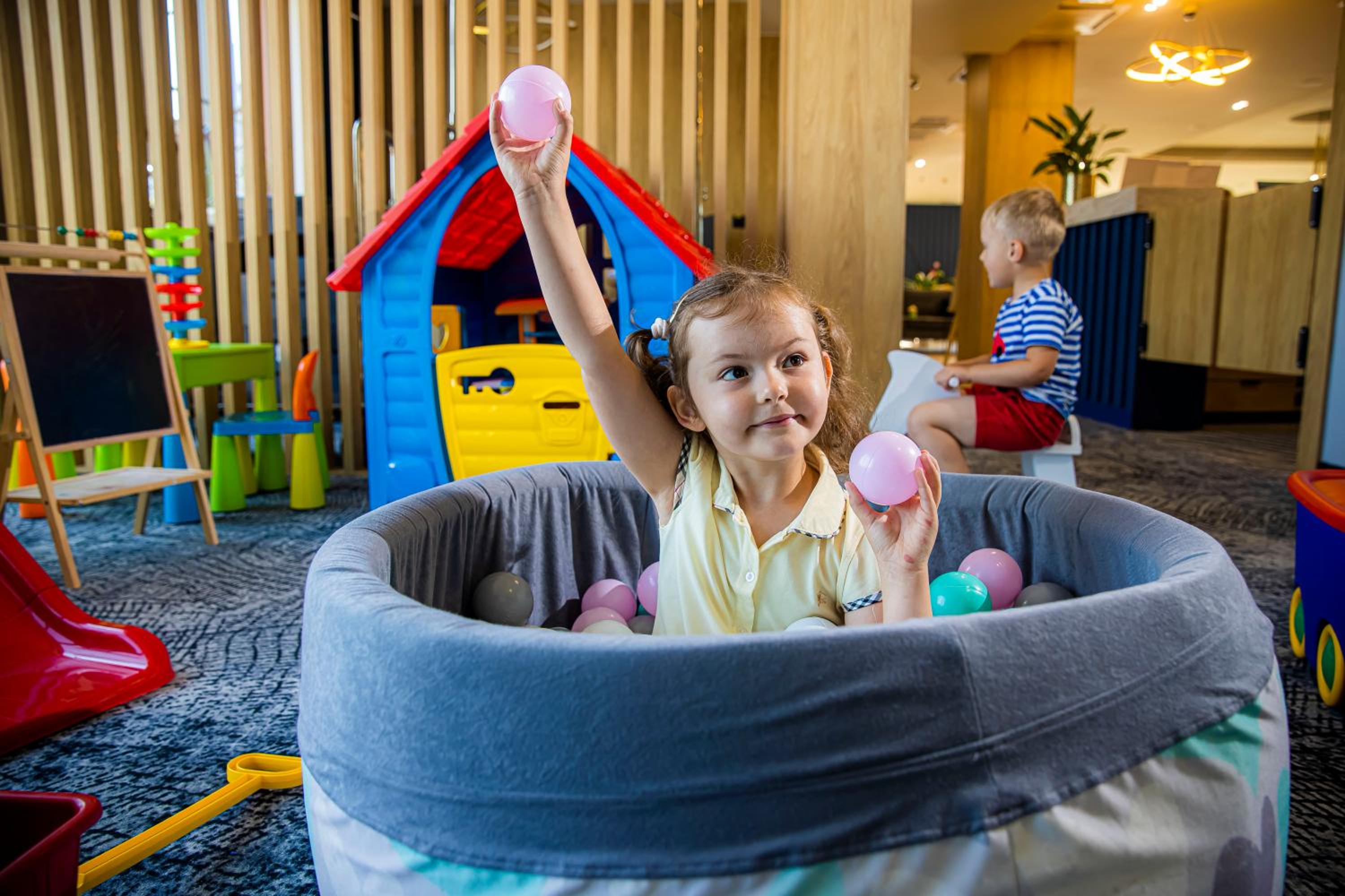 Kompleks basenów, przestronny pokój, atrakcje dla dzieci.