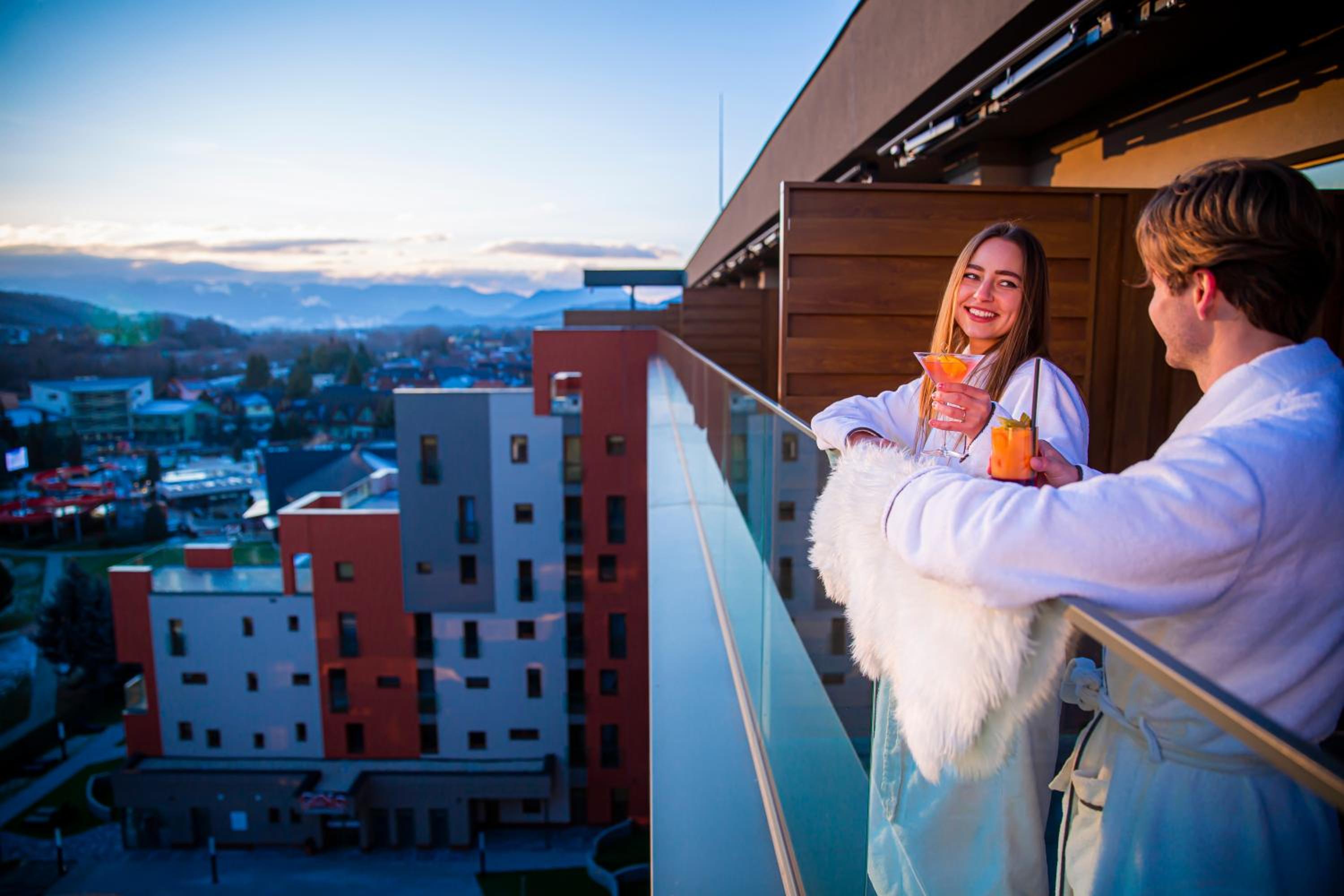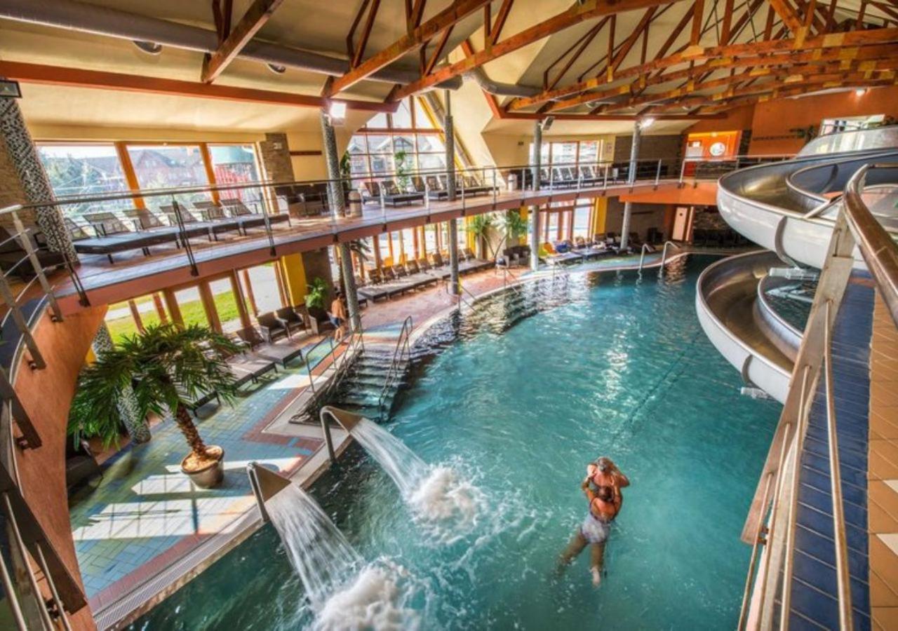 Świetne termy, park wodny, sauny. Bardzo ładny hotel, smaczne śniadania. Przystępne ceny w barach. W tej cenie topowy wybór.