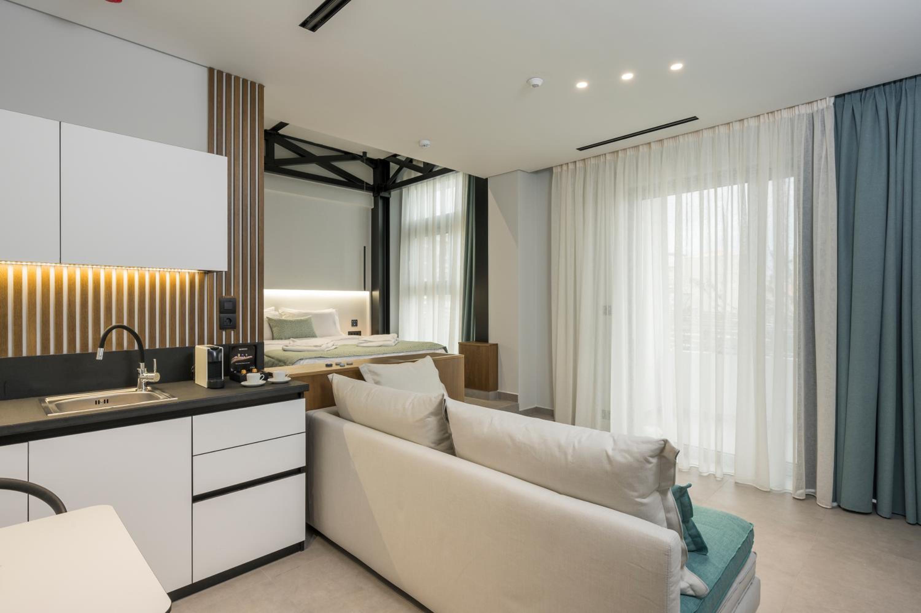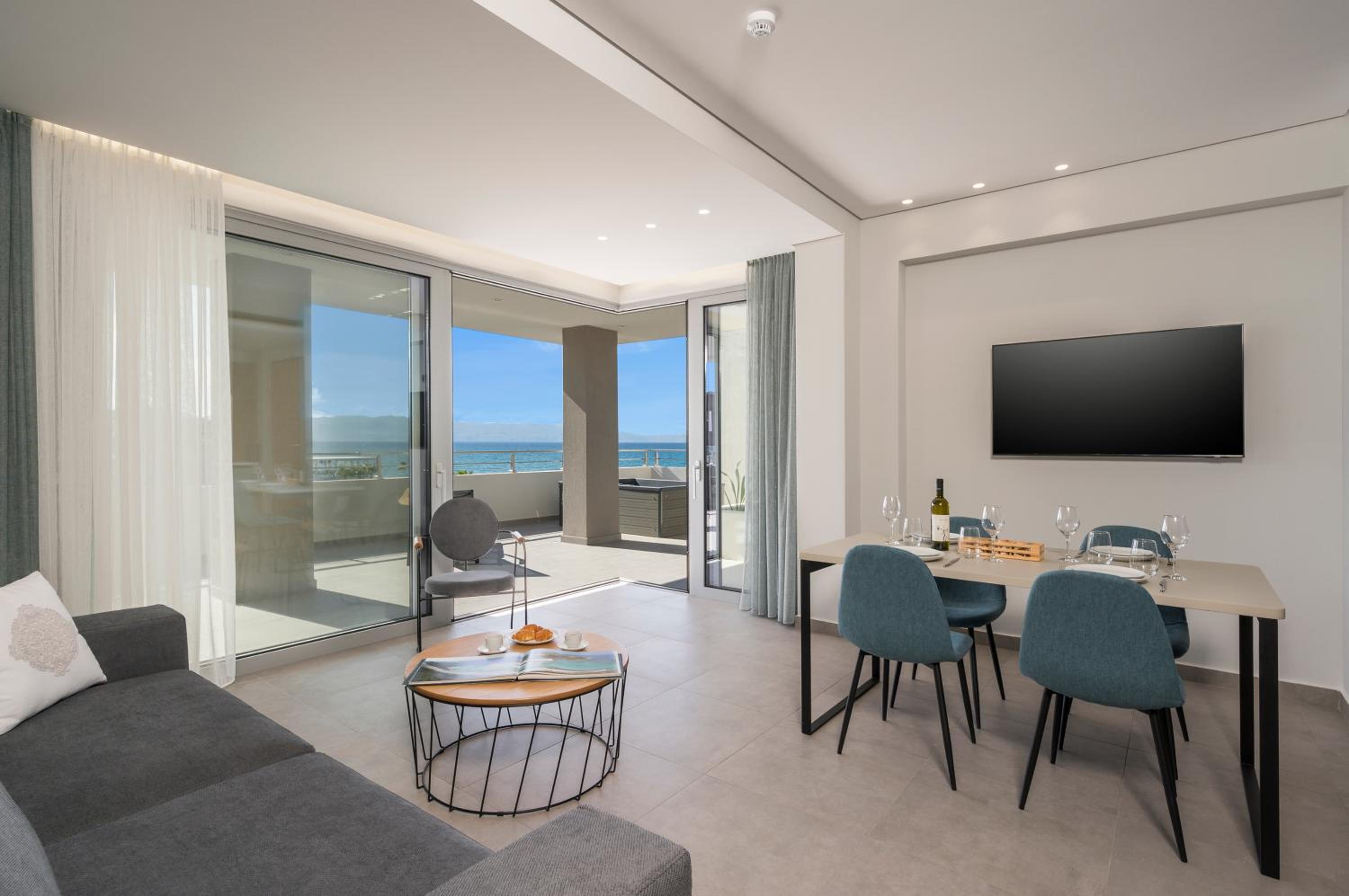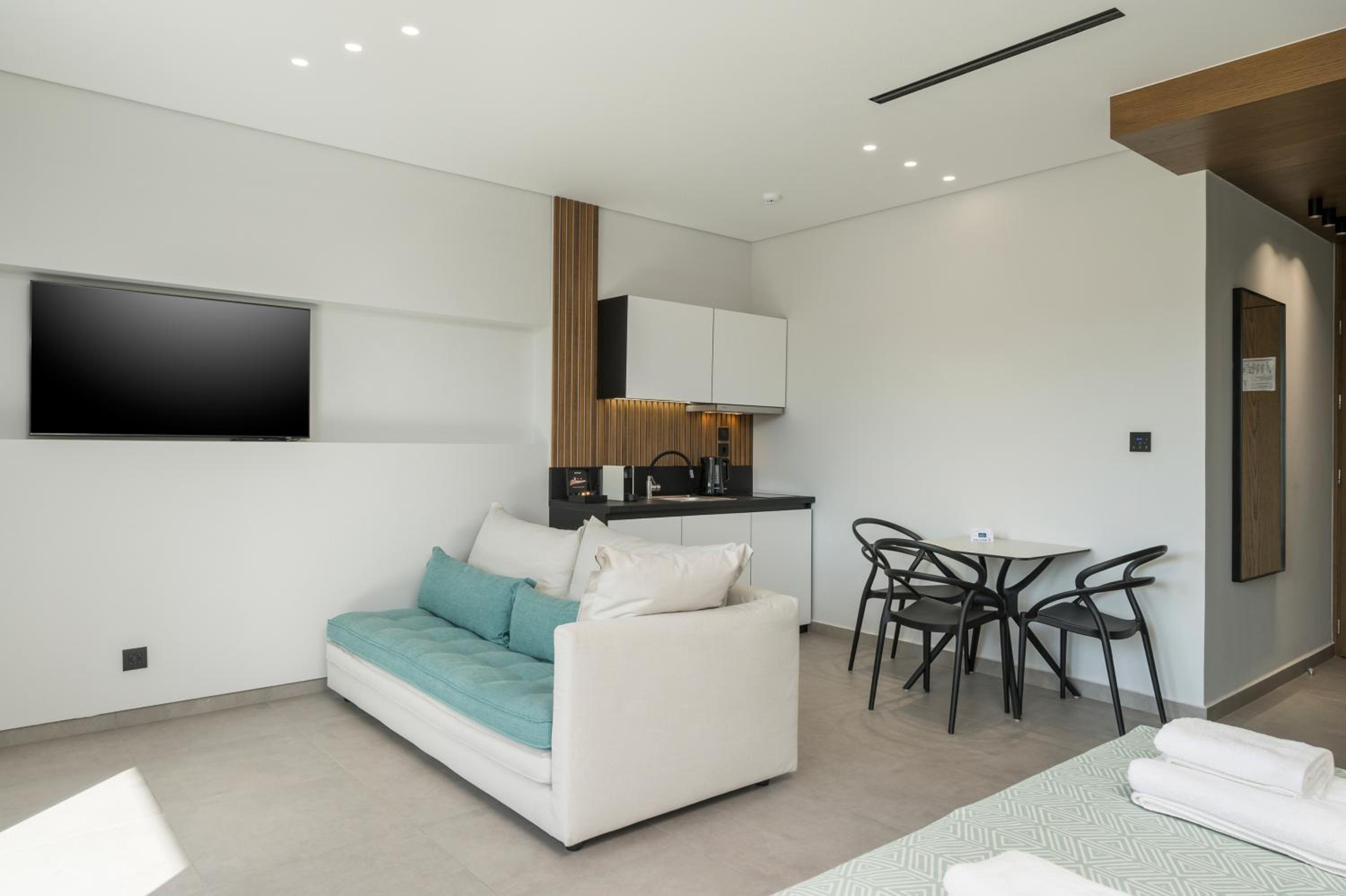 Everything was exceptional! The hotel was spotless and clearly very well maintained. The building and facilities are new and modern, and the service from the reception team was outstanding —Maria is incredible kind, always helpful and welcoming. We loved her. The owners are very nice also. Having access to free sun beds was a great bonus. The team at the restaurant was very nice also and they welcomed us every day with a smile. A perfect stay from start to finish.