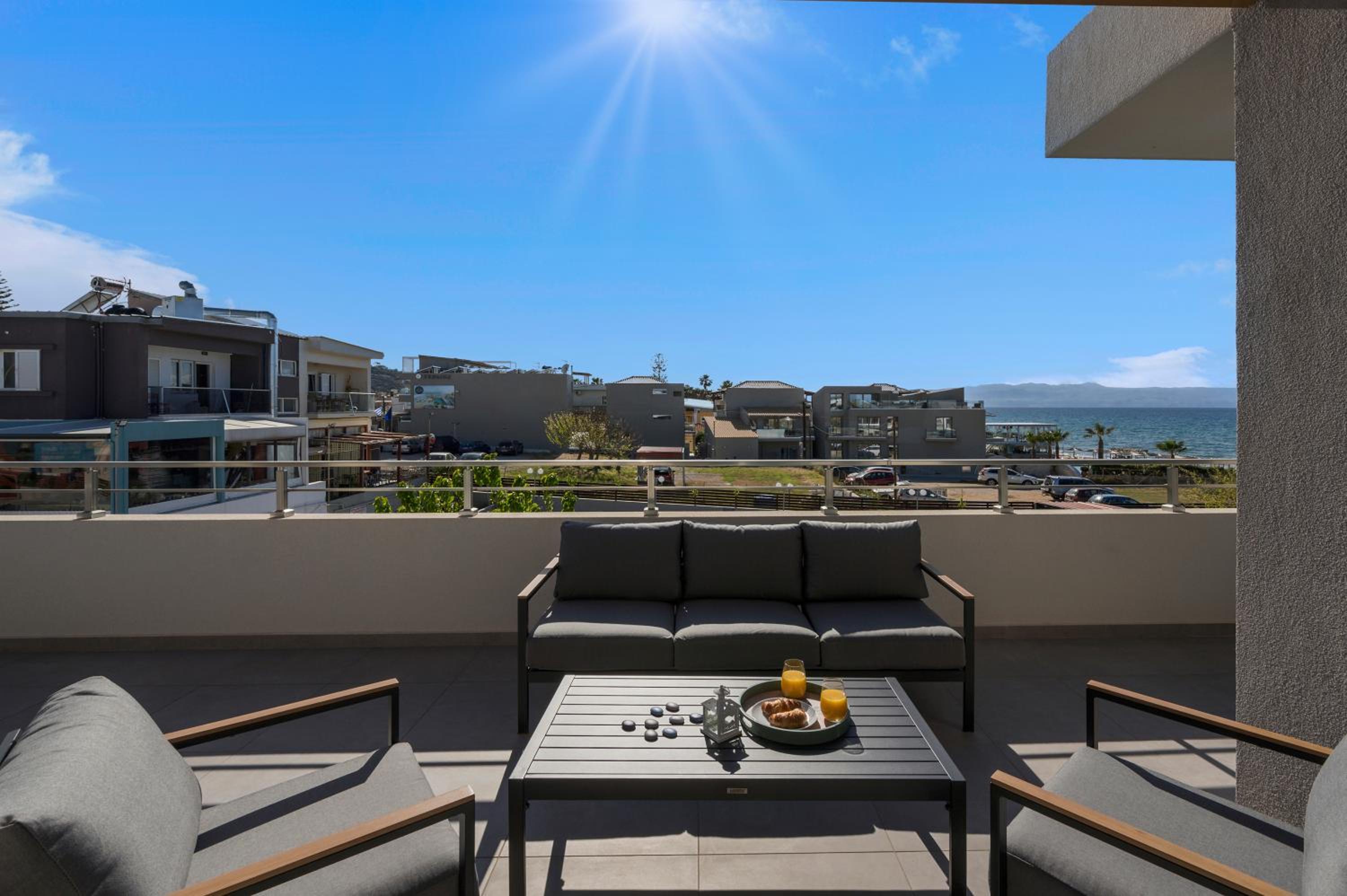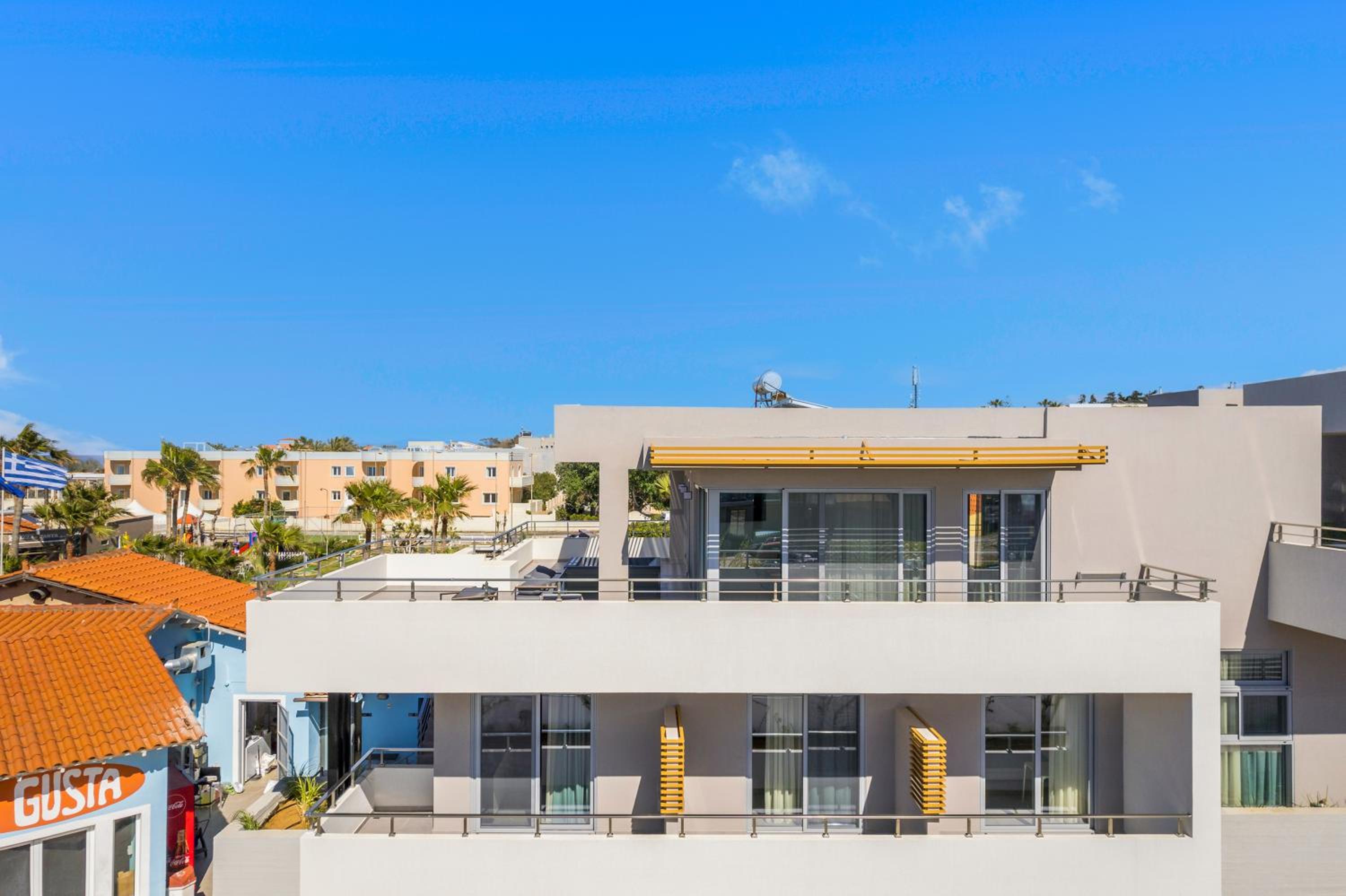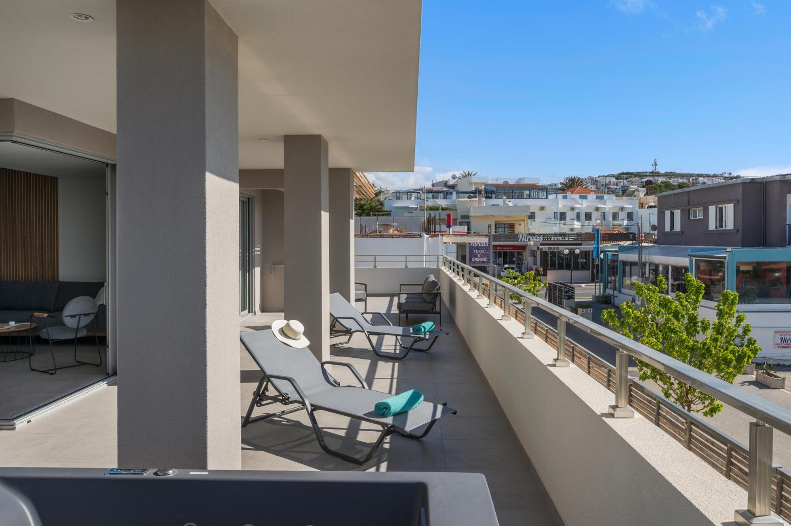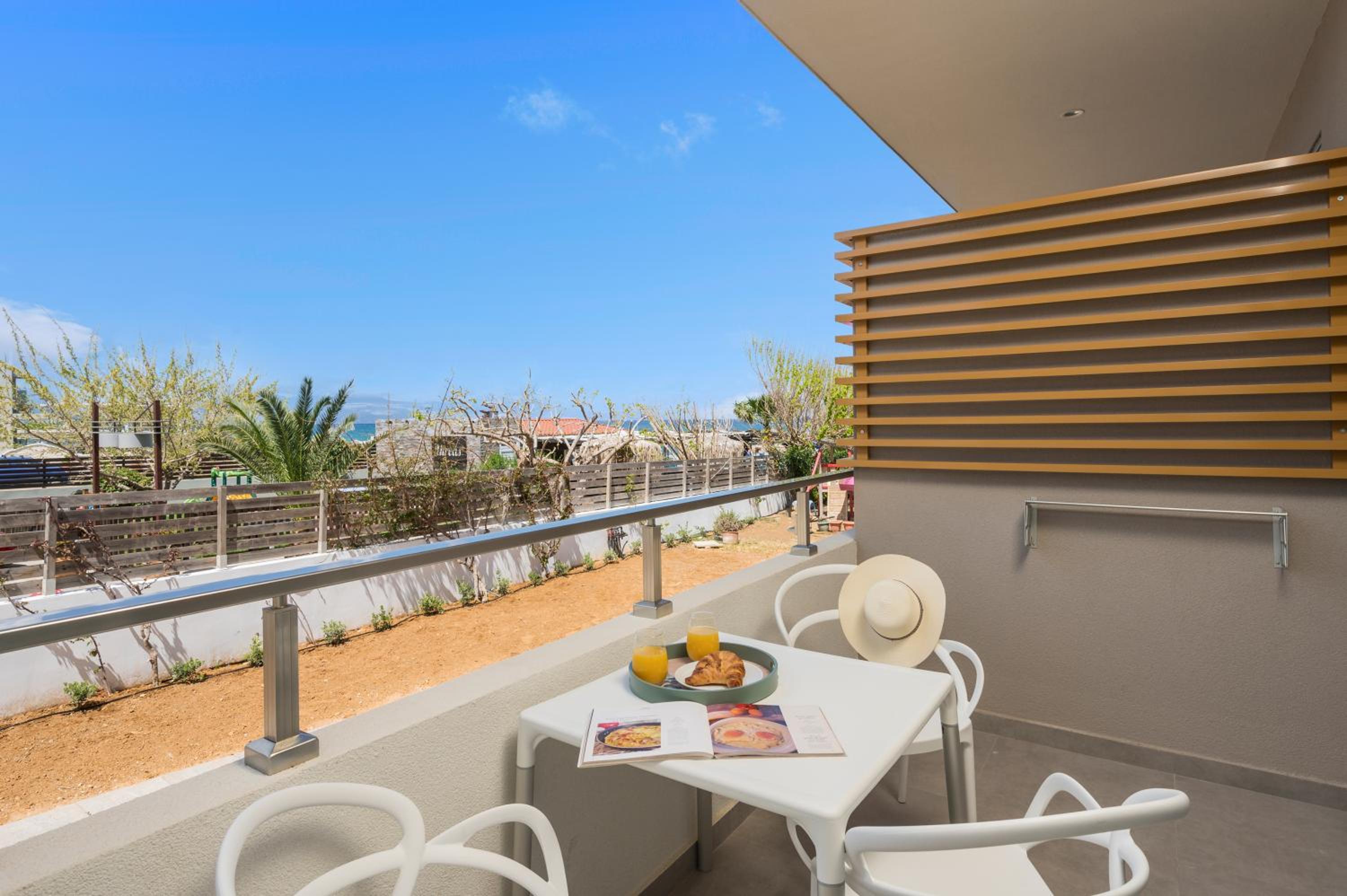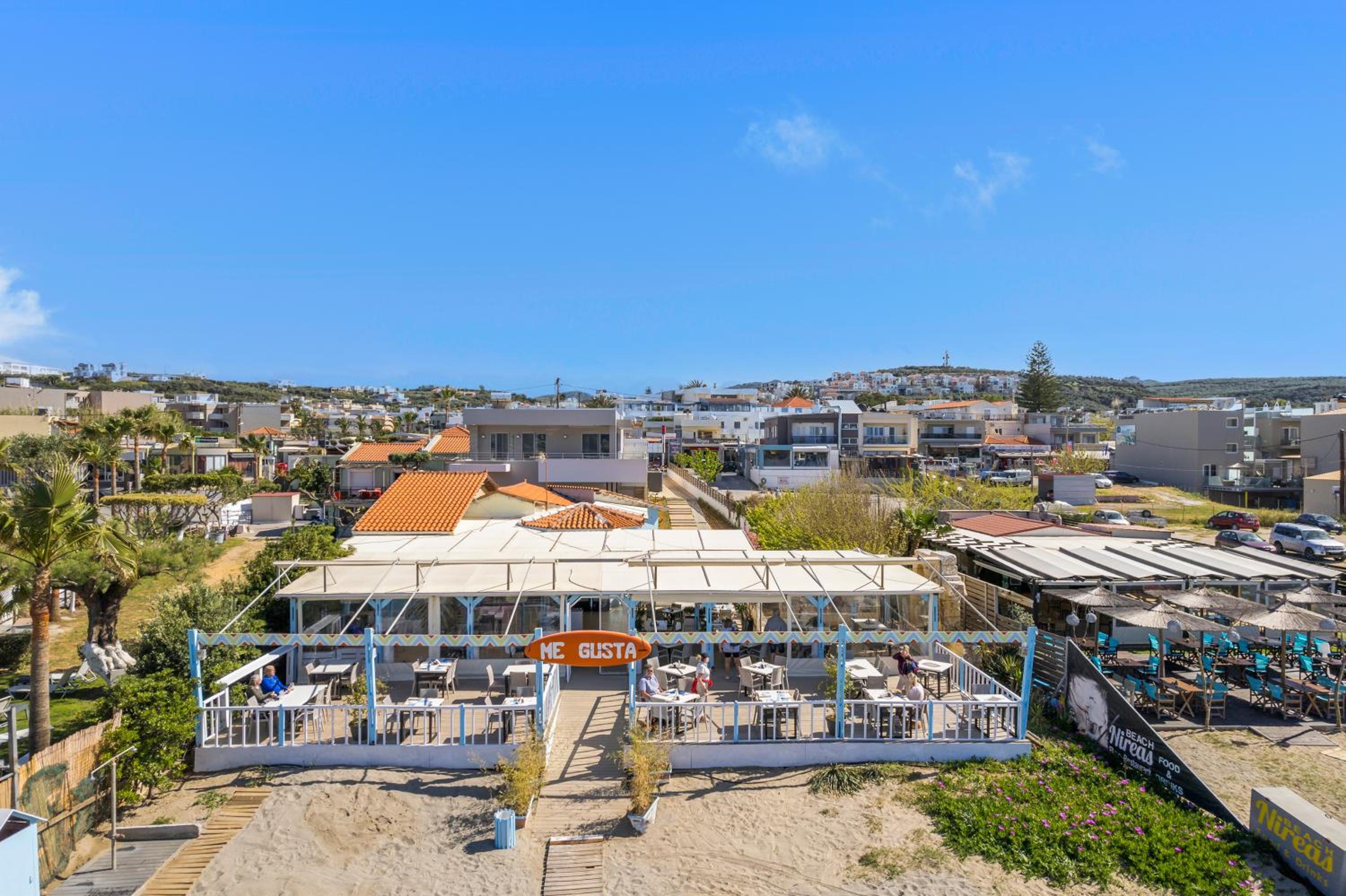 phantastisches Zimmer, wunderschöne riesige Terrasse mit Meerblick, top modern ausgestattet, Gratisliegen und Schirme vorhanden, immer frische flauschige Handtücher zur Verfügung, sehr sauber, Lage direkt am Strand, Personal extrem freundlich und hilfsbereit sowohl in der Unterkunft als auch im dazugehörigen Restaurant Me Gusta. Fußläufig viele gute Restaurants und Bars erreichbar sowie Geschäfte und Supermärkte. Busstation z. B. nach Chania direkt gegenüber.