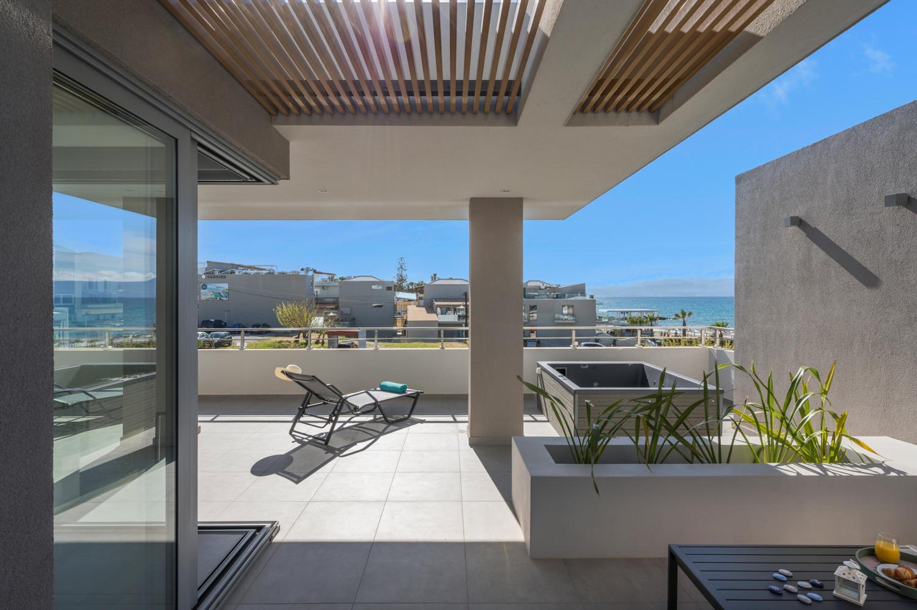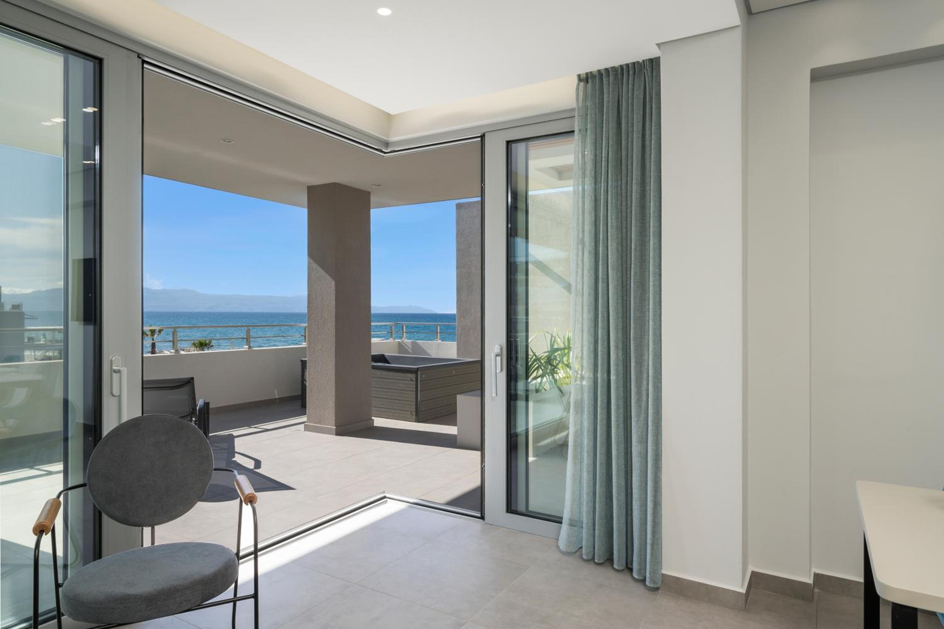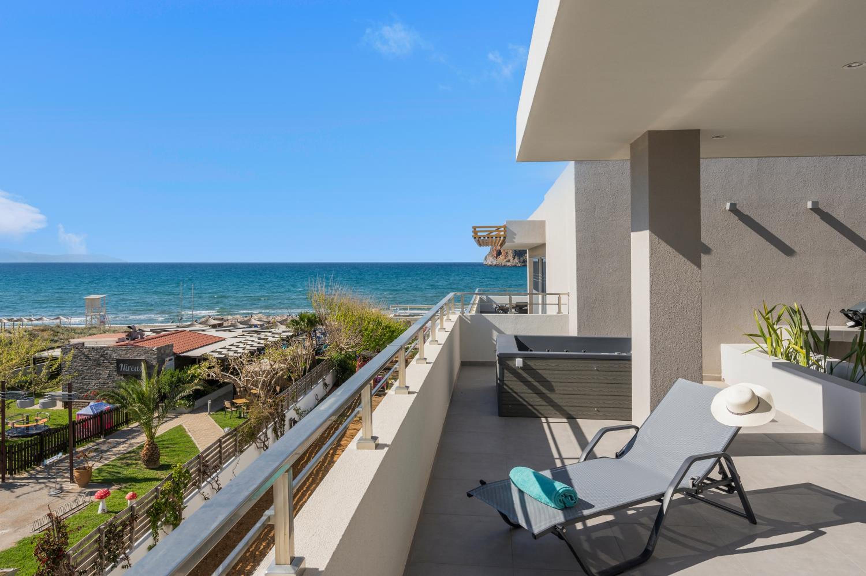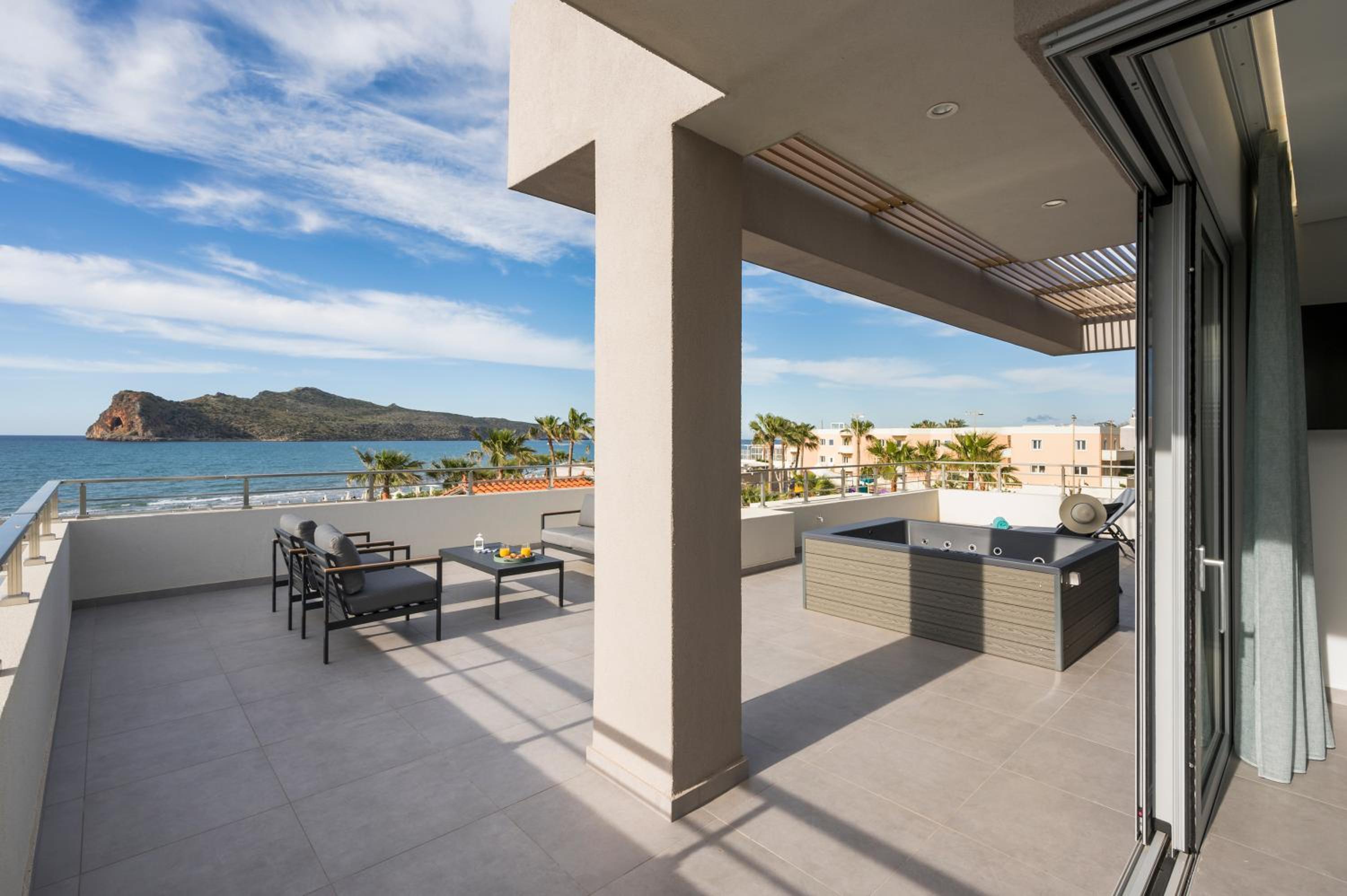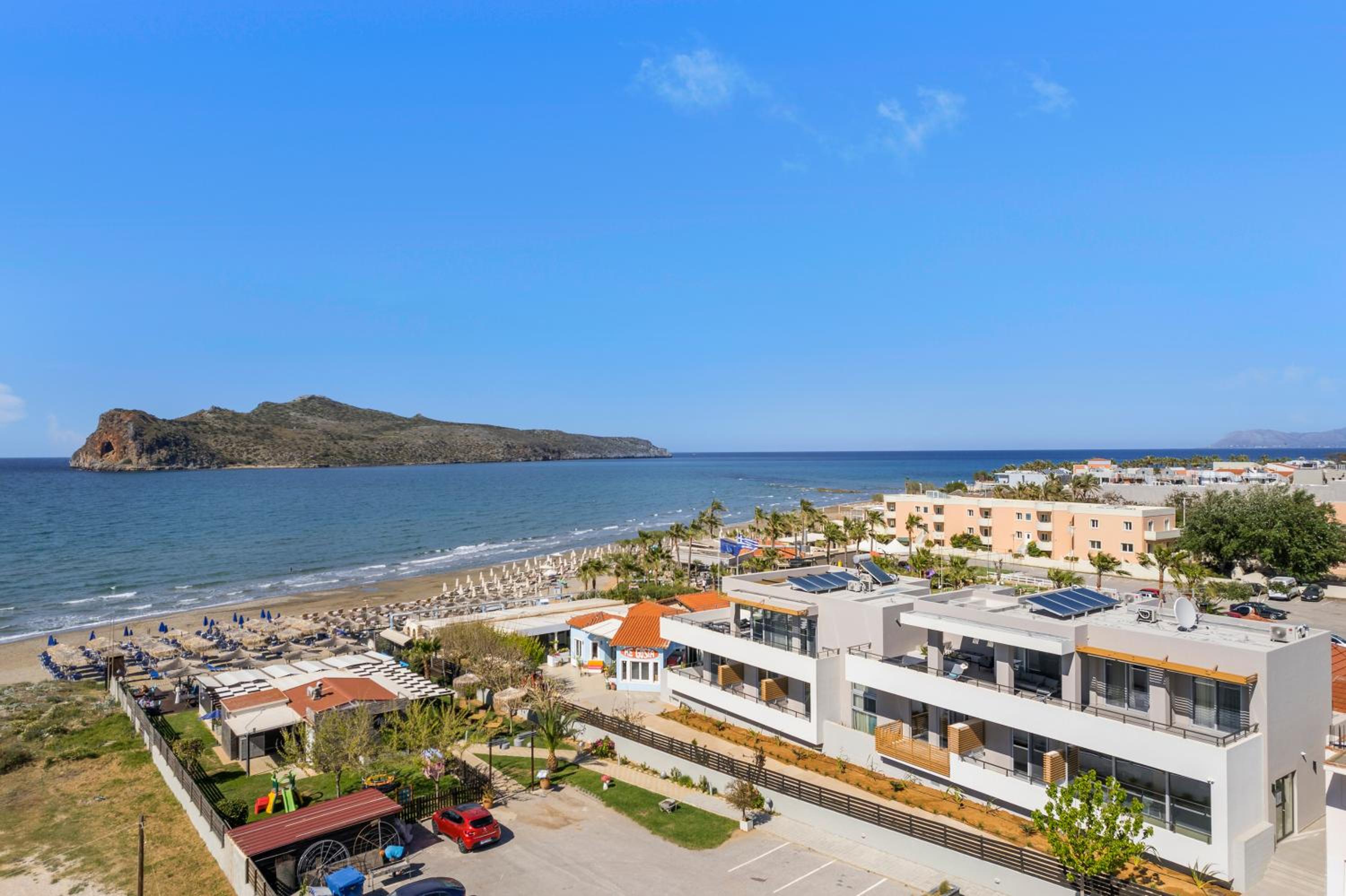 phantastisches Zimmer, wunderschöne riesige Terrasse mit Meerblick, top modern ausgestattet, Gratisliegen und Schirme vorhanden, immer frische flauschige Handtücher zur Verfügung, sehr sauber, Lage direkt am Strand, Personal extrem freundlich und hilfsbereit sowohl in der Unterkunft als auch im dazugehörigen Restaurant Me Gusta. Fußläufig viele gute Restaurants und Bars erreichbar sowie Geschäfte und Supermärkte. Busstation z. B. nach Chania direkt gegenüber.