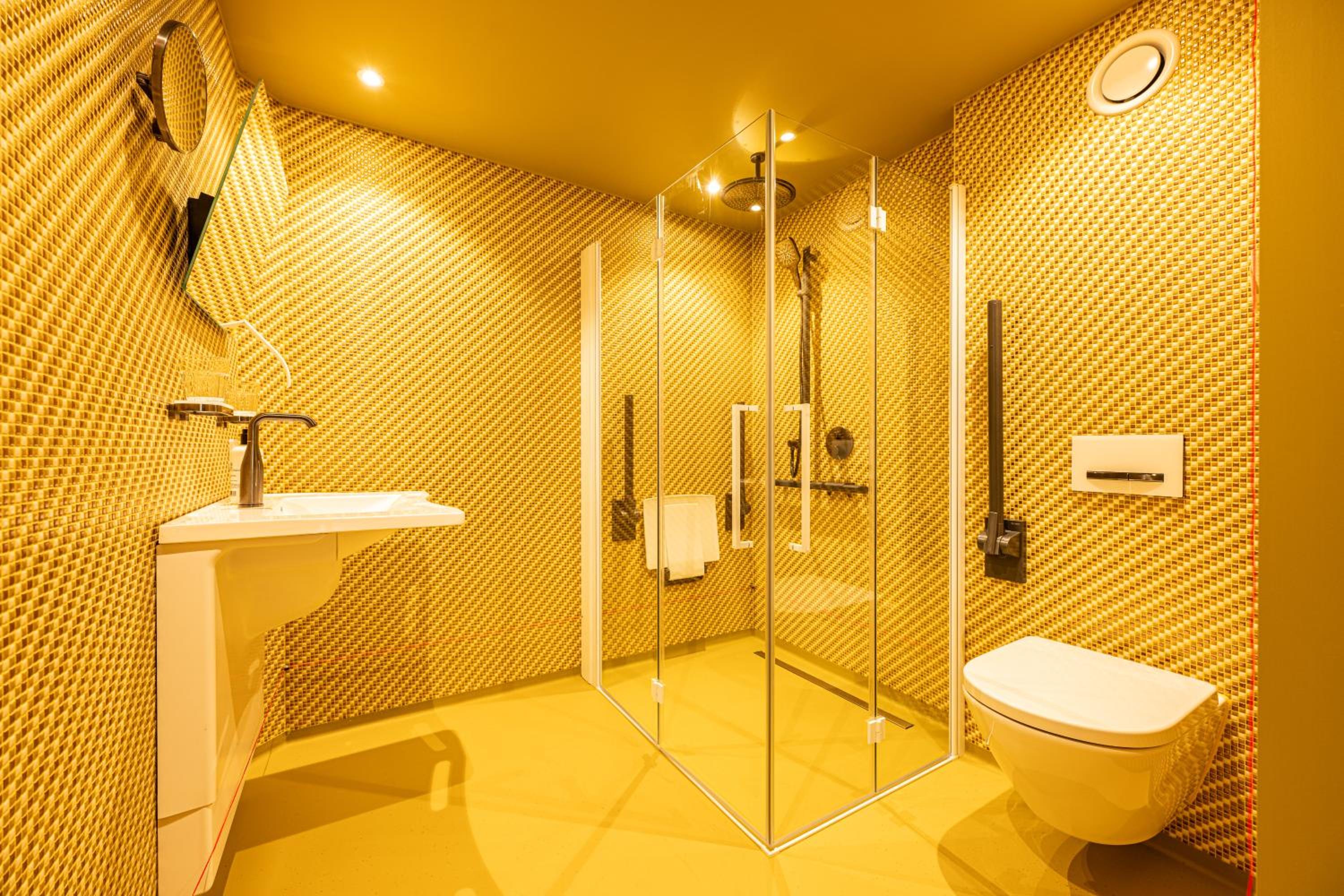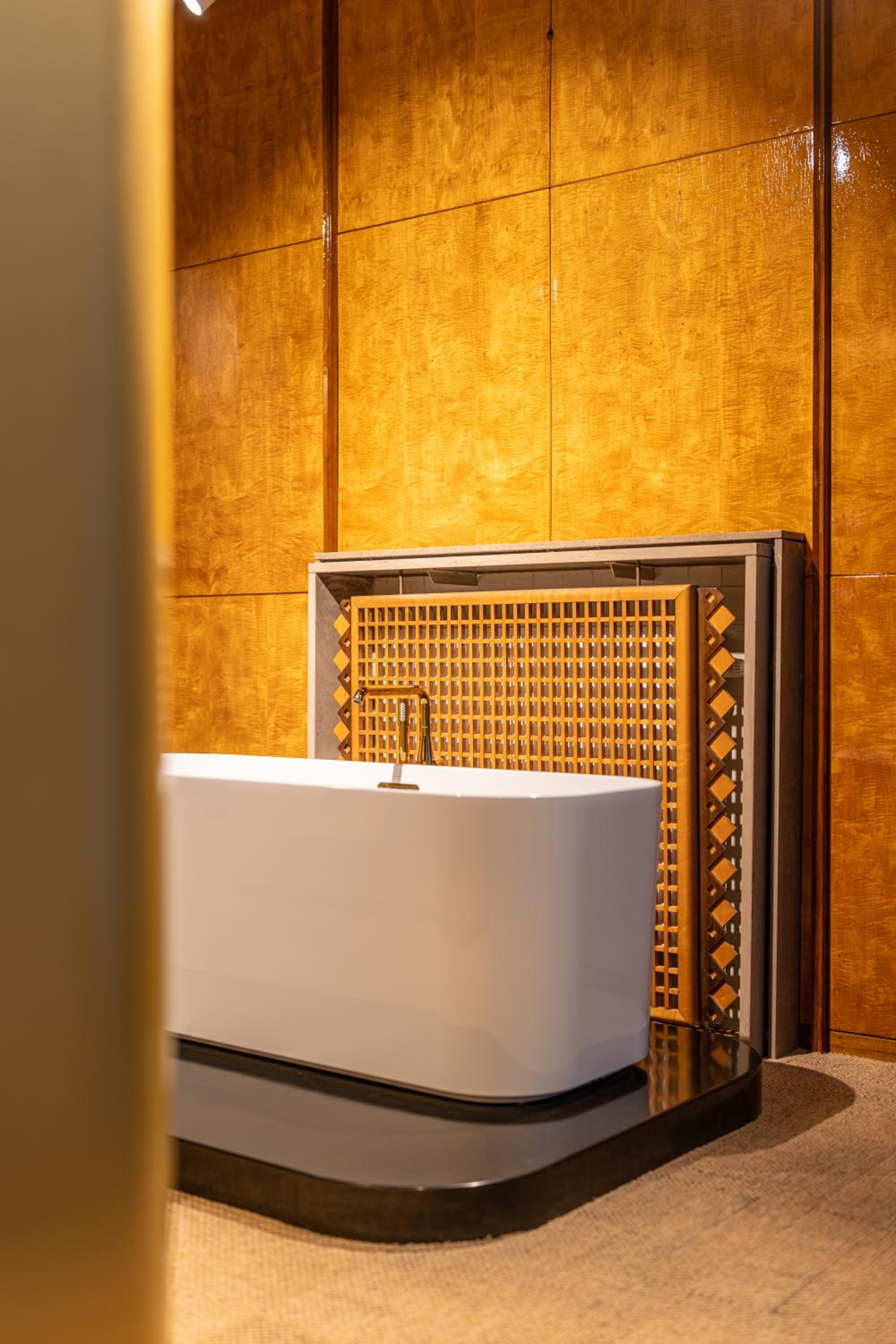 the room was amazing! Love the details of the automatic curtains and the tv + the bath tub