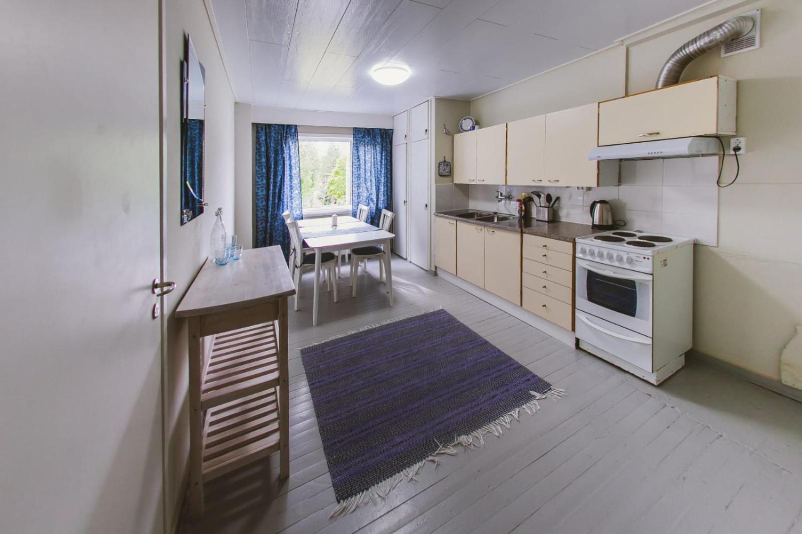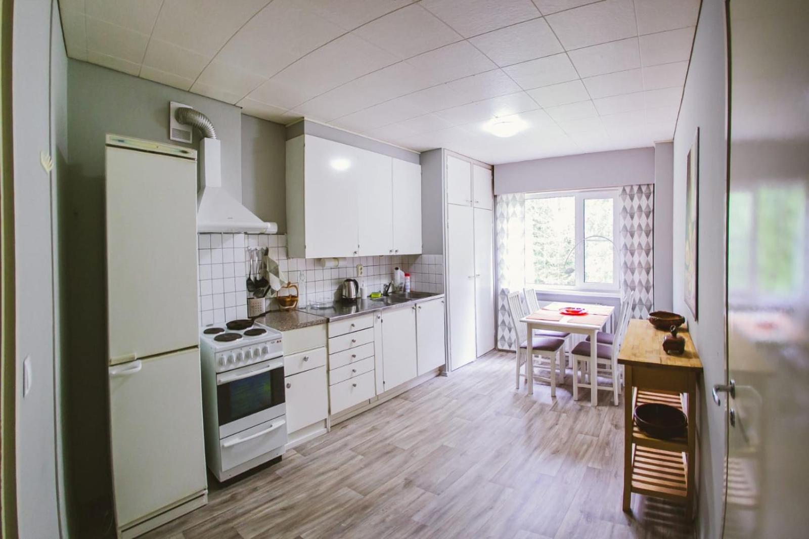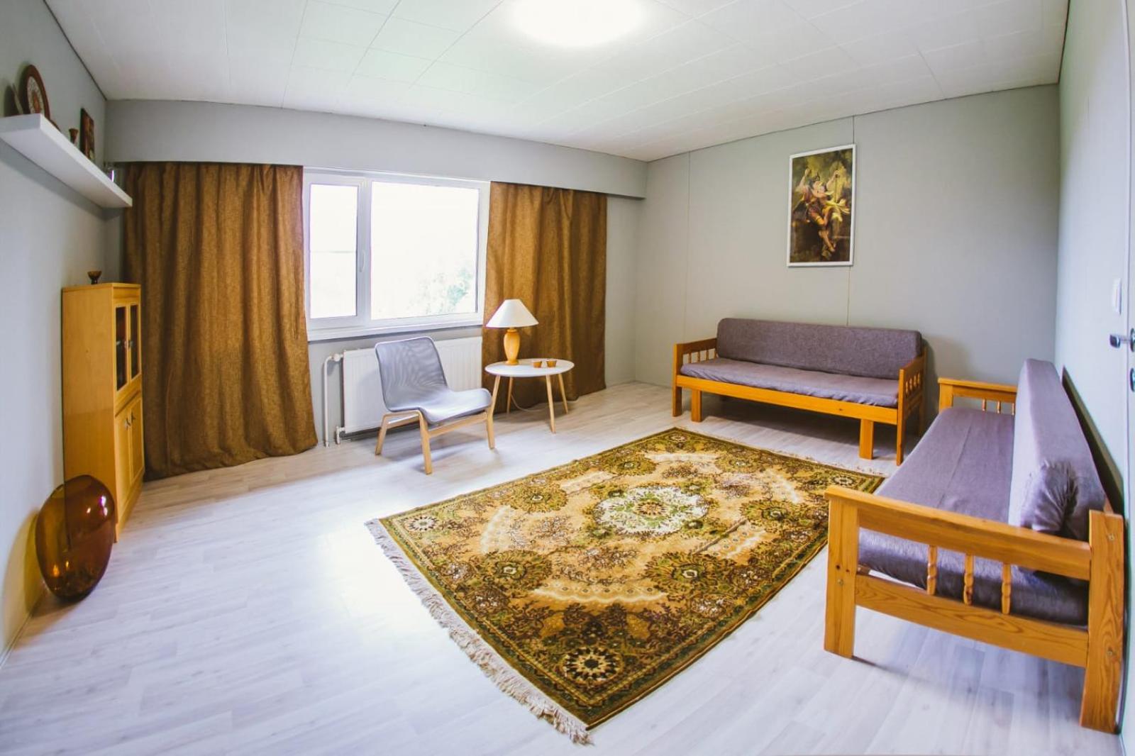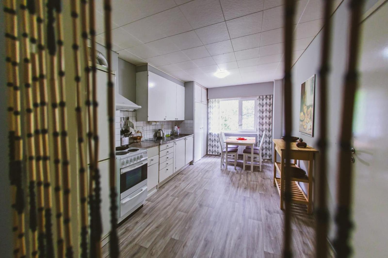 The description of the advertisement was not correct. They said there would be a kitchen in the apartment, yes, it was a common kitchen. Dishes were unclean. No hot water in the kitchen. The whole building was without heating. OK, we got it after the first night for our room, but not for the kitchen. It was freezing to eat there. The handle of the door of our room was broken. There was a key, but closing the door was frightening, because if the handle fell down, it would be almost impossible to open the door from inside. They said there would be two saunas in the building, yes, at least one could be found, but it was not in the condition to be heated, only five little woods inside, and nobody to help to heat it. Actually the owner was somewhere else. The hotel room was messy, no beds ready made for visitors, pebbles on the floor, no bedsheet on the bed, big towels hanging in a messy way in the bathroom, so that we couldn't know if they were even clean.