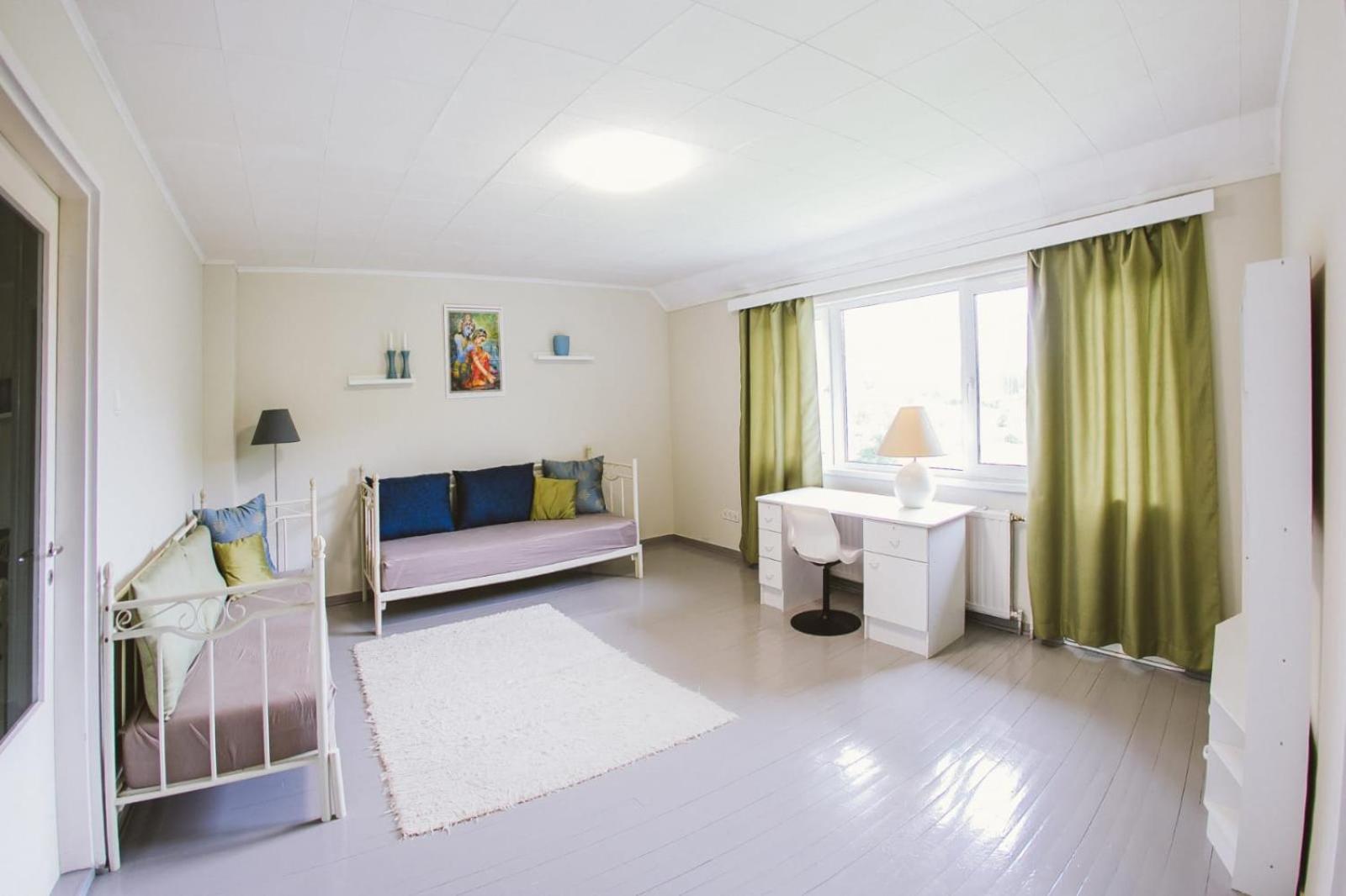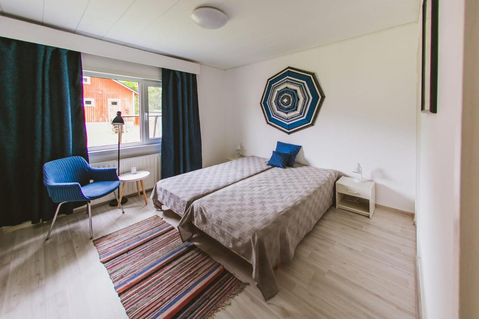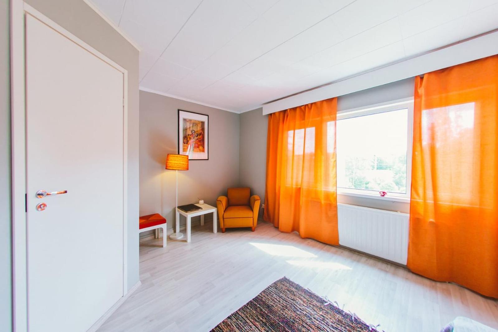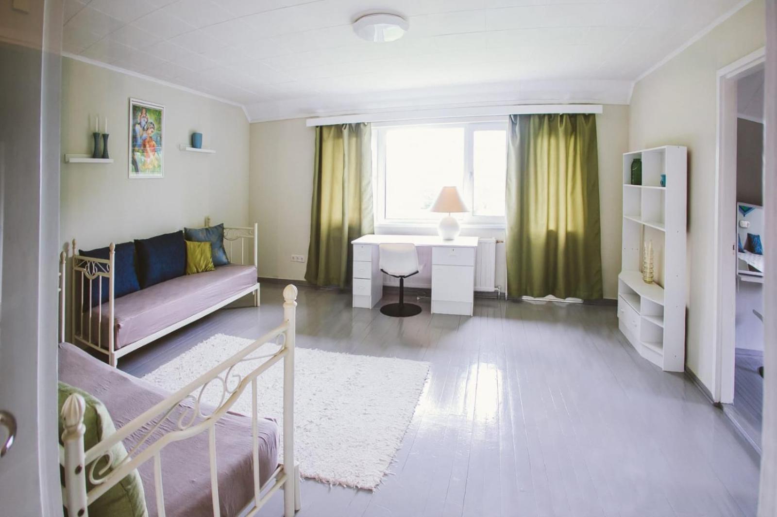 The description of the advertisement was not correct. They said there would be a kitchen in the apartment, yes, it was a common kitchen. Dishes were unclean. No hot water in the kitchen. The whole building was without heating. OK, we got it after the first night for our room, but not for the kitchen. It was freezing to eat there. The handle of the door of our room was broken. There was a key, but closing the door was frightening, because if the handle fell down, it would be almost impossible to open the door from inside. They said there would be two saunas in the building, yes, at least one could be found, but it was not in the condition to be heated, only five little woods inside, and nobody to help to heat it. Actually the owner was somewhere else. The hotel room was messy, no beds ready made for visitors, pebbles on the floor, no bedsheet on the bed, big towels hanging in a messy way in the bathroom, so that we couldn't know if they were even clean.