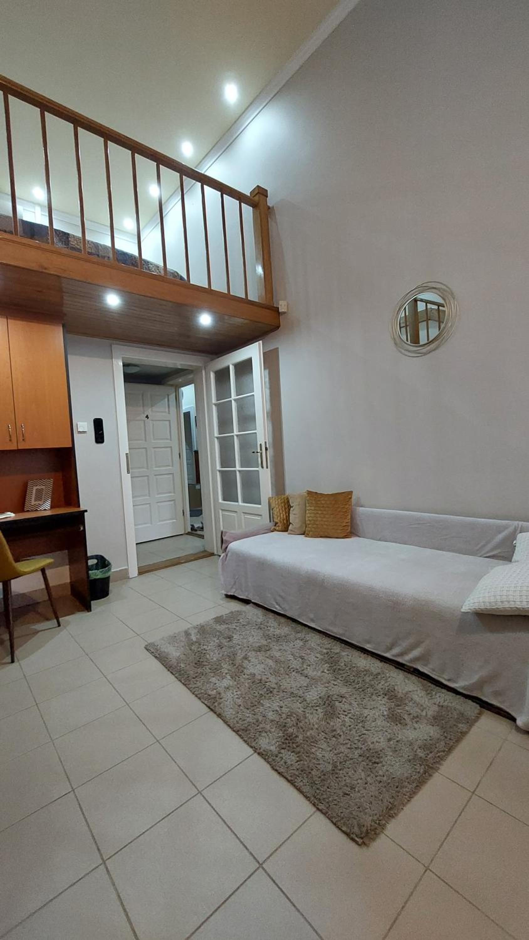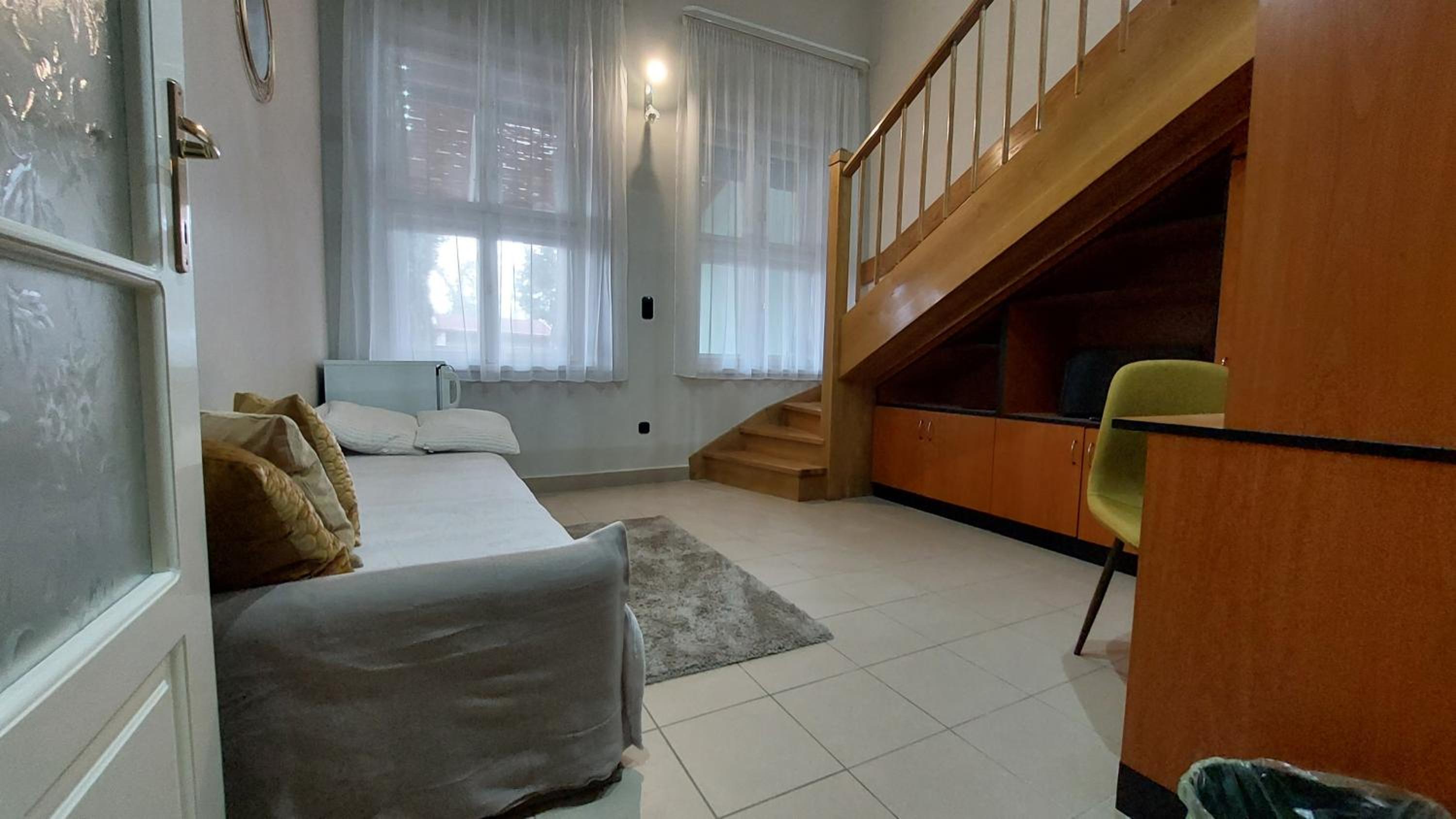 The staircase, the bed and the room are noisy. There is a busy road front of the apartment and the windows are old and are not insulated. Therefore it is noisy late in the evening and from early morning. The bed is squeaking when you turn on it, very unpleasant at night.