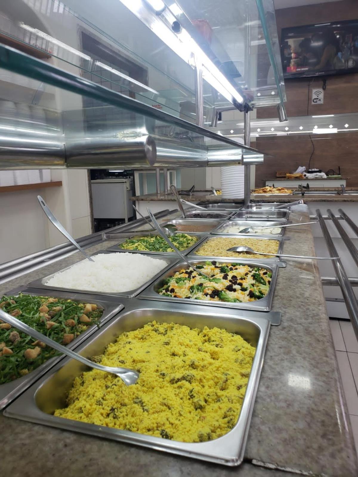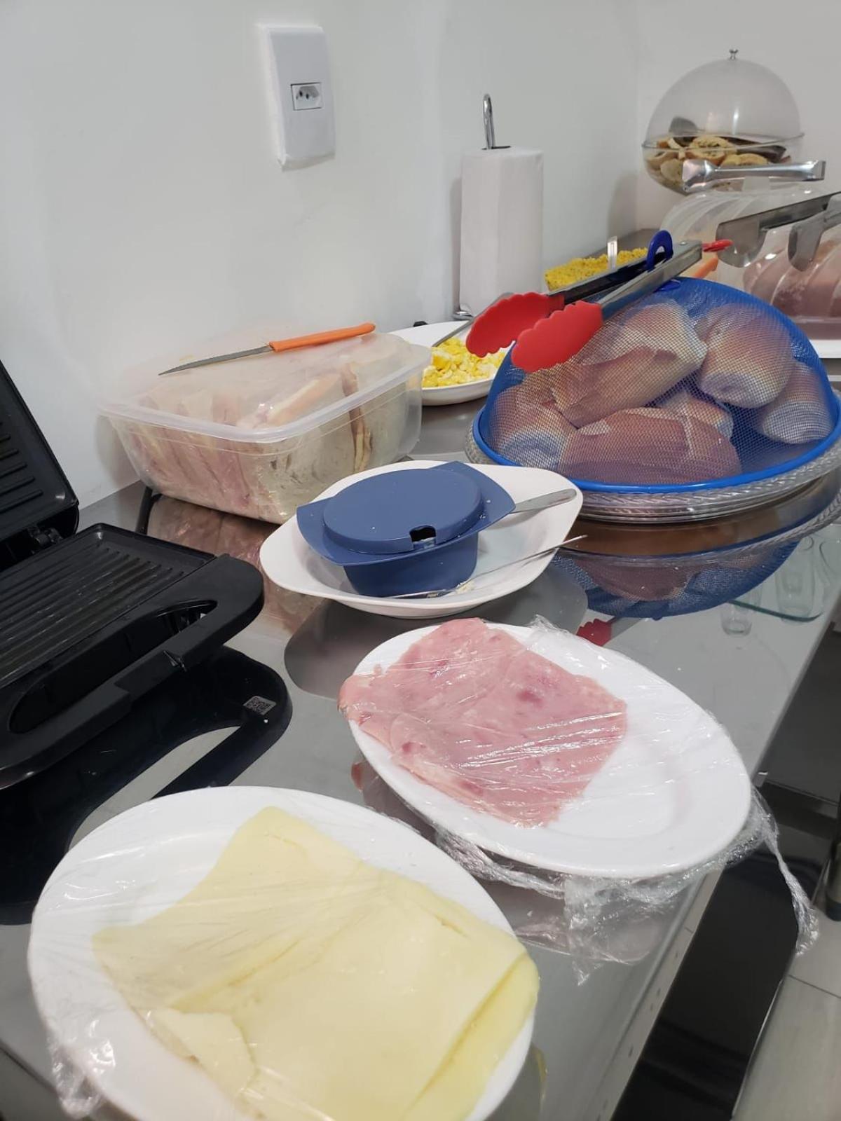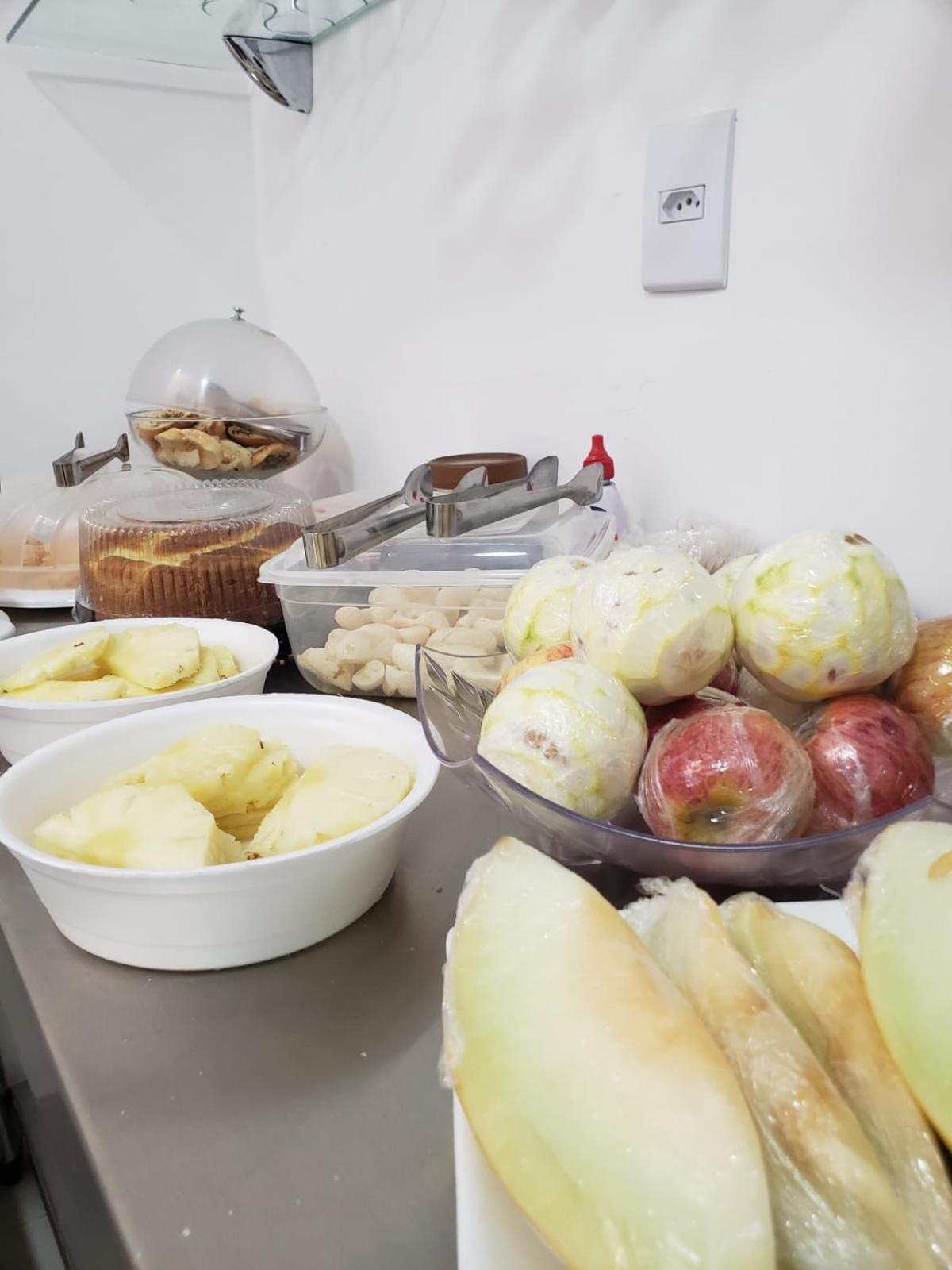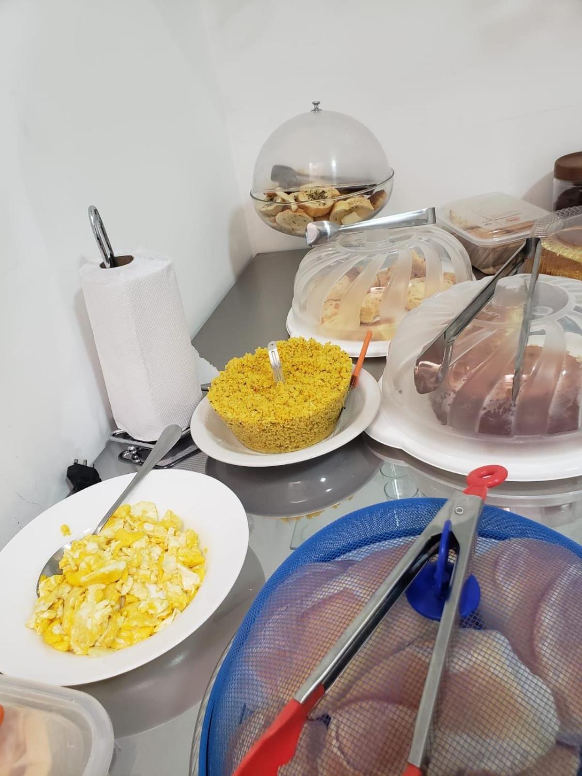 O Café da manhã muito bem servido, muitas opções.