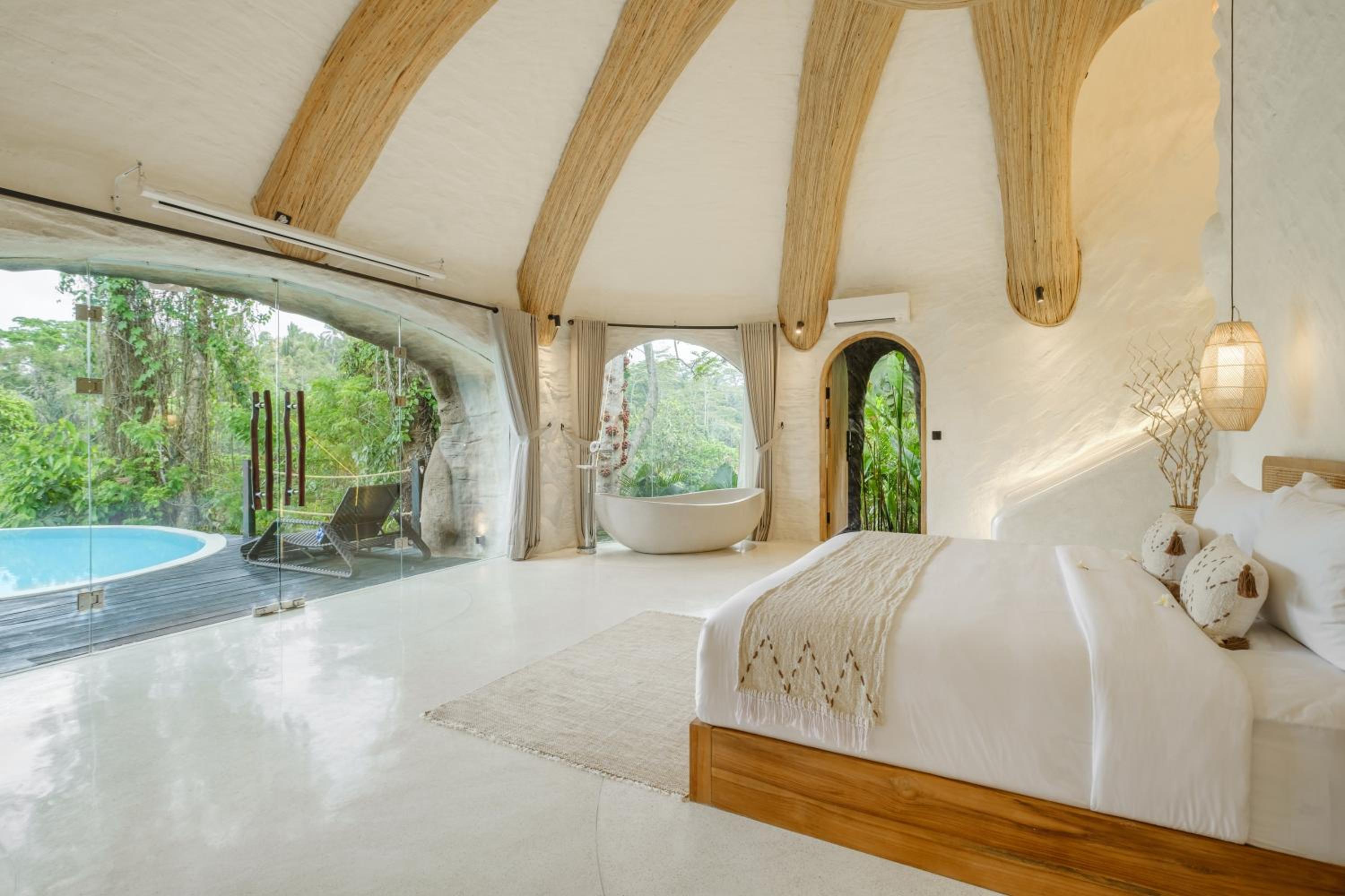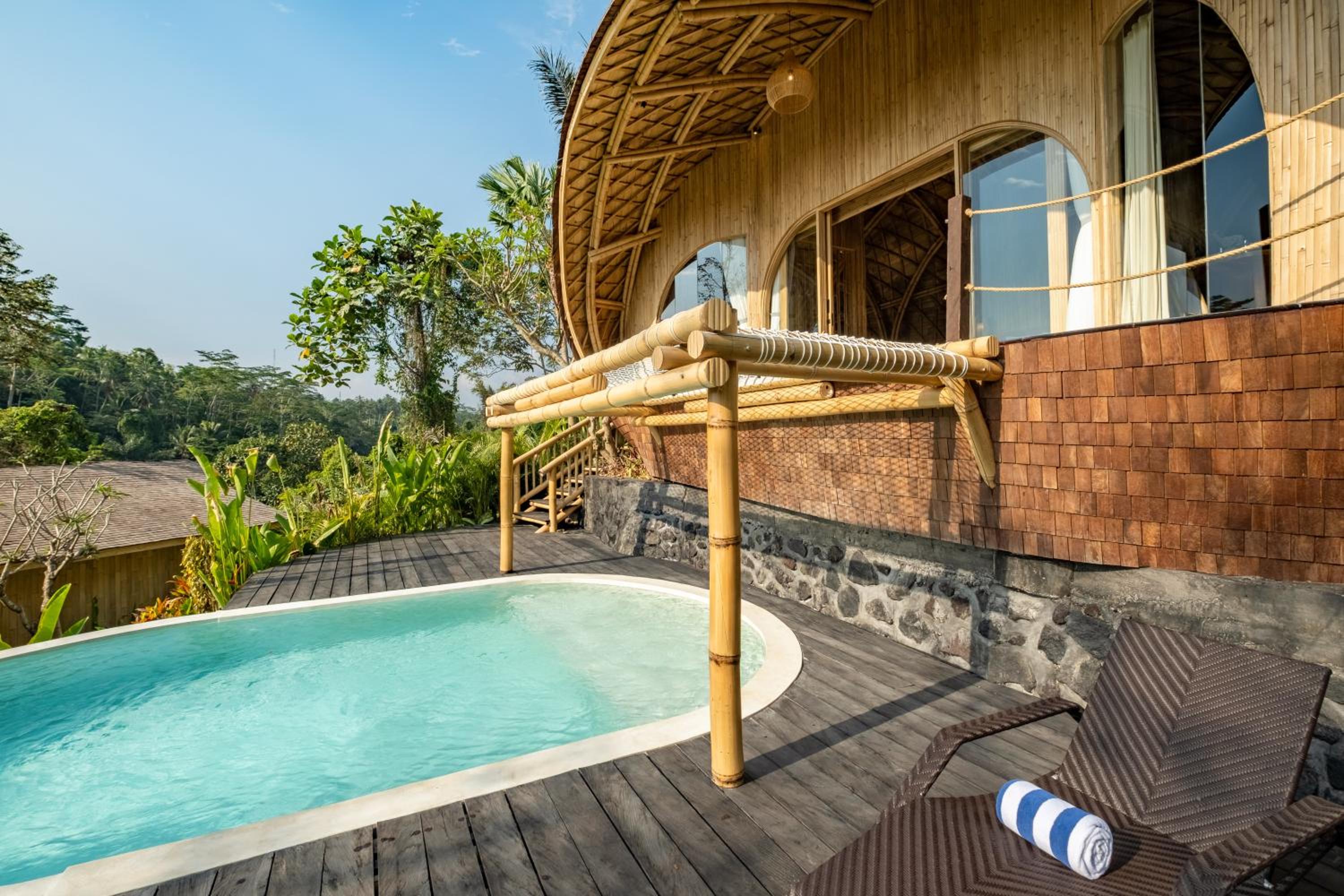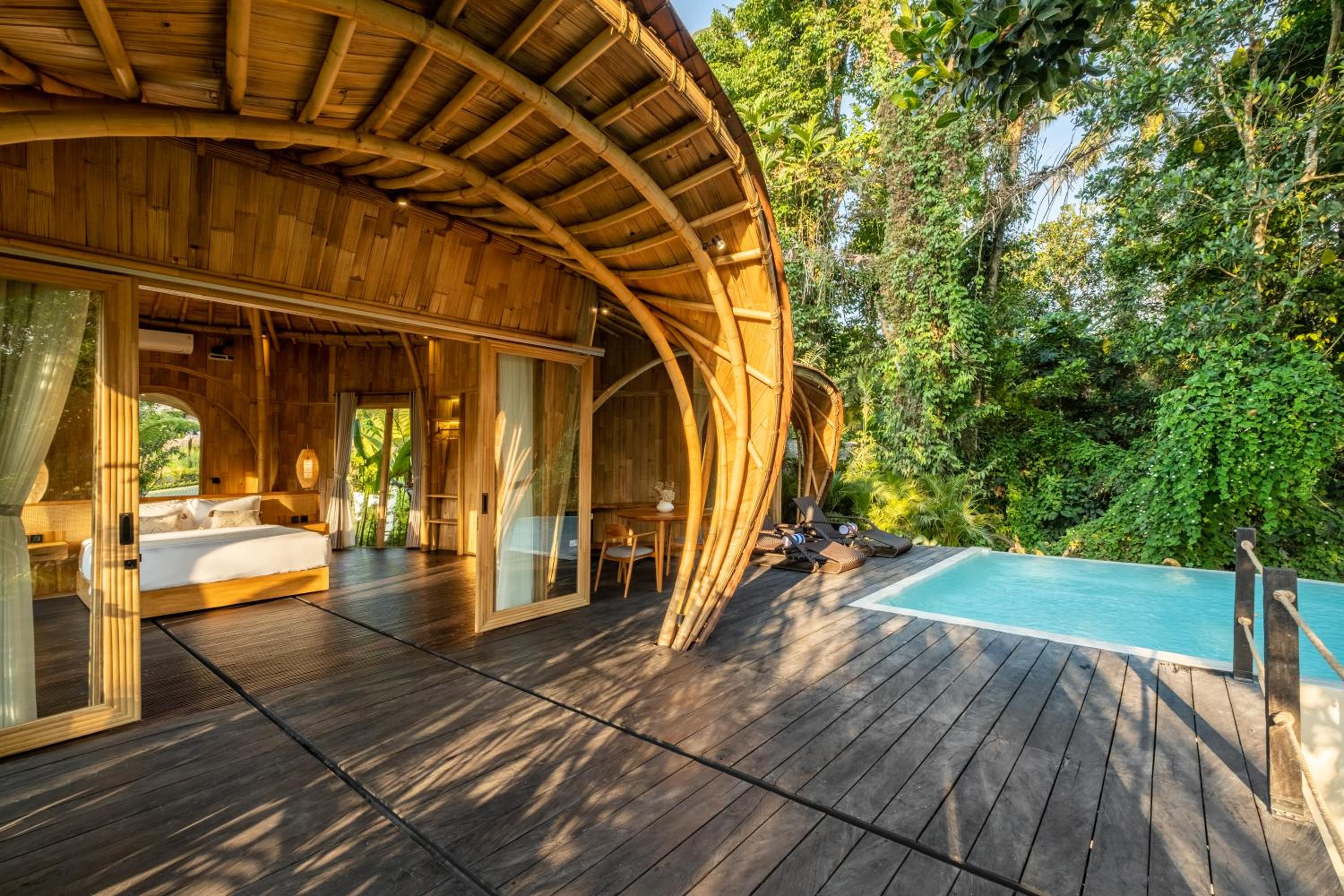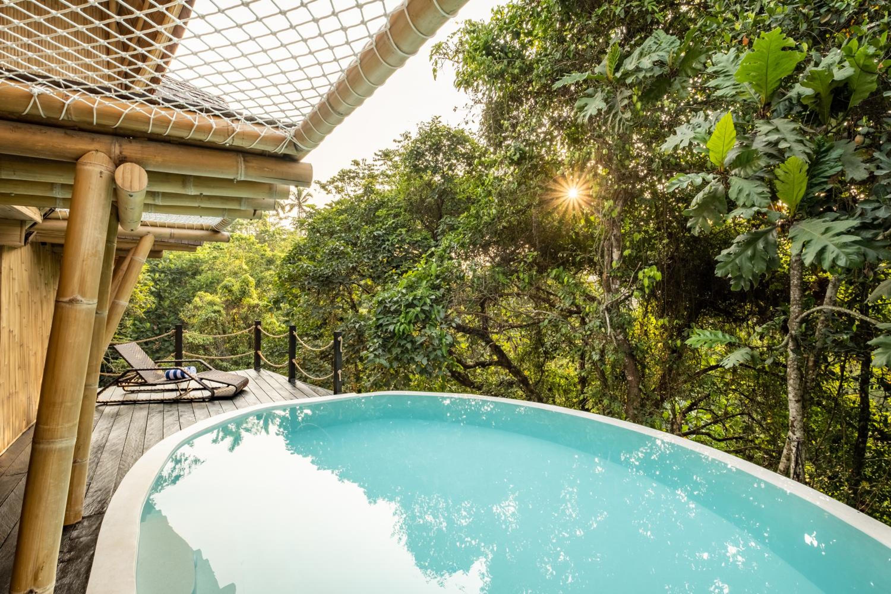 私密性好,可以享受雨林环境不受干扰。员工都很积极热情,有问题可以及时得到解决。房间泳池里的水比较干净,无边泳池冲刷垃圾很及时,可以随时安心下水。