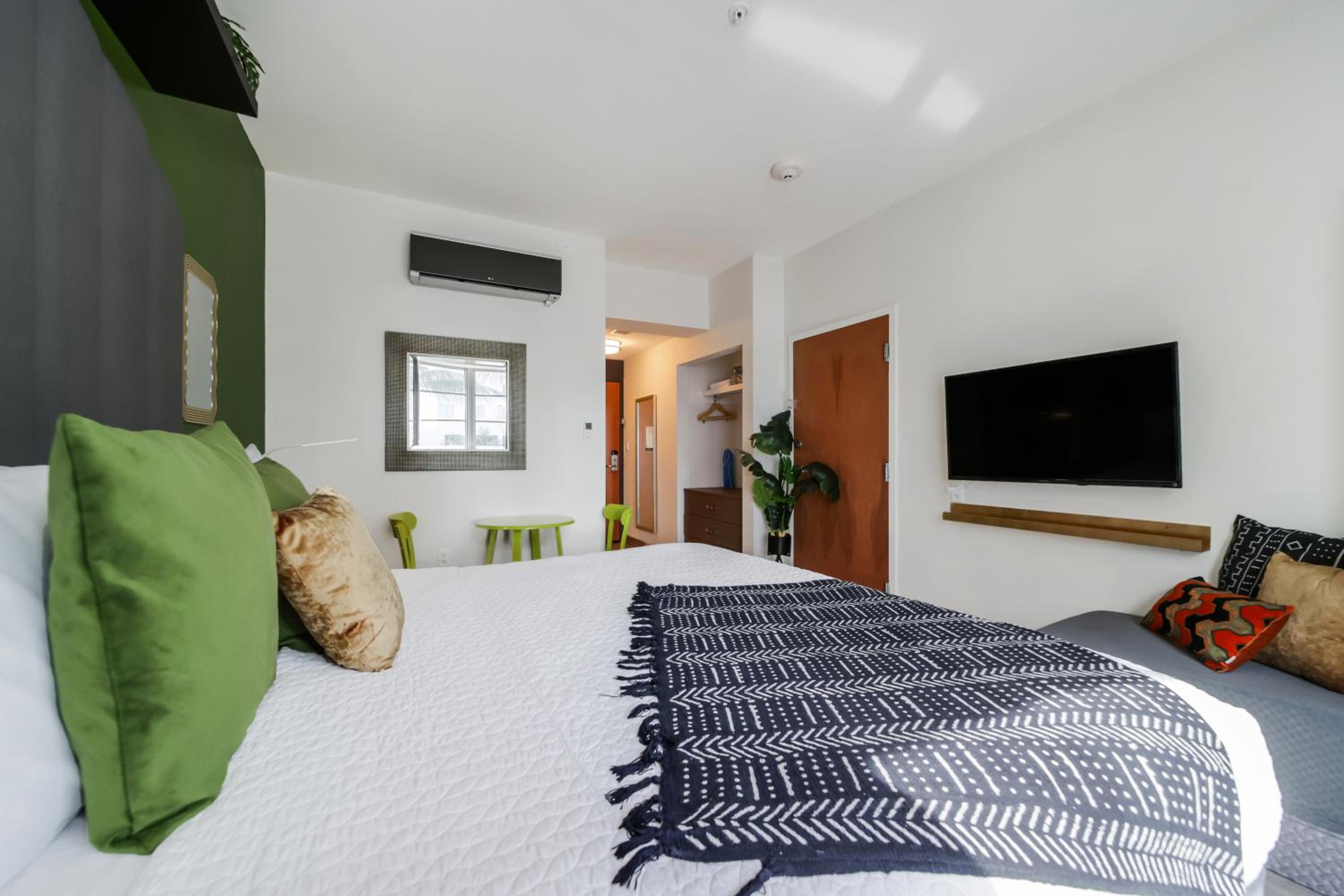 The communication was very much lacking. During the hours of 9am - 4 pm the front desk attendant was very responsive and helpful but she apparently had no real authority with regards to the reservation. Our travel plans were greatly affected by the "winter vortex" that left us stranded in the Charlotte airport for a day and a half. We attempted to message this hotel two days prior to check in to see if we could come in a day early to avoid the storm but there was very little response and finally we were "ghosted" by them. So, we kept our original plans and lost an entire day of vacation, arriving at 8:30 pm the second day into our reservation. Upon arrival, we tried to use the provided code to get into the room, this did not work. We were able to message with the "after hours" staff who tried to provide us with a new code to no avail. We were eventually given the code to the lock box and were able to gain access to the room with the key. The next day, the desk attendant sent us a new code that did work for the remained of our stay. Our first night was very cold since the temp was down to 38 degrees and Miami apparently does not have heat in most buildings. We had a sheet and a very thin cover. We did request a blanket the next day and we were able to obtain both a blanket and a comforter. The rest of our stay was comfortable. The towels are like sandpaper and there was no housekeeping, replacement towels or trash removal during our 4 day stay. There is a microwave, small fridge and toaster in the room but no coffee maker. The morning of the day prior to our departure I inquired at the front desk about extending our stay for one day. She stated that she was unable to manage this request on her end but that she would contact the owners to see if this was possible. I received no answer until the evening which made no sense and said that I should ask at the desk after 9 the next day.