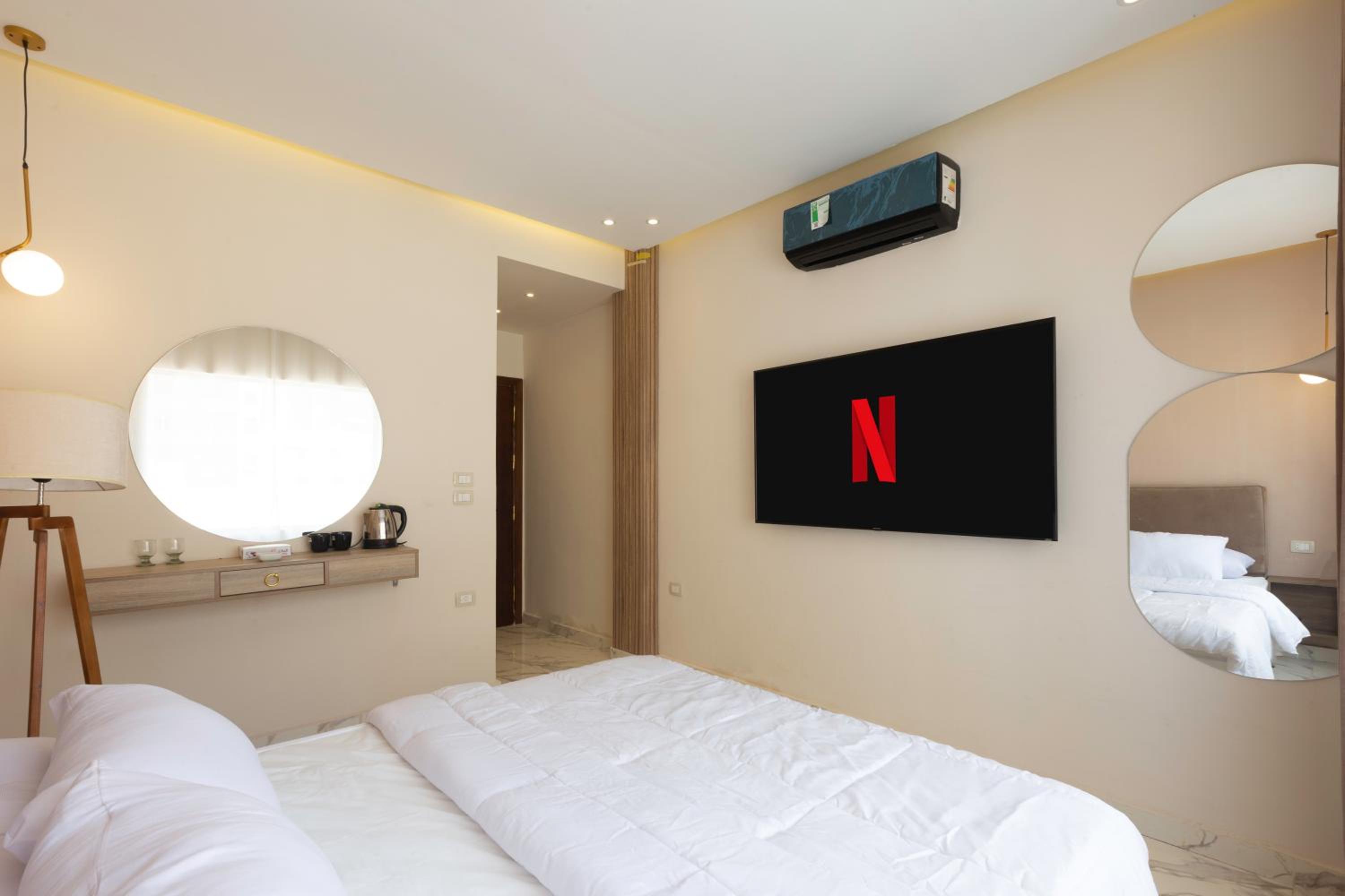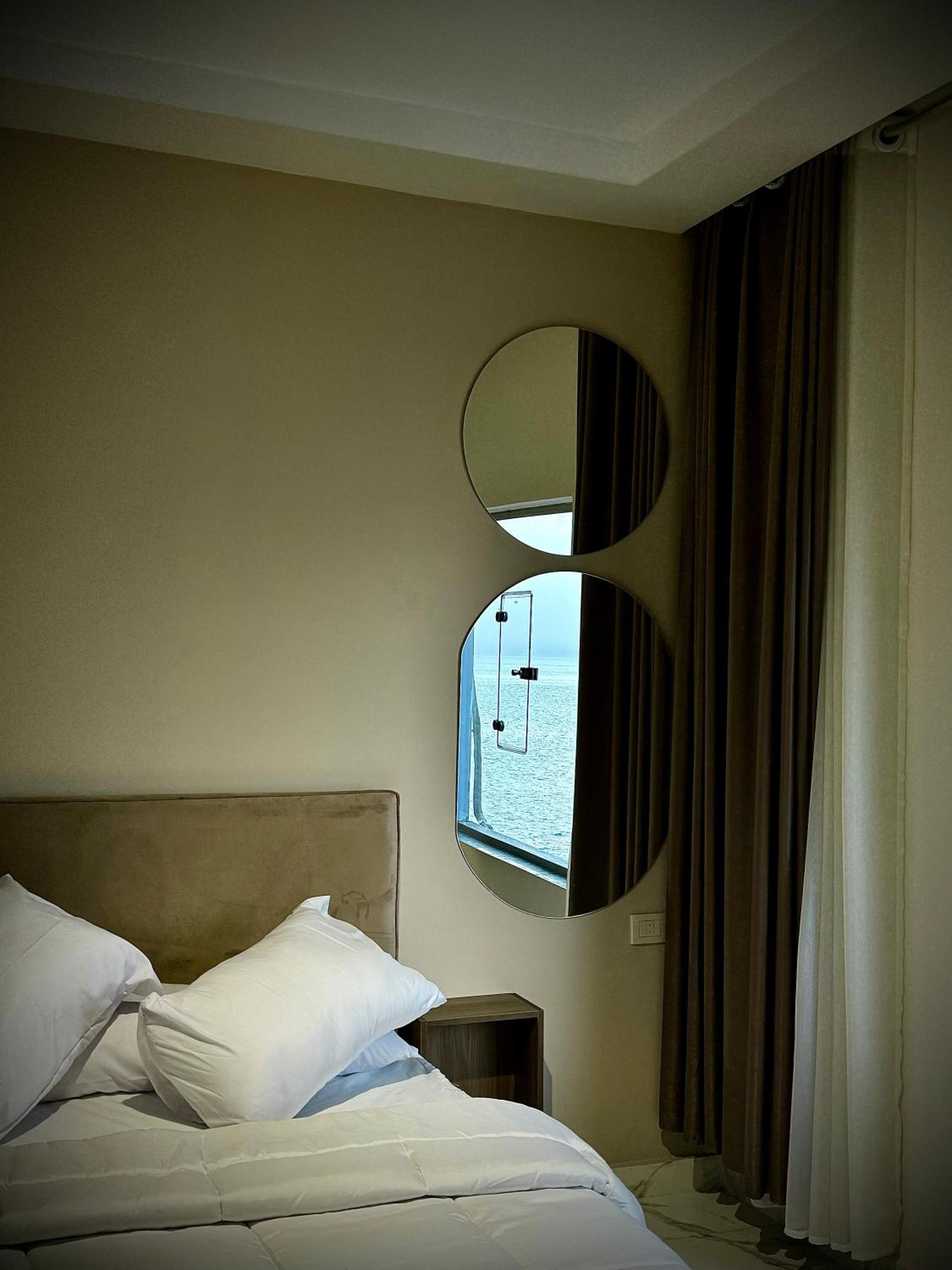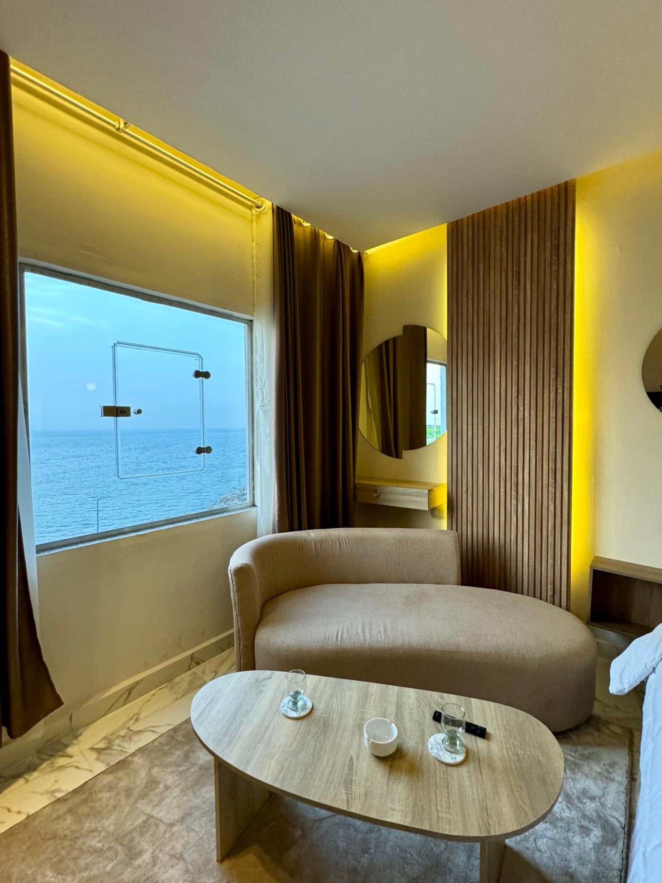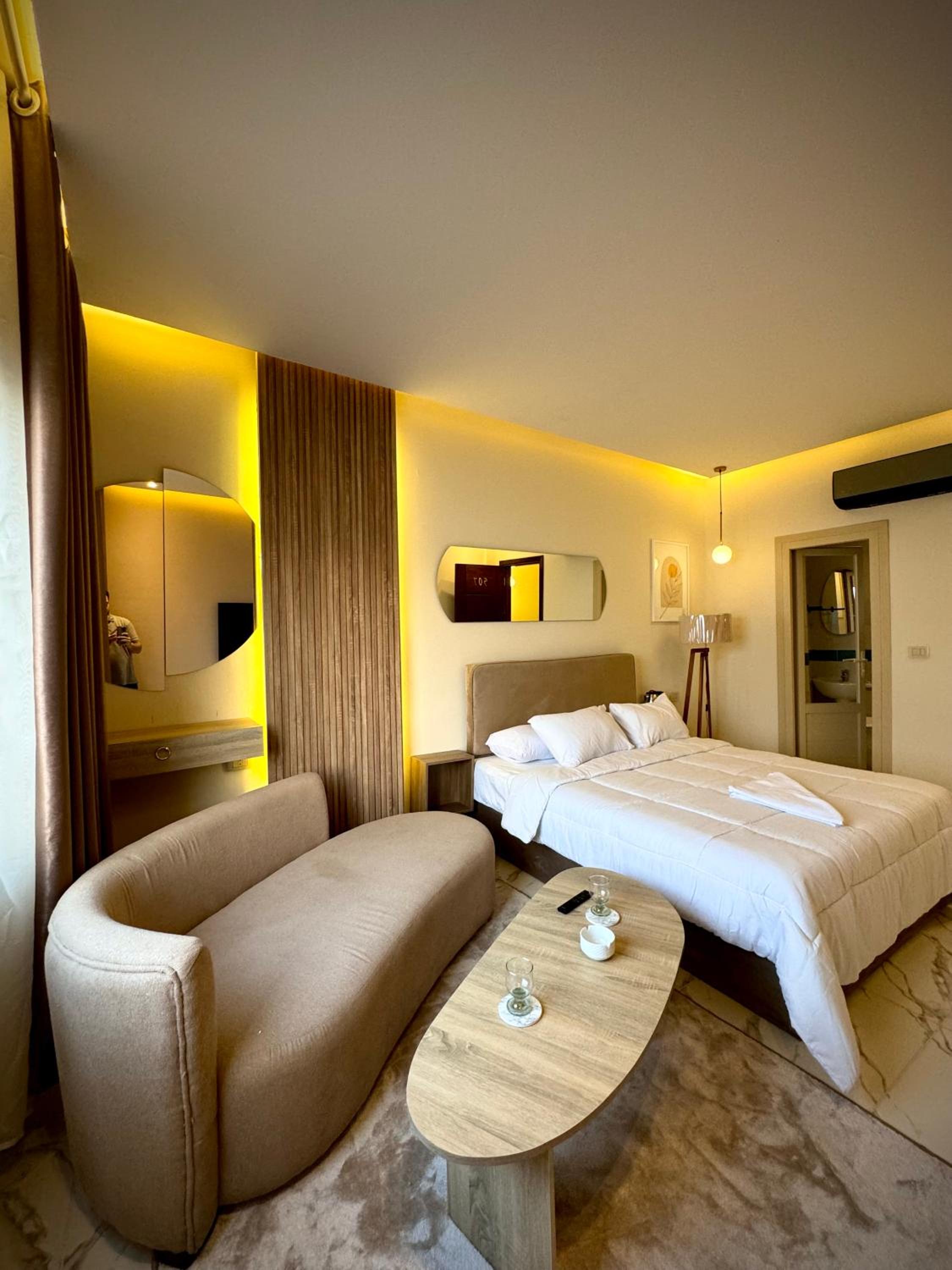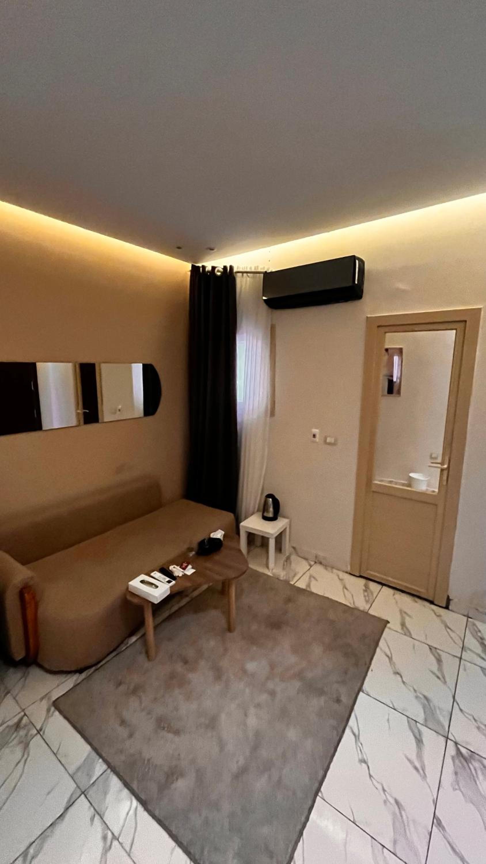 They were misleading us with the fake pictures and then told us that was the room we booked which was not true. The room was too small with tiny window, no view and dirty towels. The electricity was cut on us for 2 hours and also the water, in addition to no refrigerator during very hot temperature. There were no wardrobe. When we complained, they changed the room to a wider one but still with little to no facilities. Worst hotel I have ever been and so not recommended.