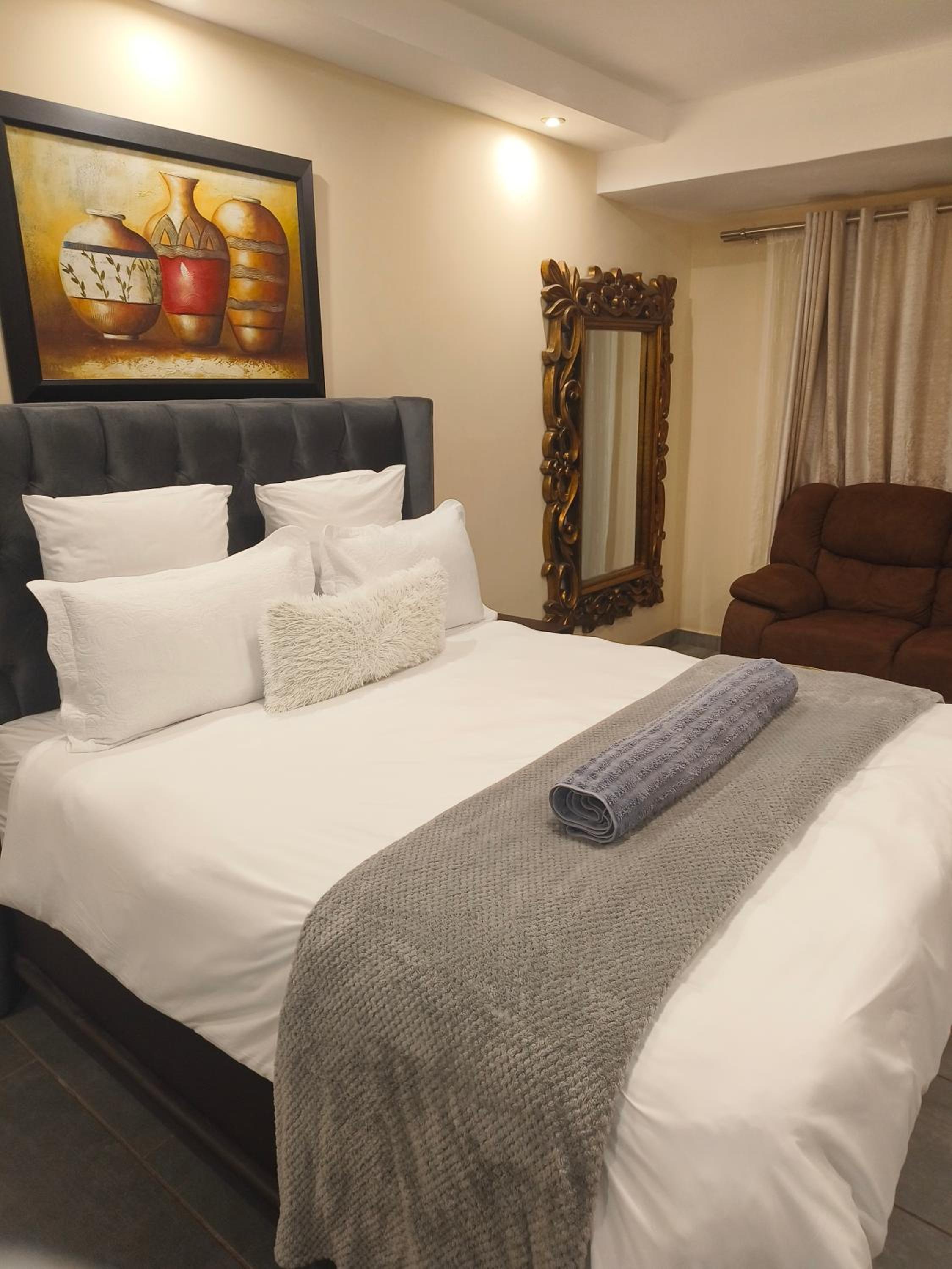 I thought the place was in town, however discovered that it's in the township, Evey is well organized, the couch was smelling feet and the microwave was dirty with wors fat, had to ask for a toilet roll from the reception, need to improve on these items, enjoy the stay though