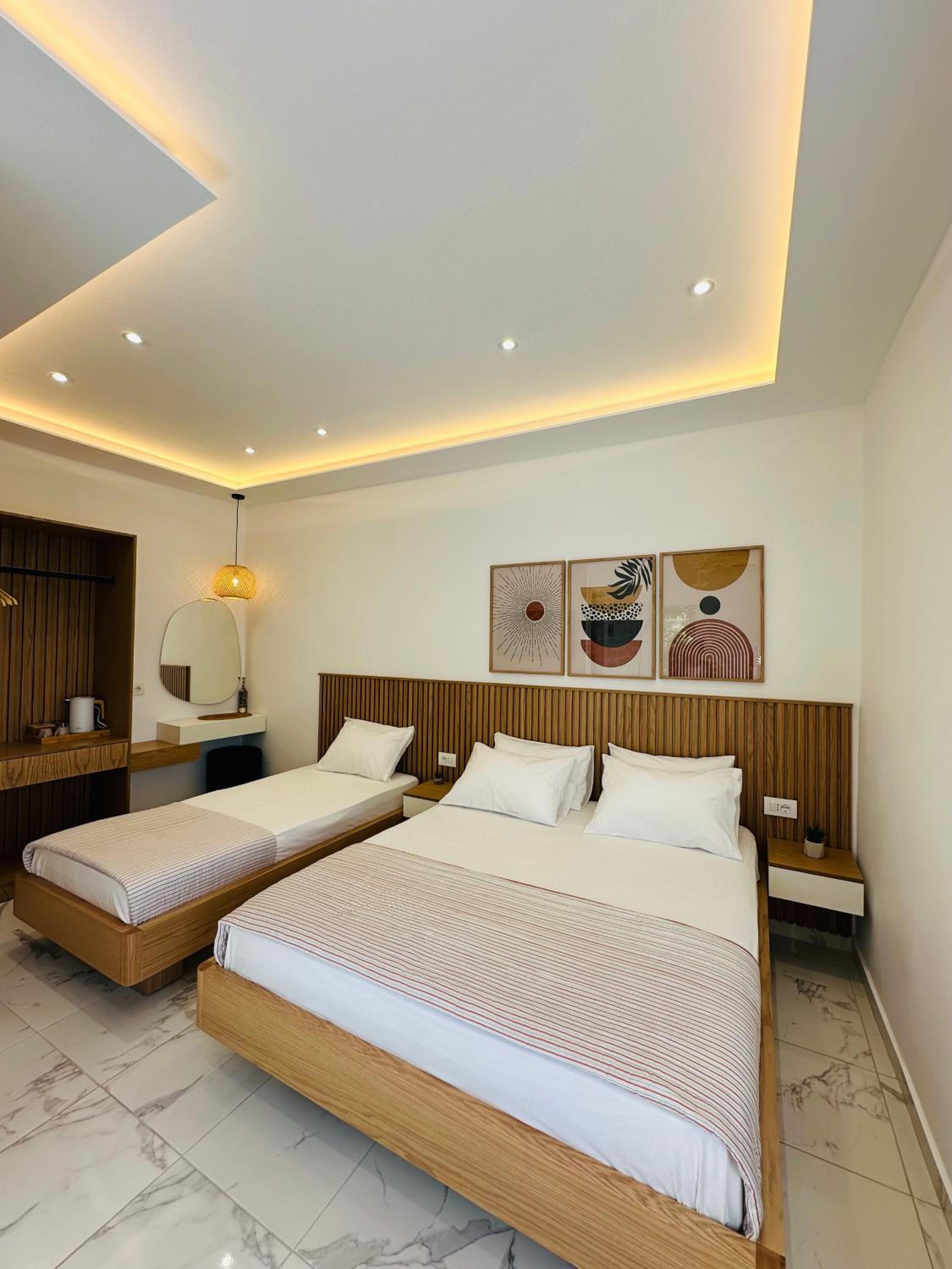 One of my favourite rooms we stayed in Albania - it was super clean, modern and whilst our room did not have beach views/ balcony we were right next to the beach. We had access to our own private umbrella/ lounges and was the great place to relax! The restaurant right next door was delicious too.
