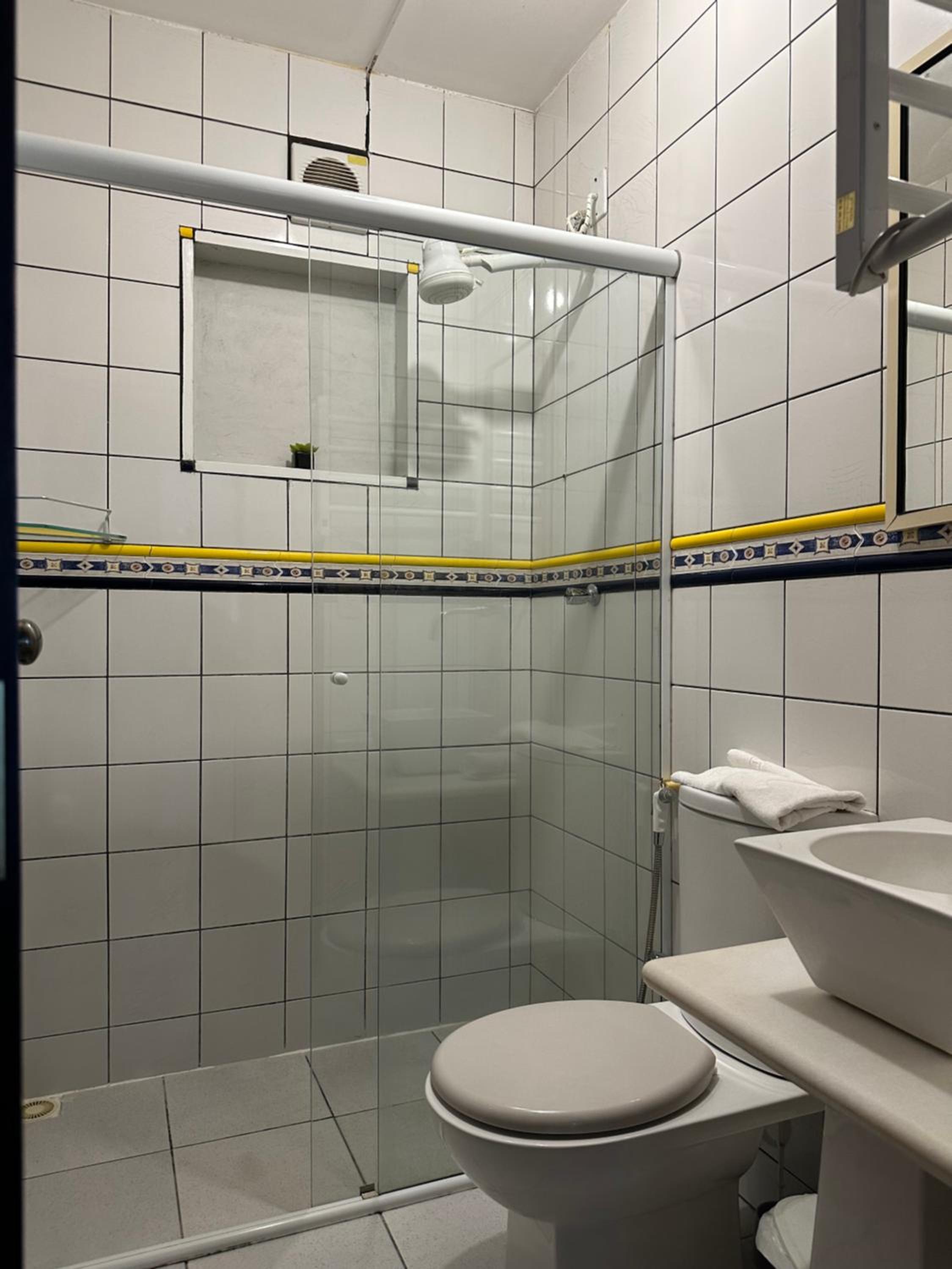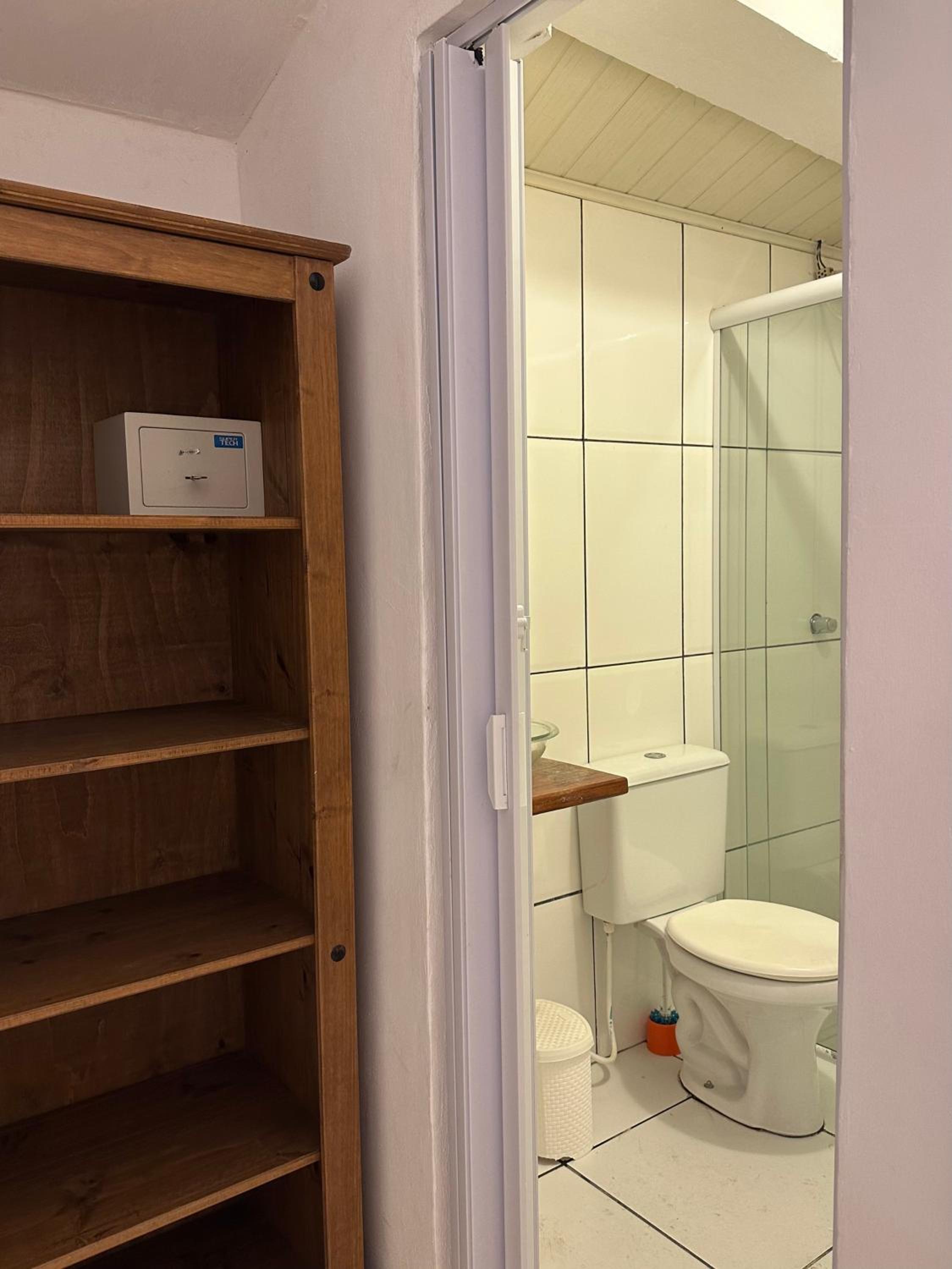 Porta do banheiro difícil de fechar, café meio mal servido.