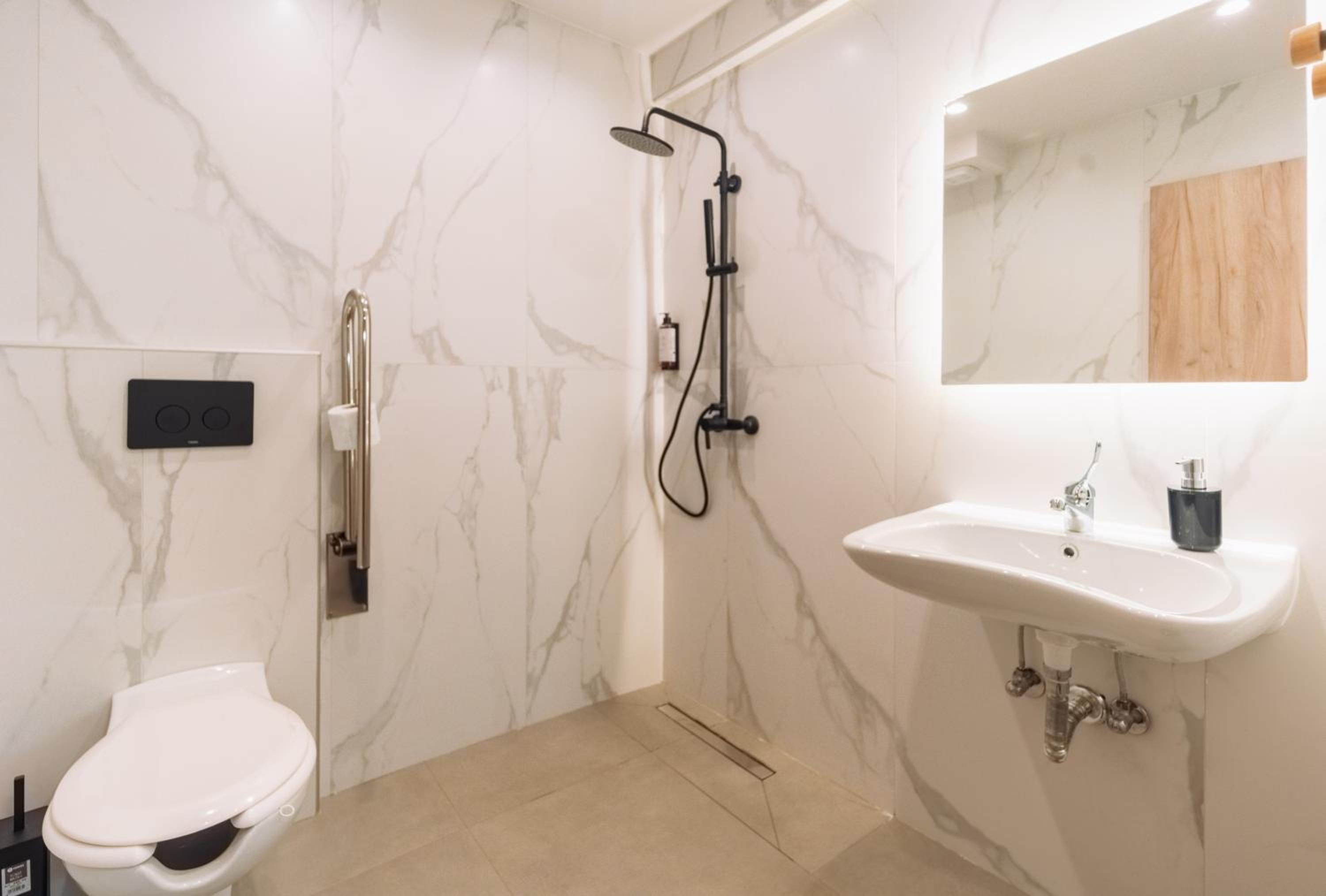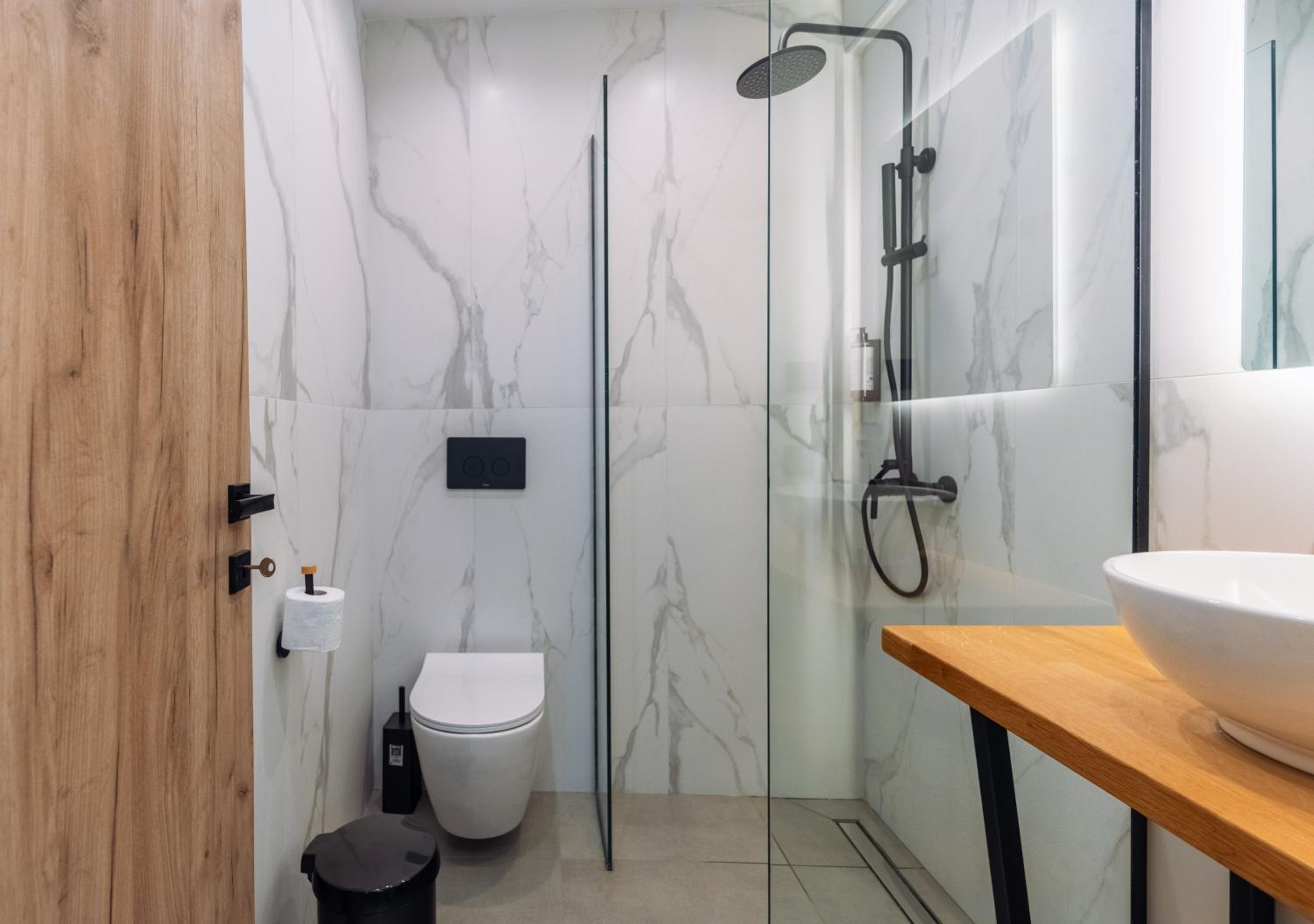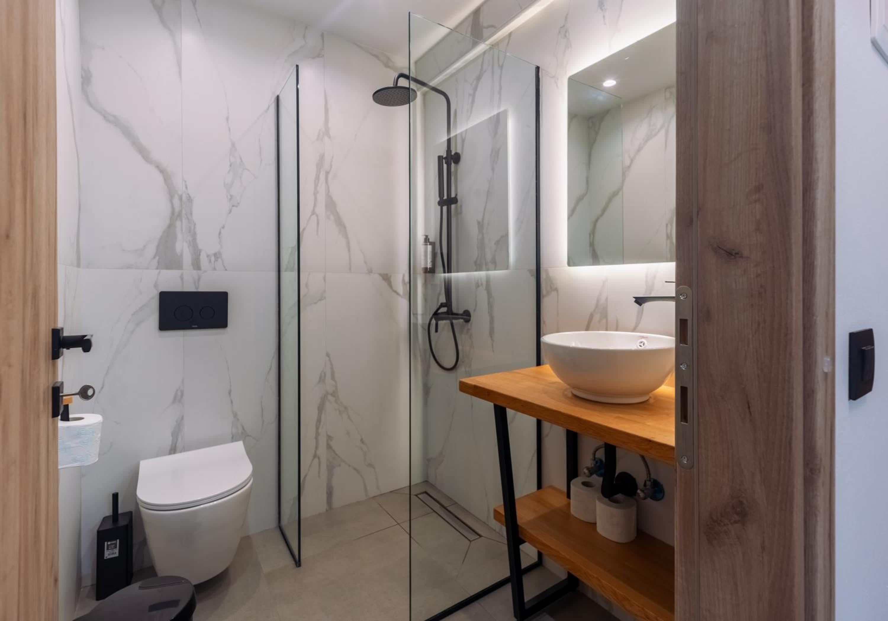Small storage places in the bathroom need to be added for the perfect comfort.