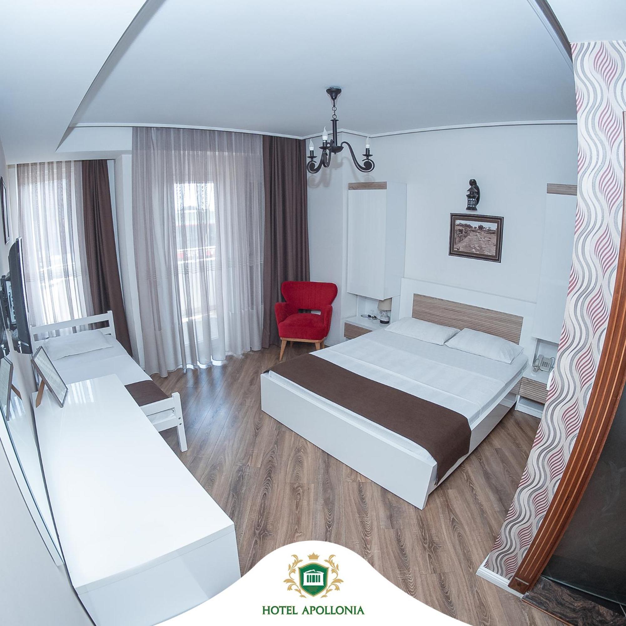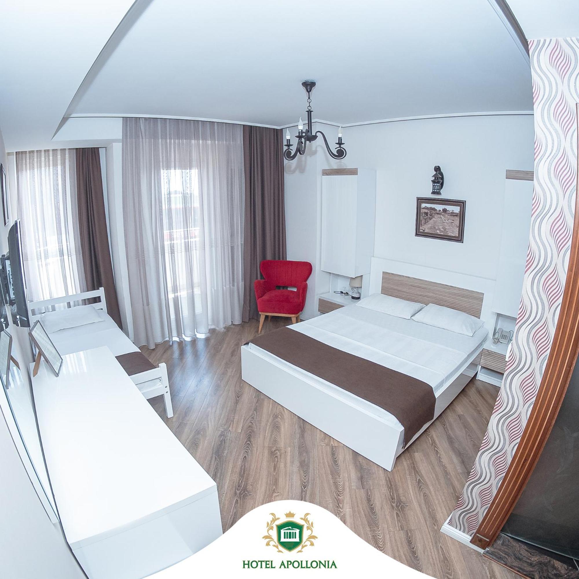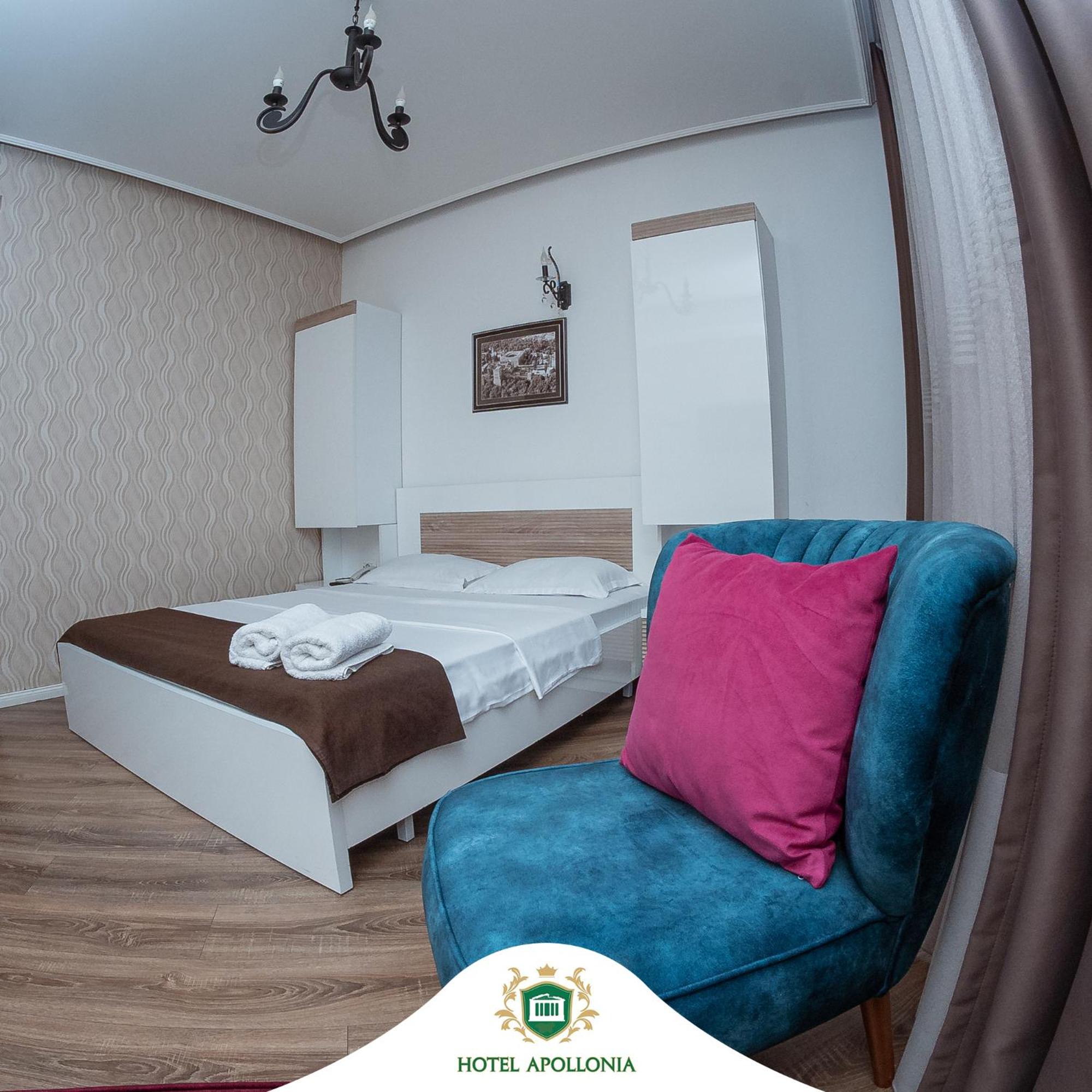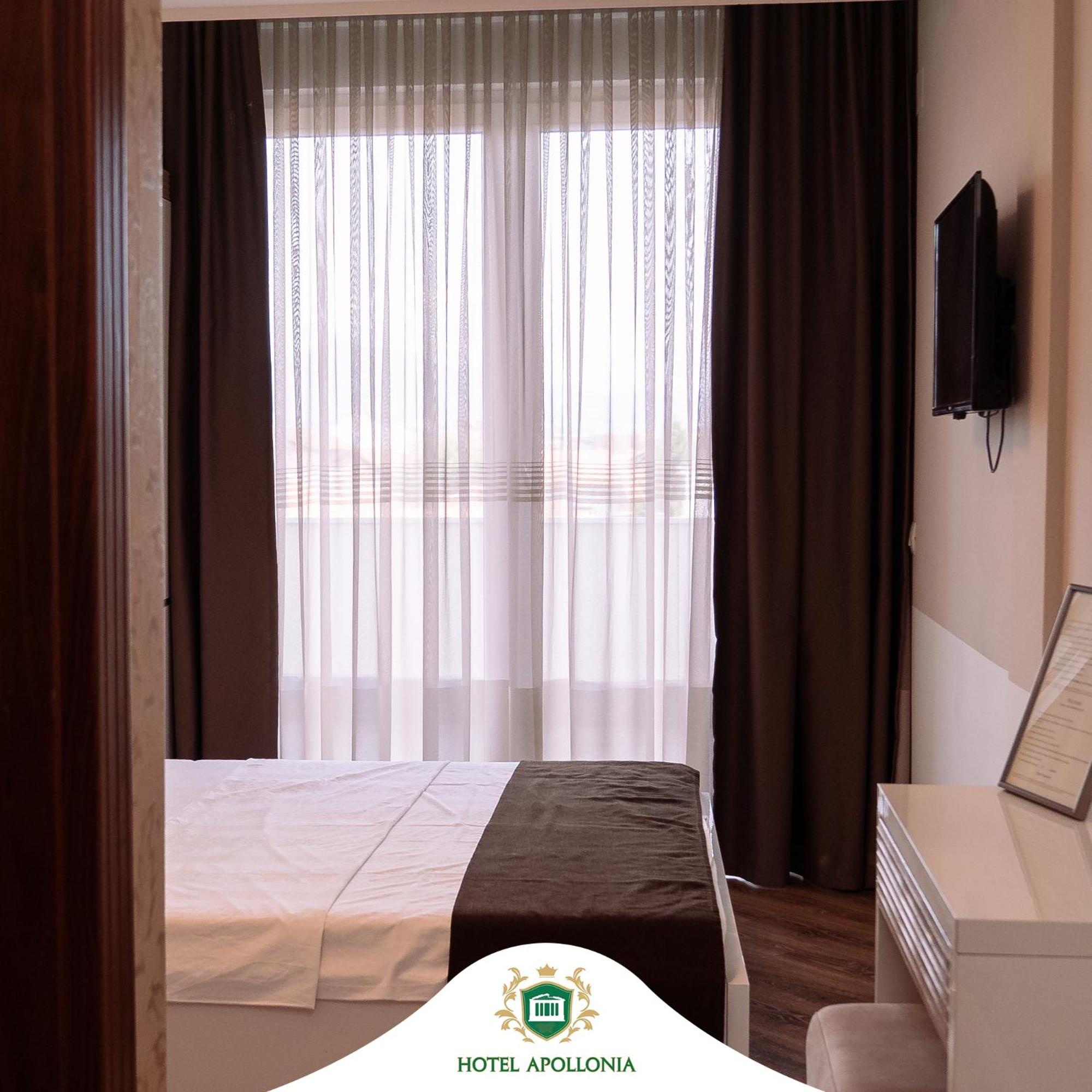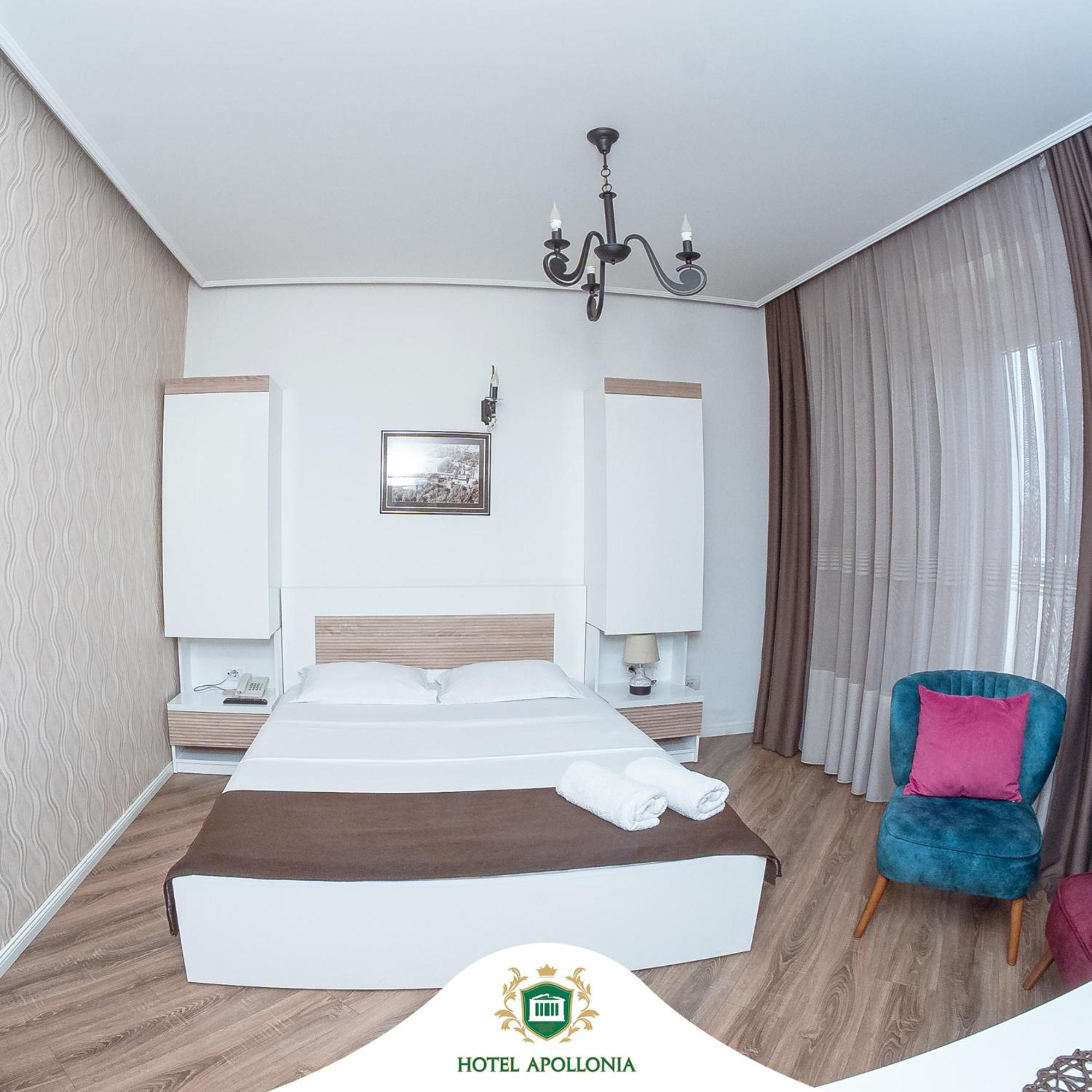The rooms at Hotel Apollonia are well-equipped with modern amenities such as flat-screen TVs, air conditioning, and free toiletries, ensuring a comfortable stay for all guests.