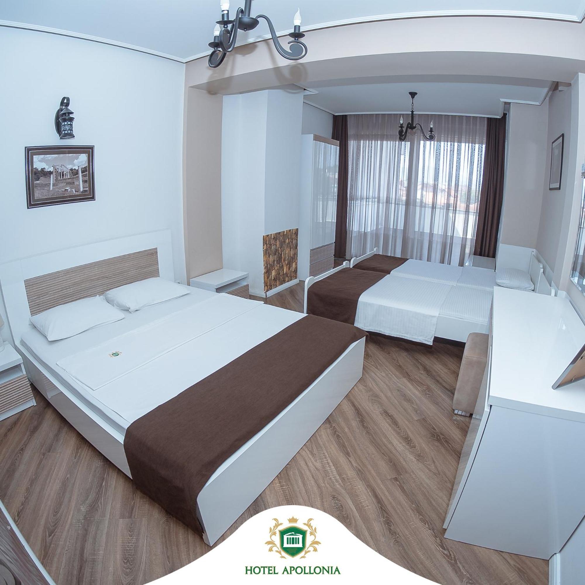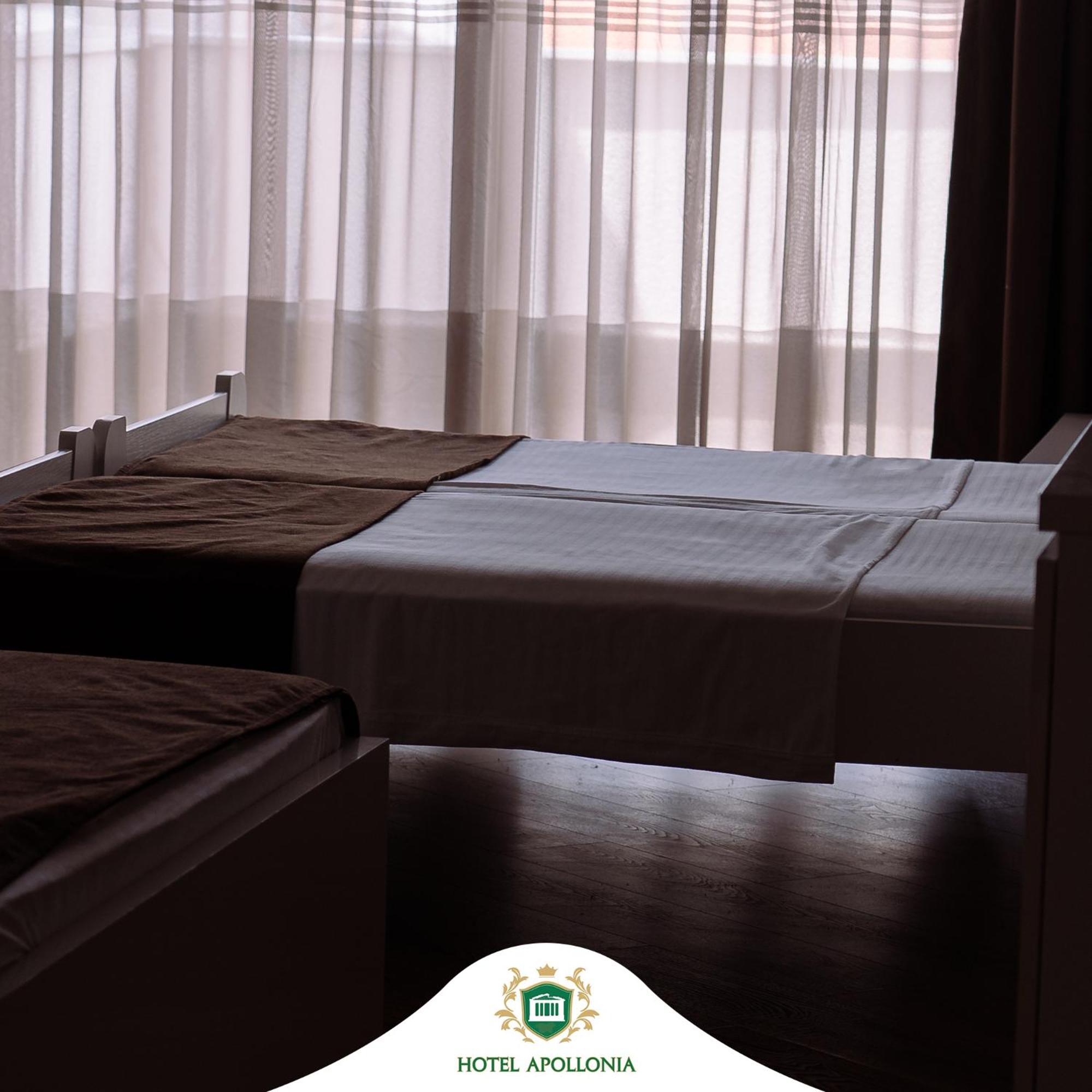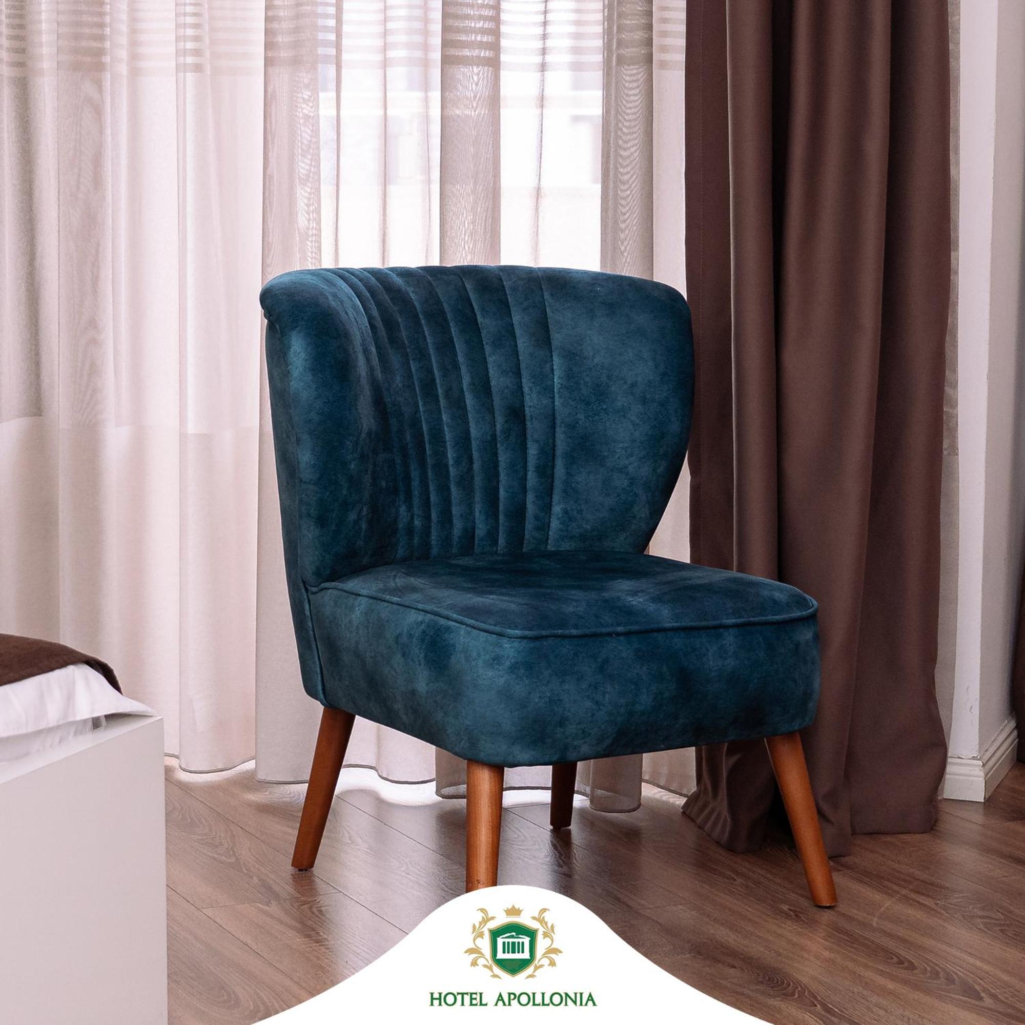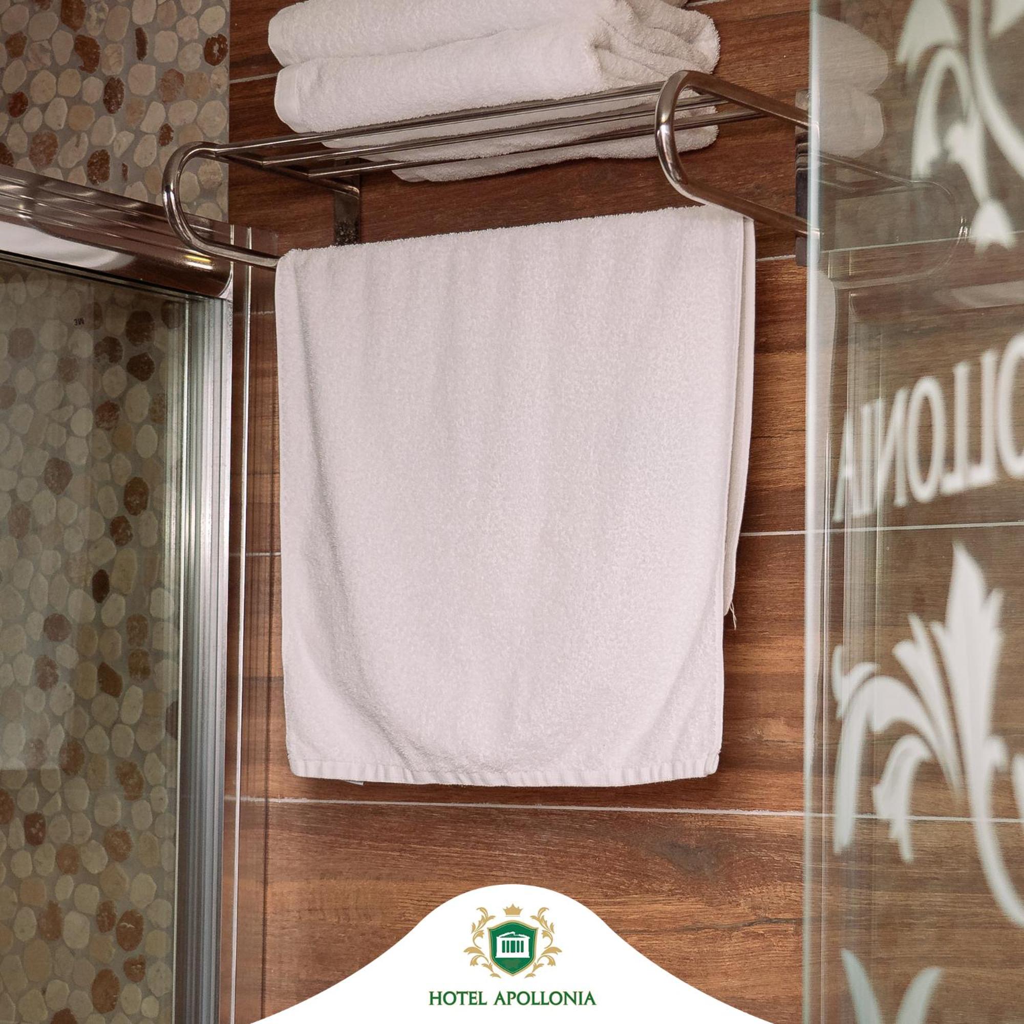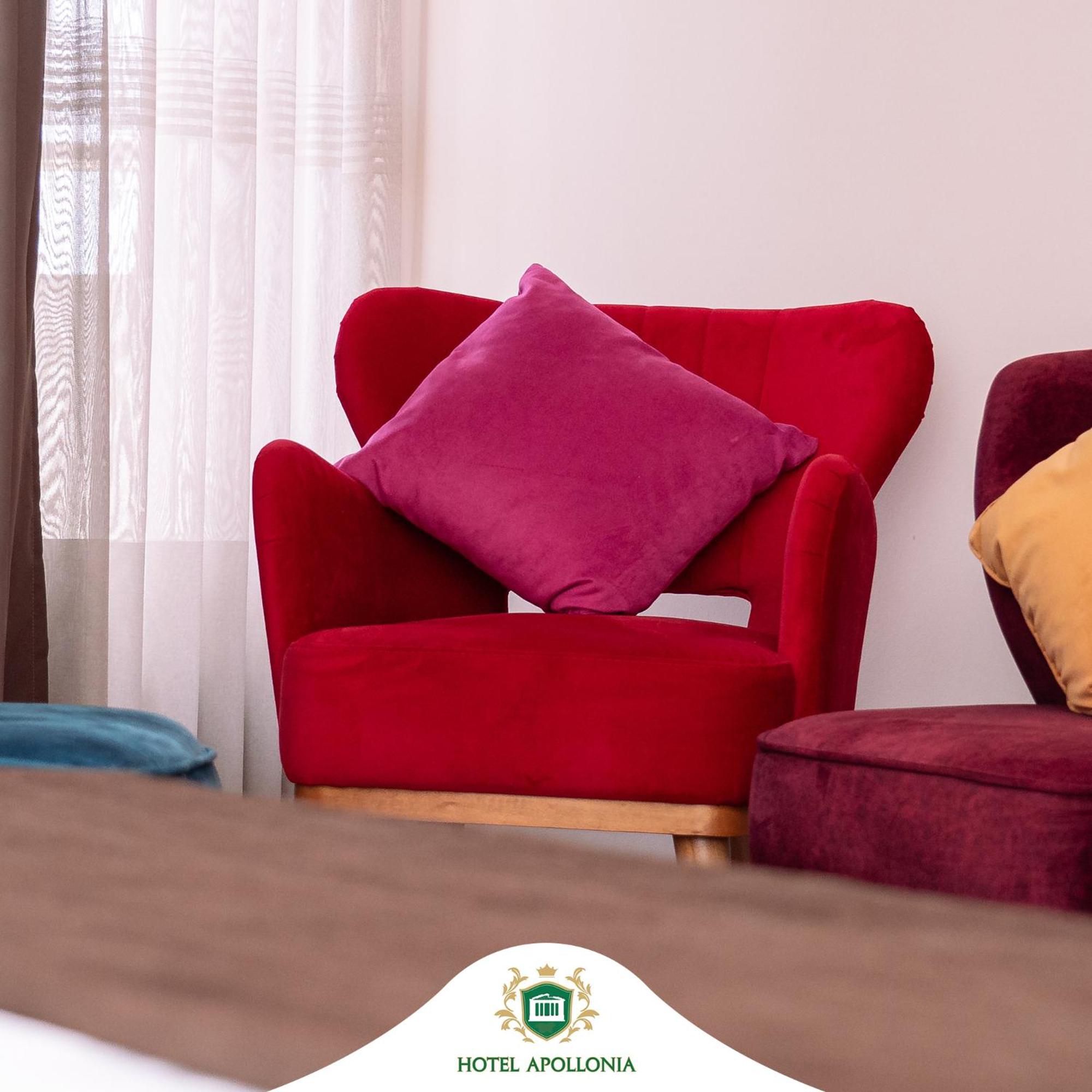 The rooms at Hotel Apollonia are well-equipped with modern amenities such as flat-screen TVs, air conditioning, and free toiletries, ensuring a comfortable stay for all guests.