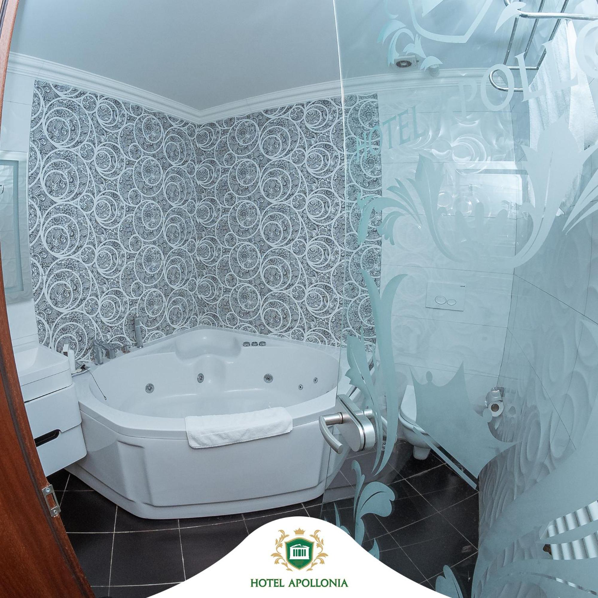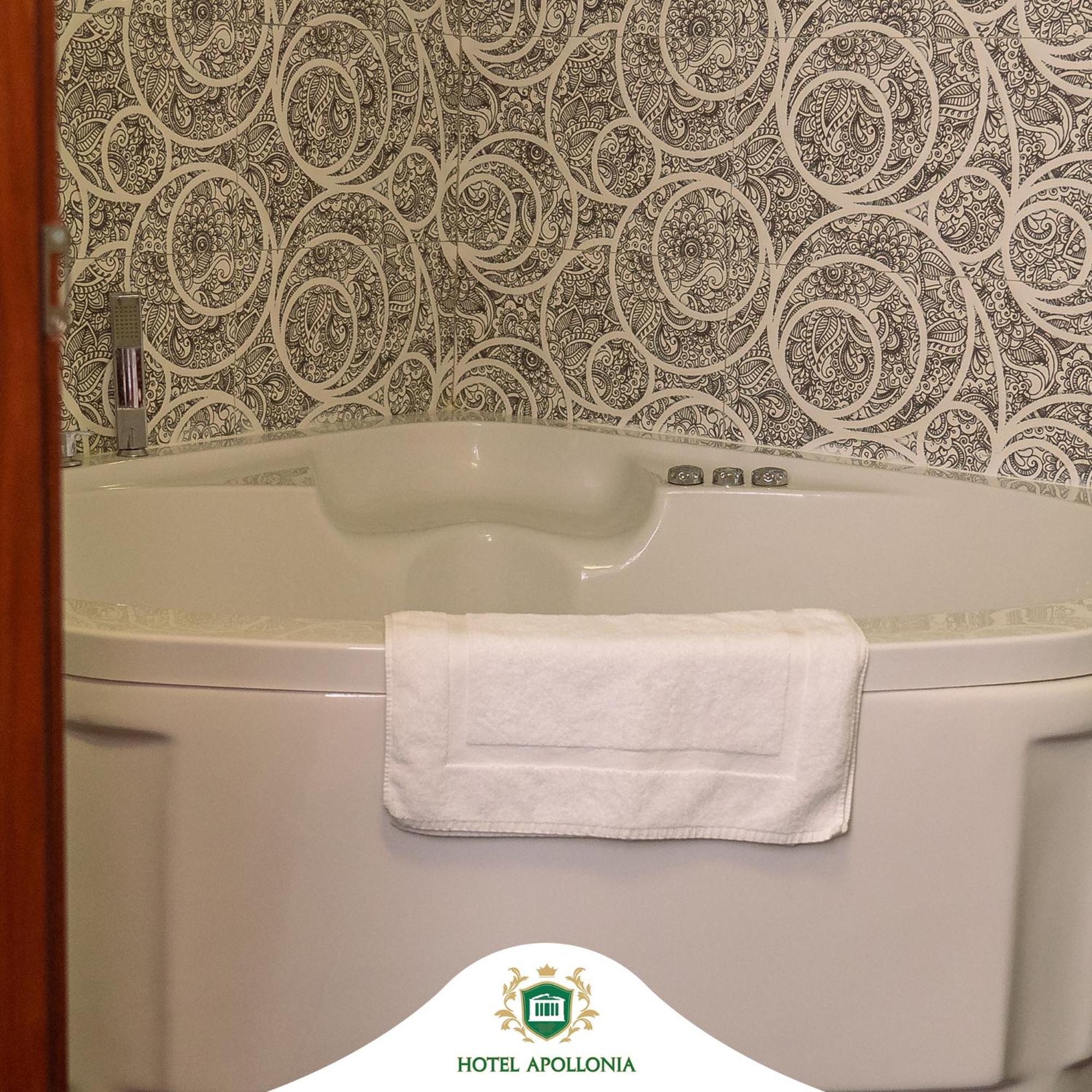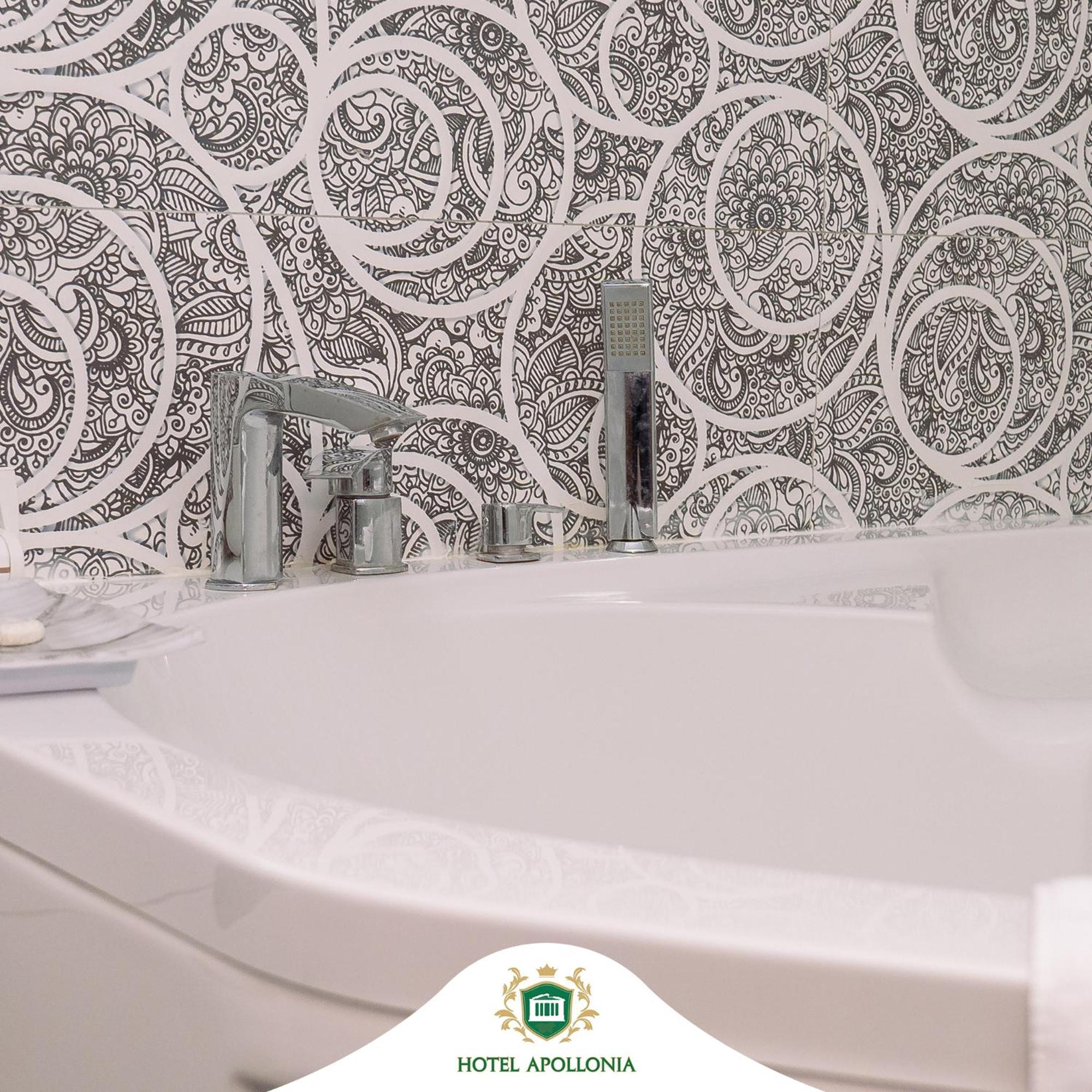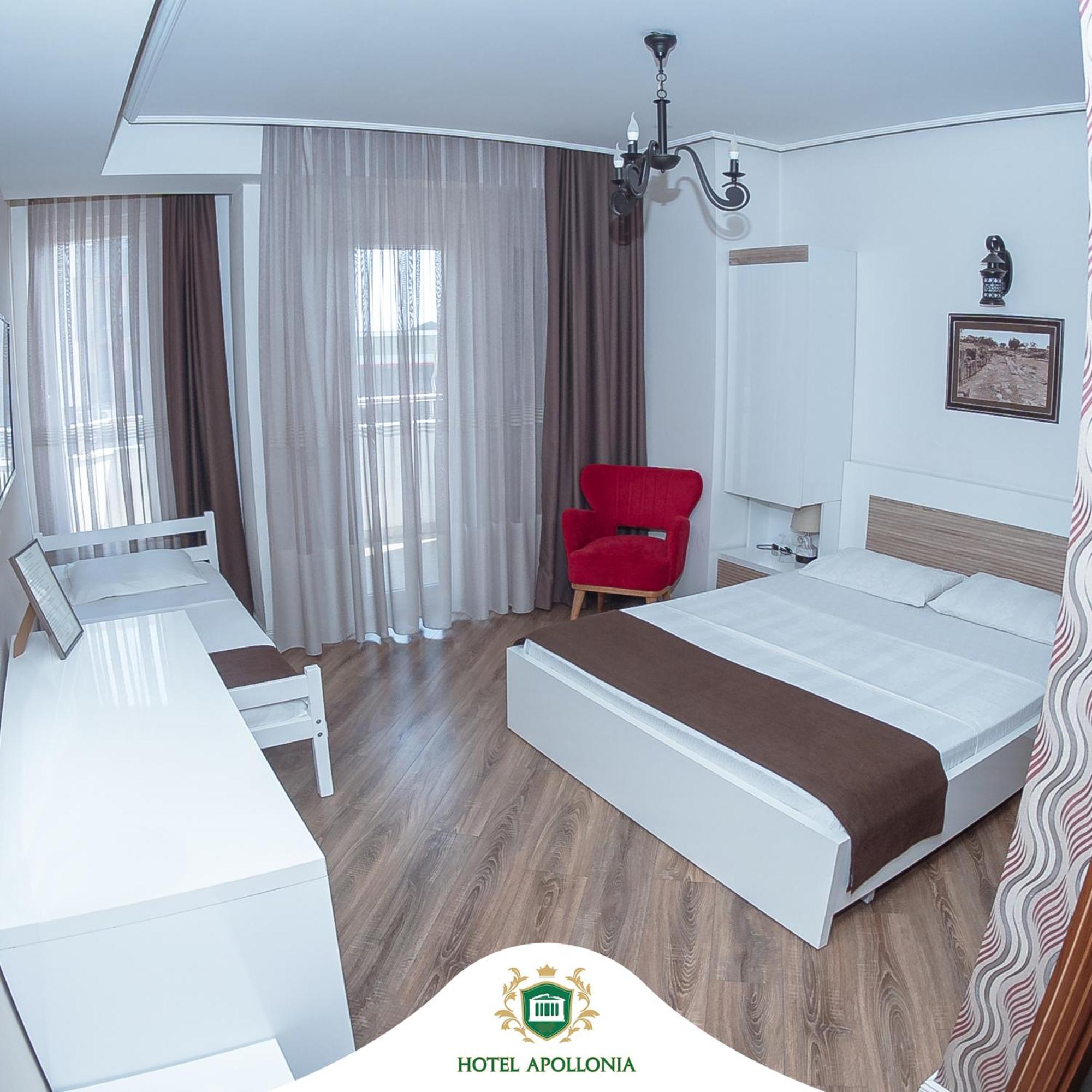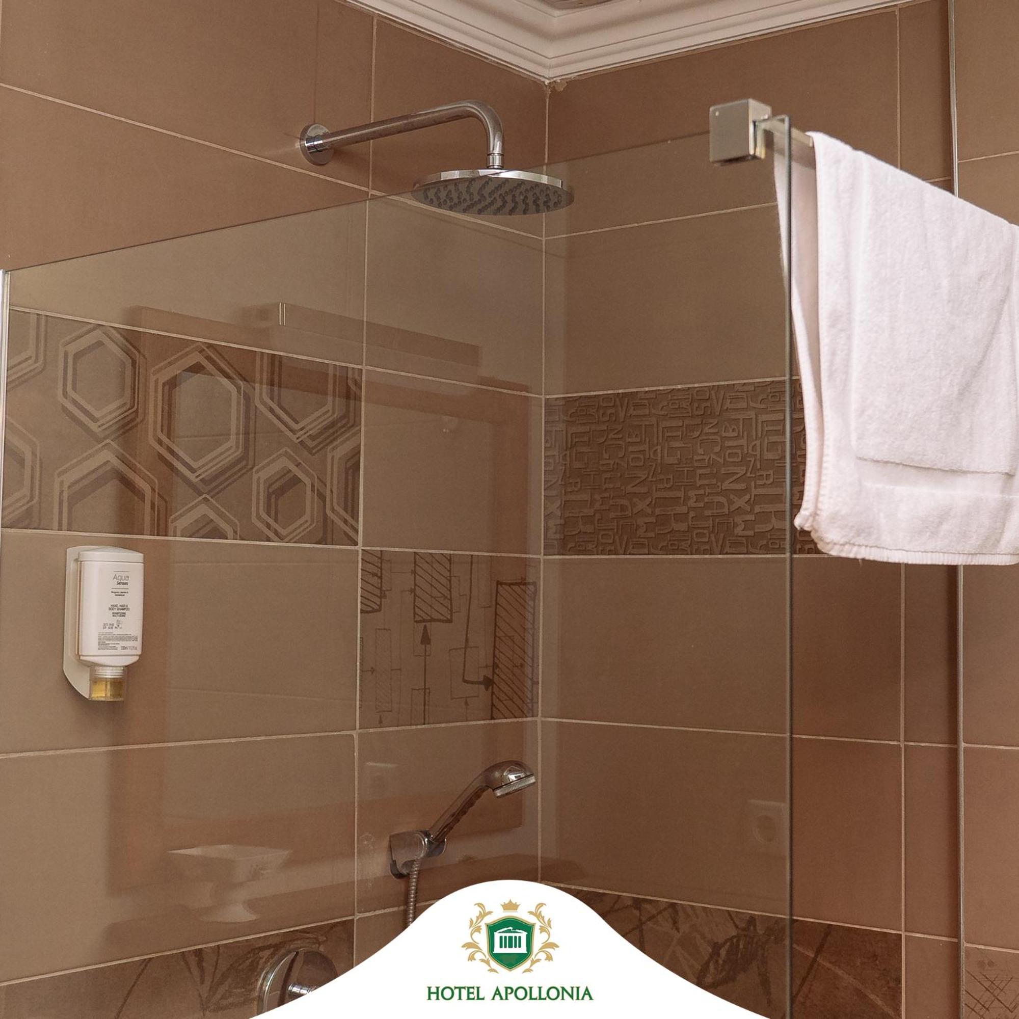 The rooms at Hotel Apollonia are well-equipped with modern amenities such as flat-screen TVs, air conditioning, and free toiletries, ensuring a comfortable stay for all guests.