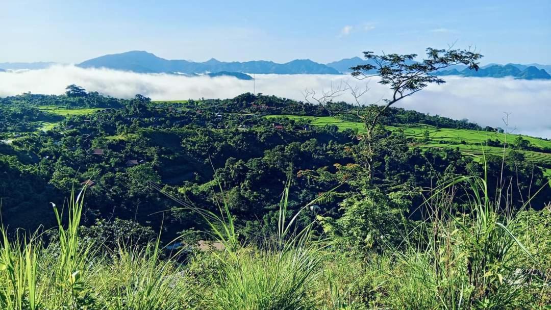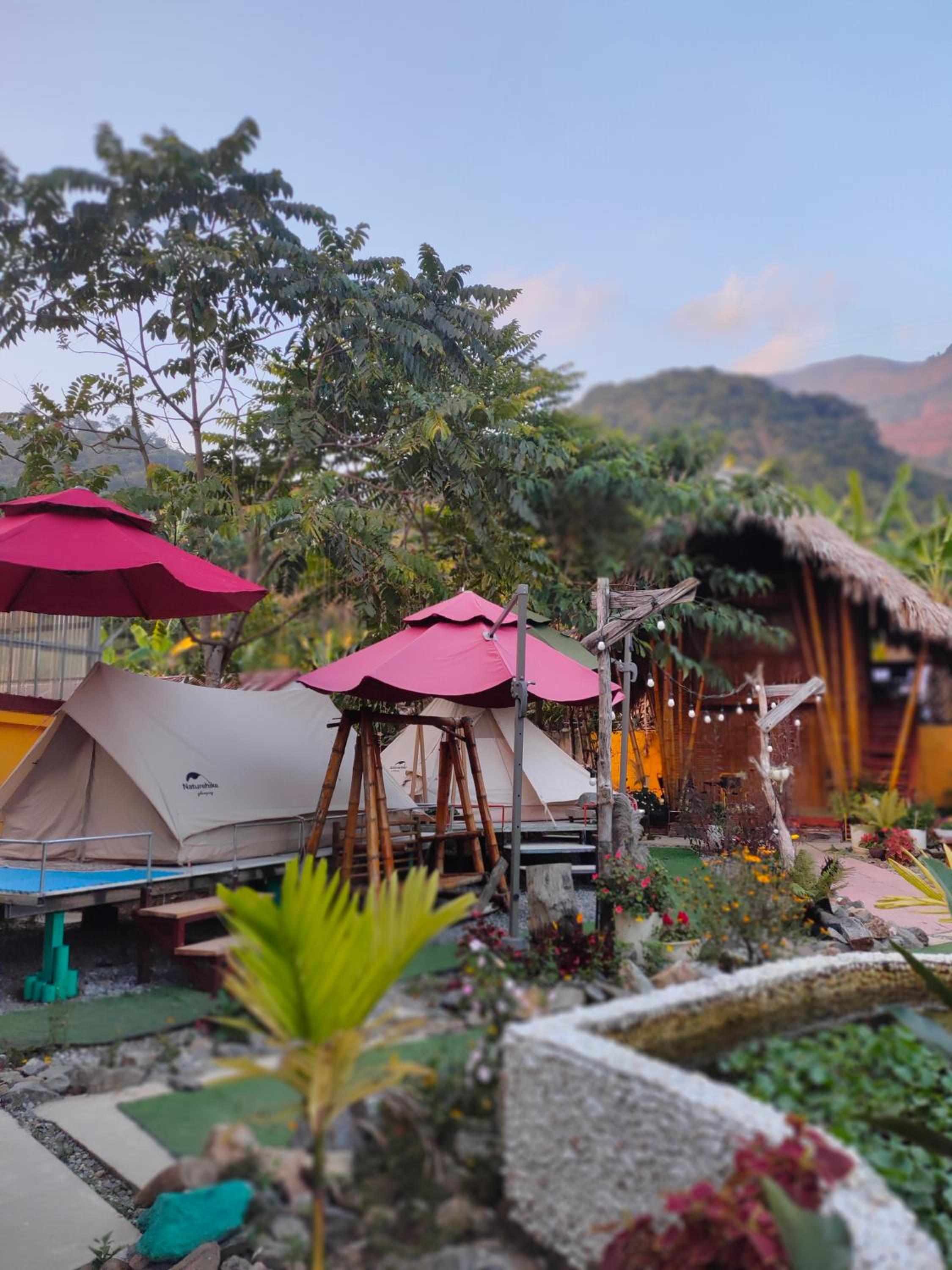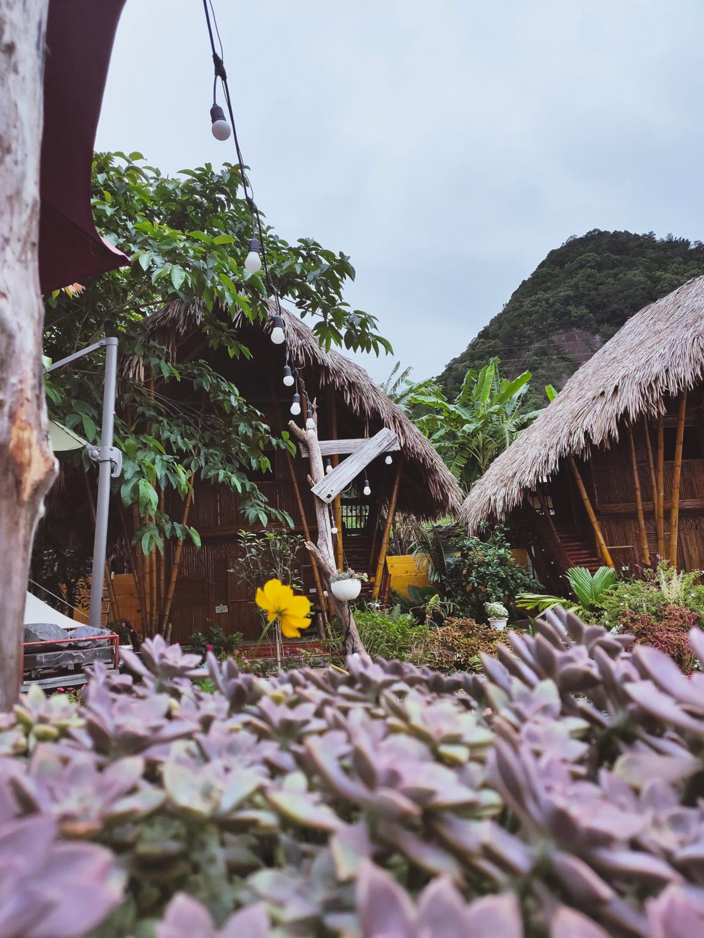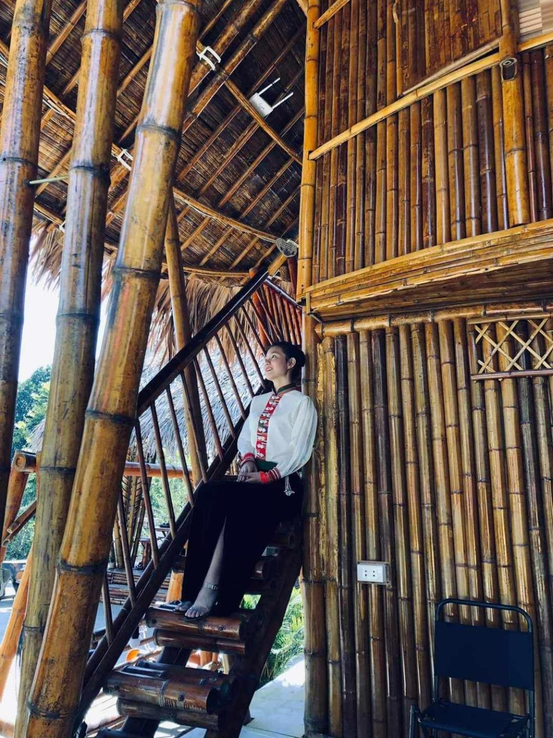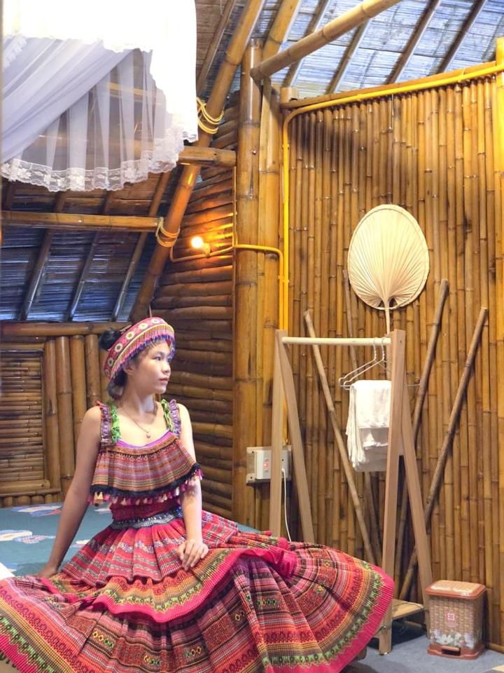 Experience breathtaking mountain views from your private terrace at Bamboo Homestay.