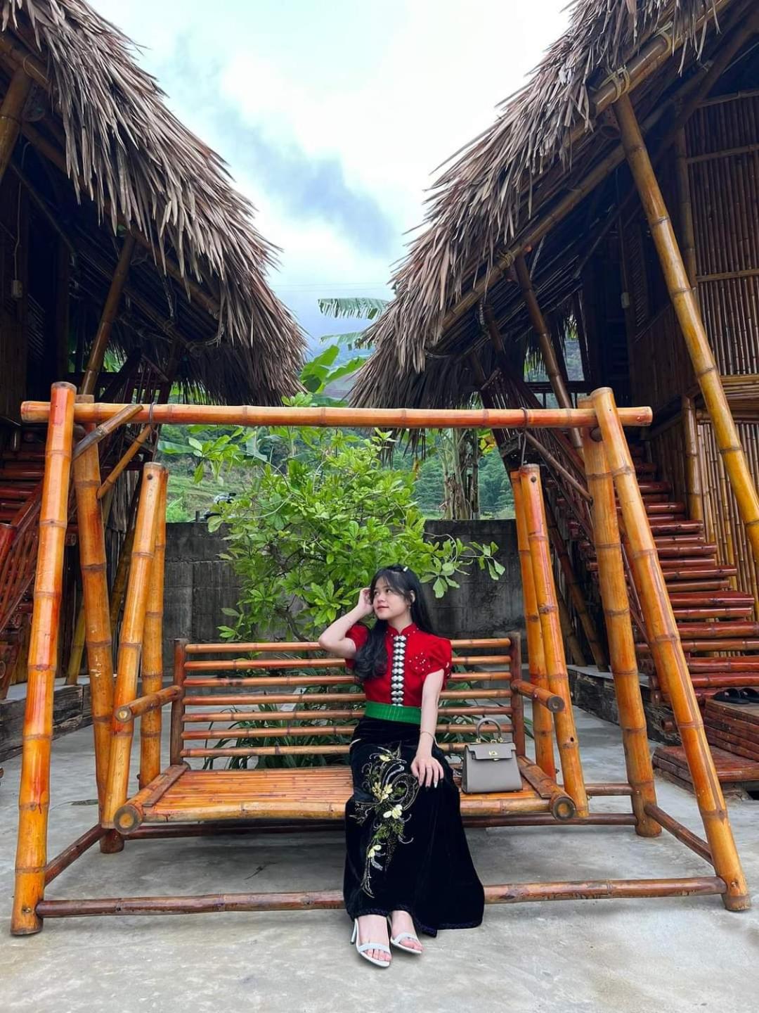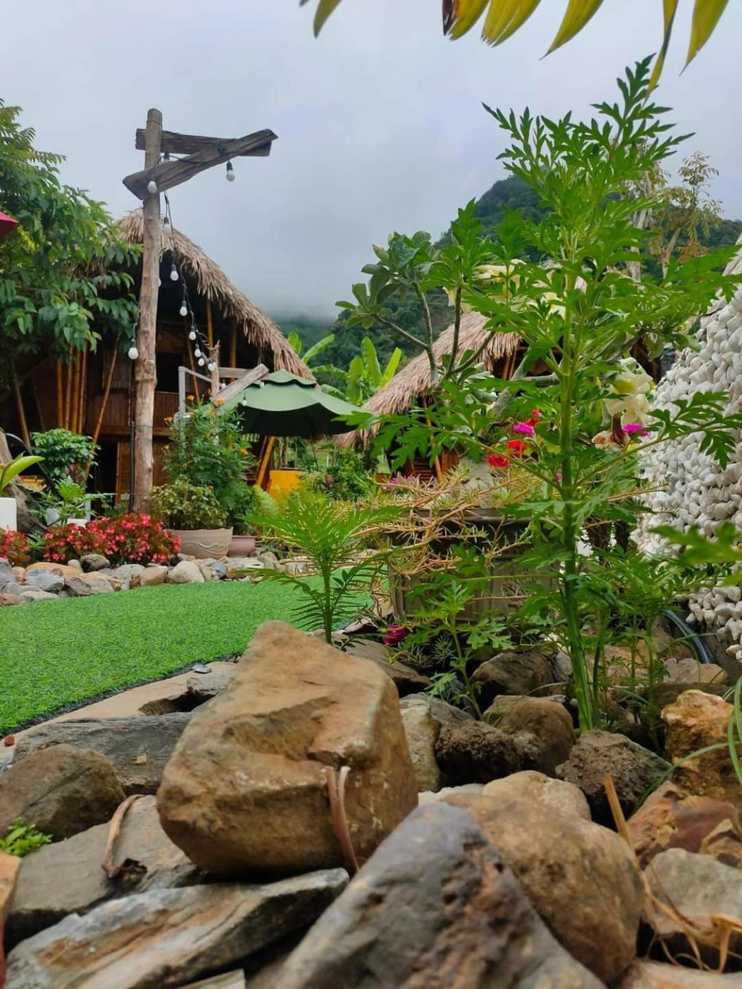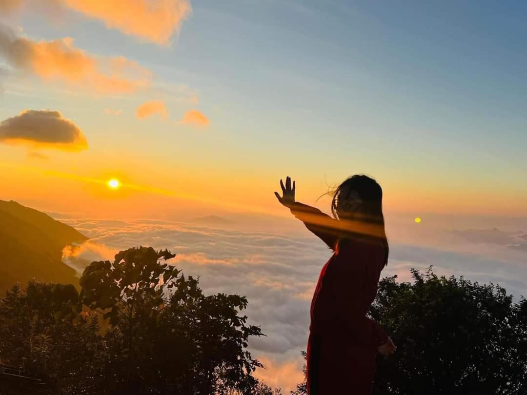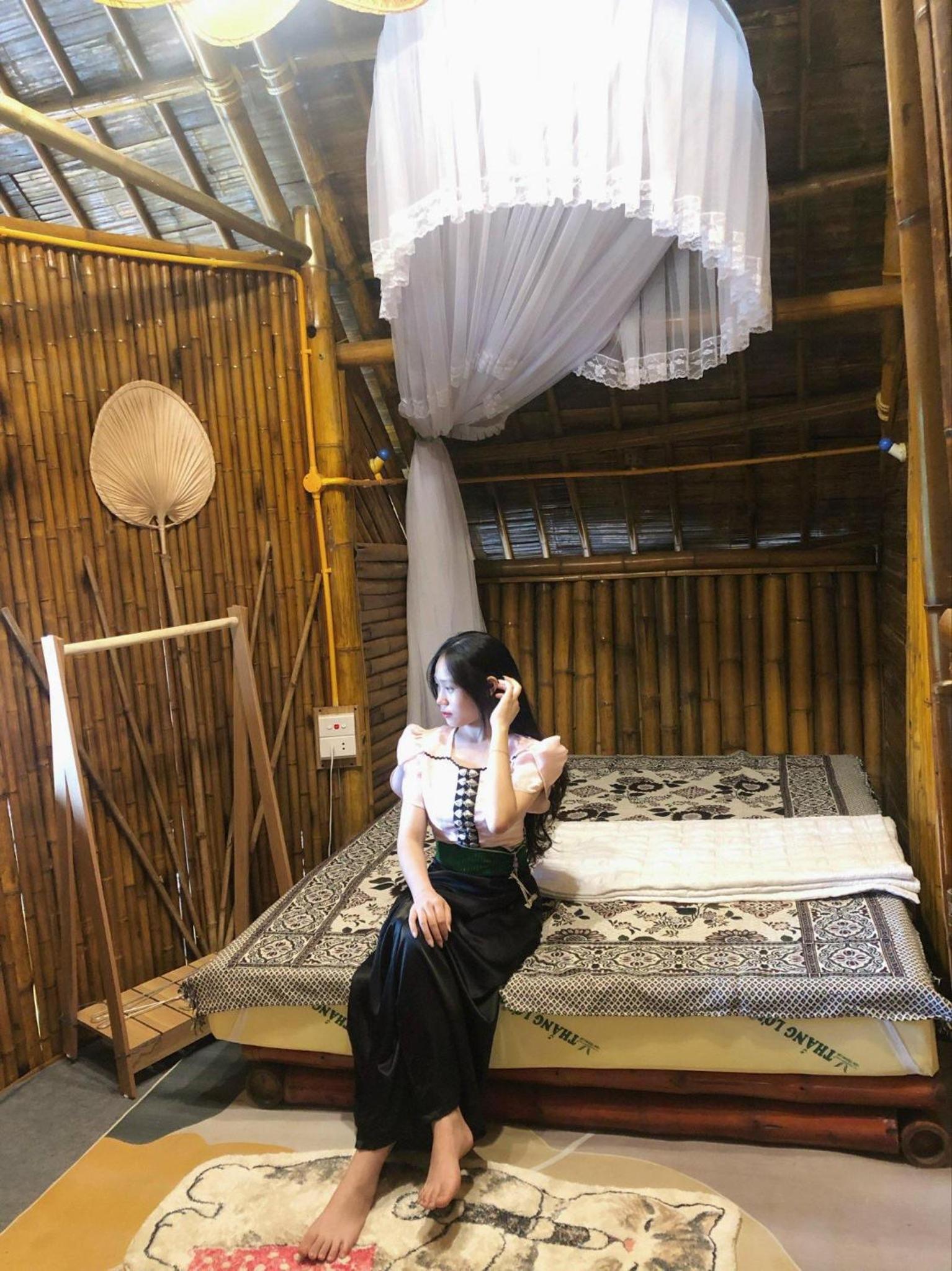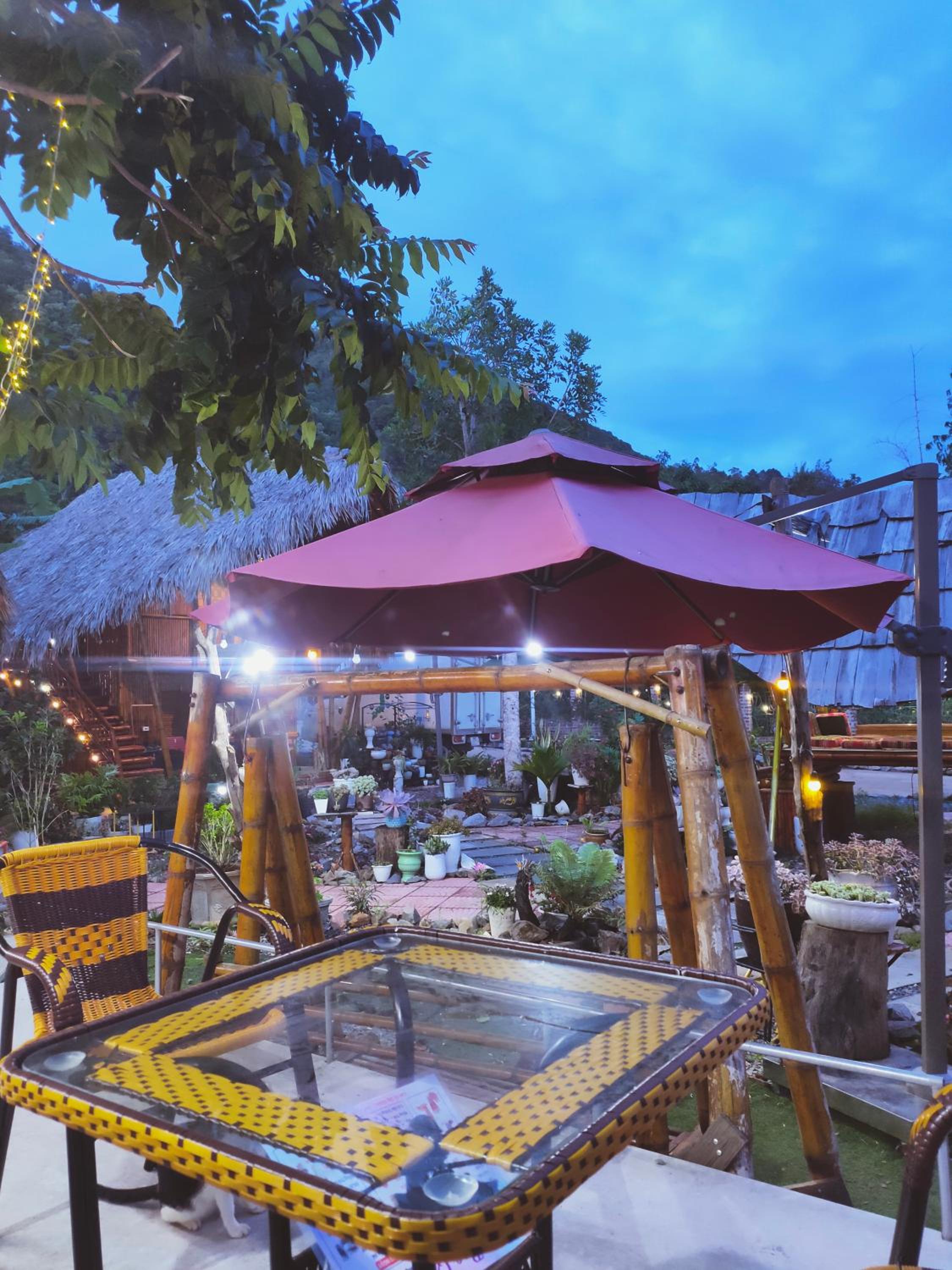 Experience breathtaking mountain views from your private terrace at Bamboo Homestay.
