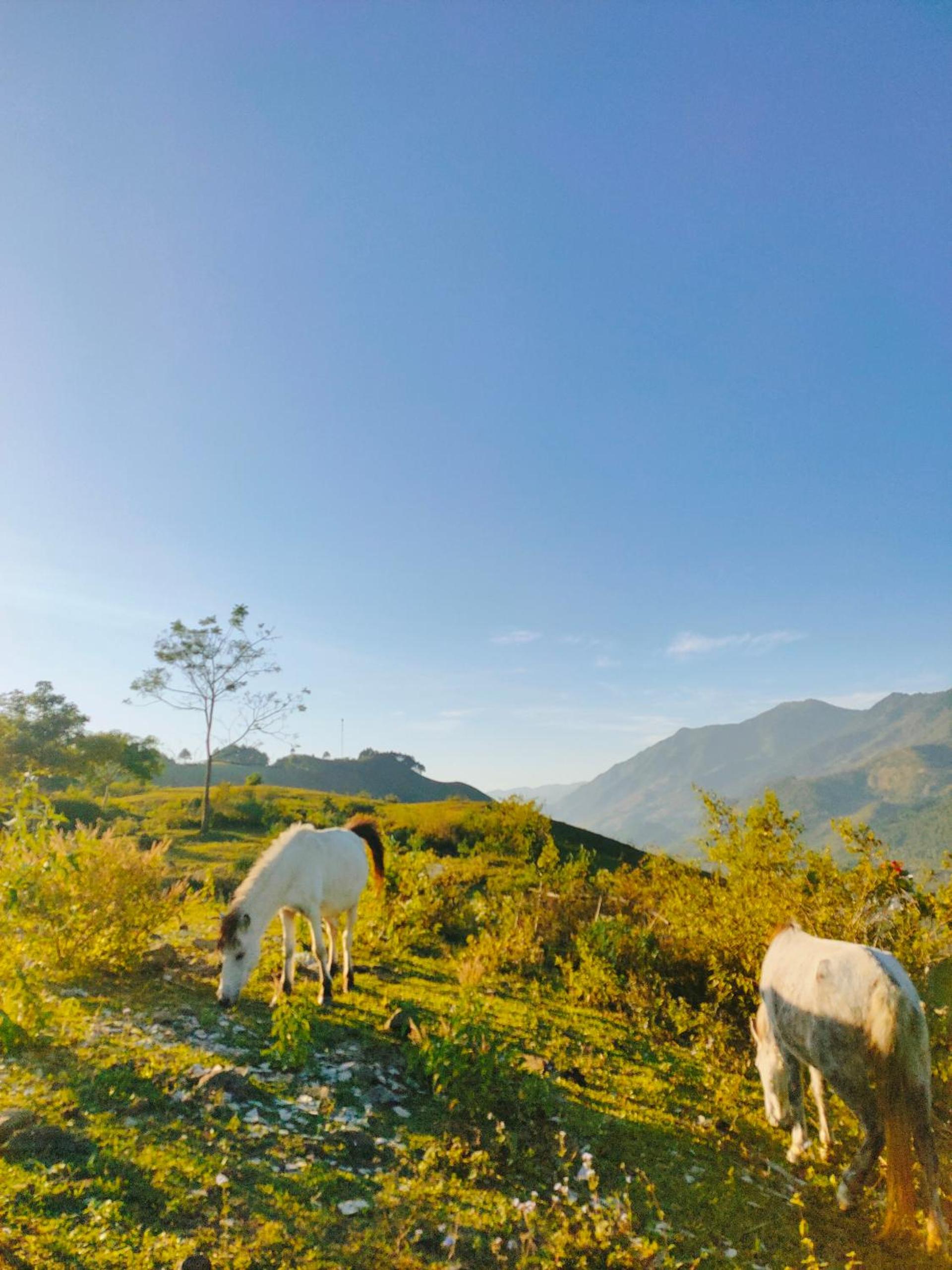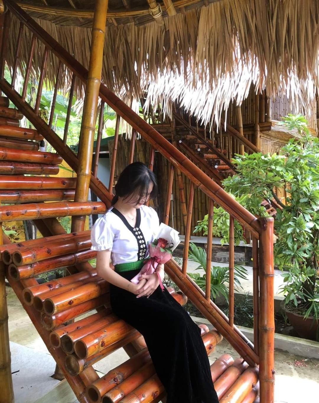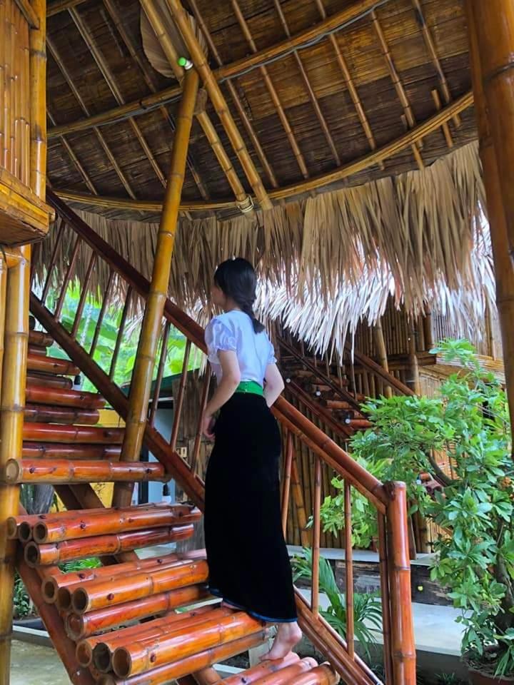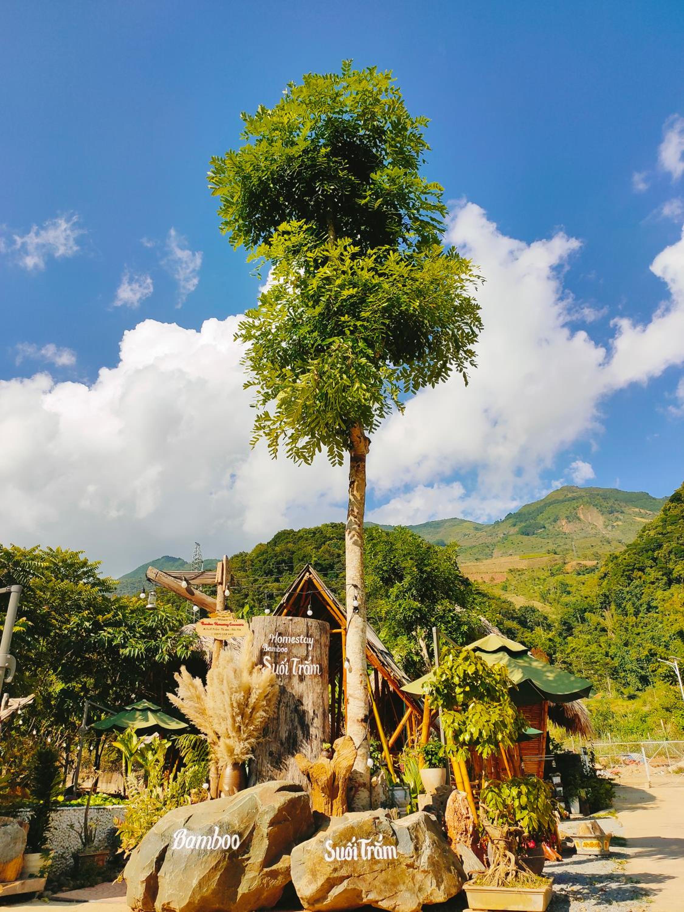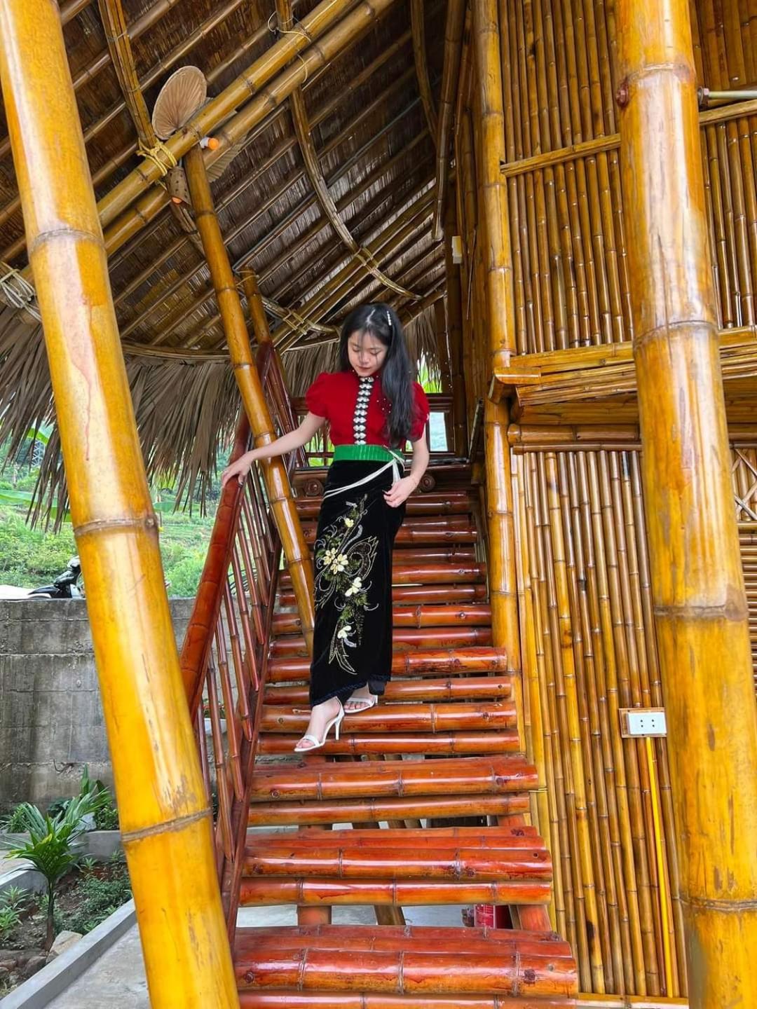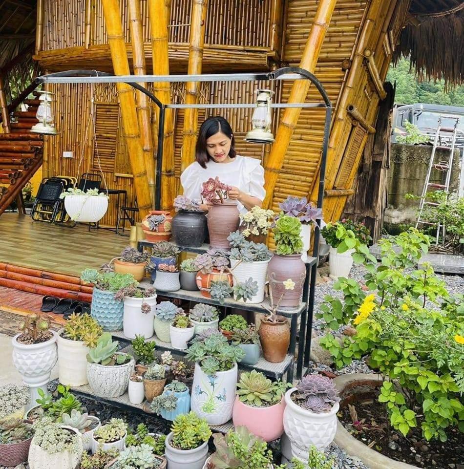 Experience breathtaking mountain views from your private terrace at Bamboo Homestay.